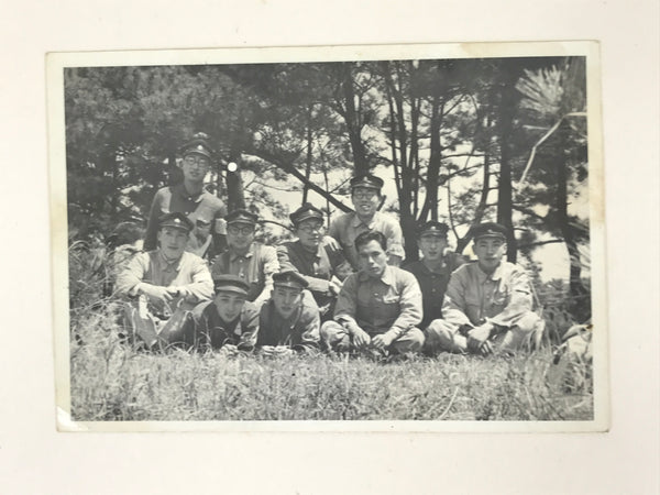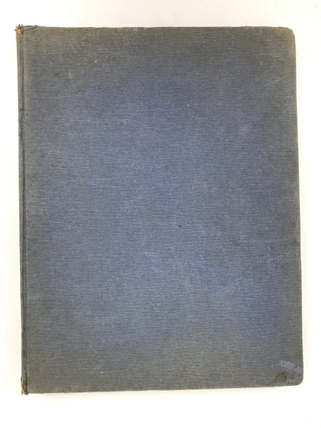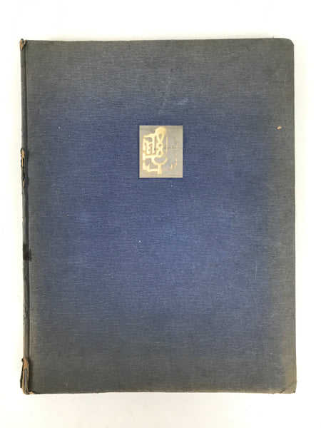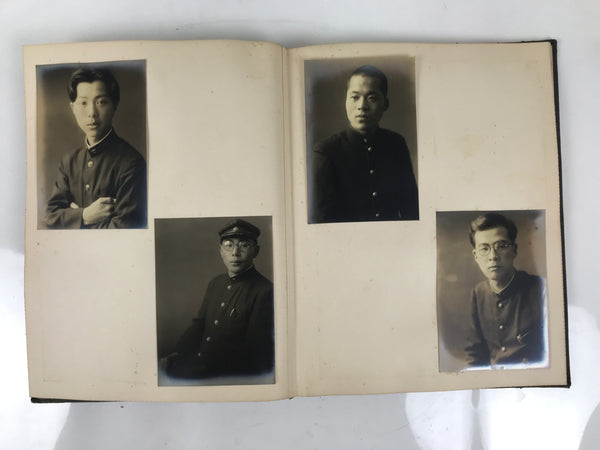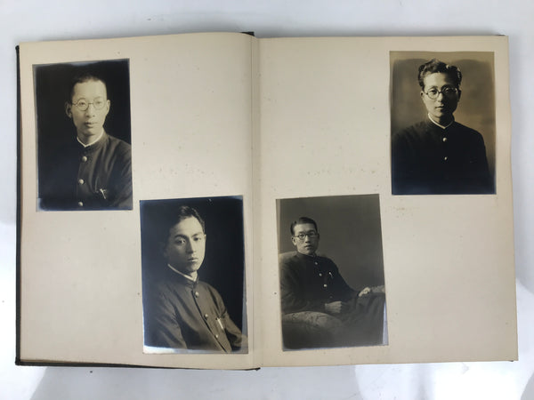 This vintage private photo album features mostly portraits of young men, some family group photos and a few building photos. Student cards from a student in a law university is also pasted in the album. There are some captions written in English below some of the pictures. The album has around 90 pages, but half are empty (end of the album). The album cover is blue with a logo (?) on the front.