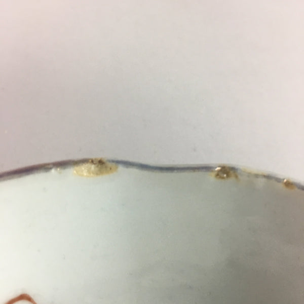 • Good condition considering its age. The imperfection of painting. Small porcelain piece attached inside. Chip on the bottom. Wear and tear due to the age. Please see the photos carefully.