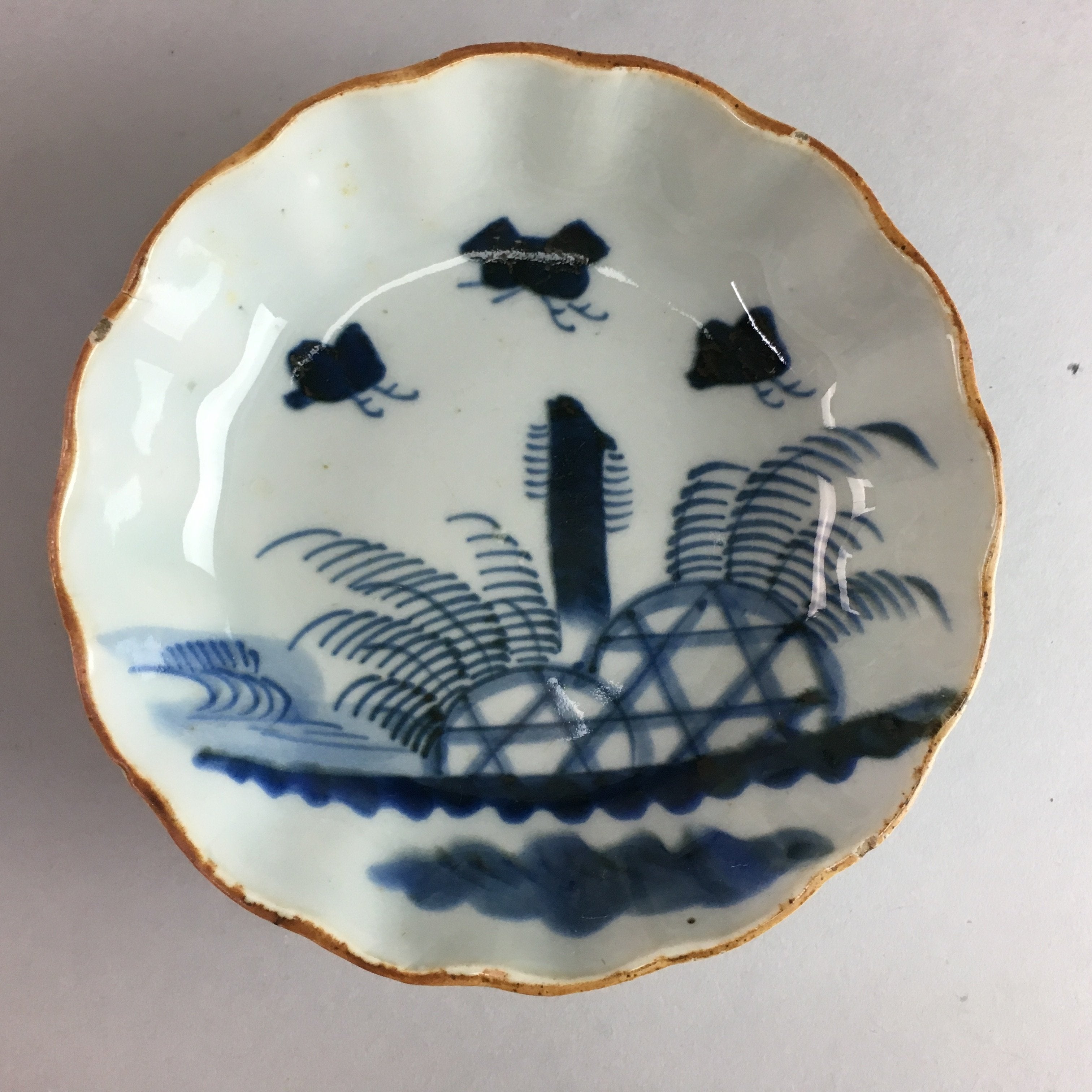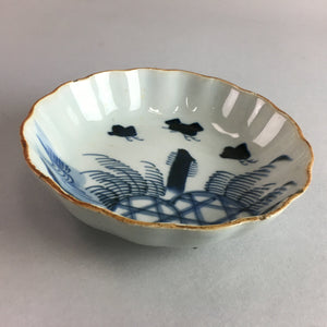 Japanese Porcelain Bowl Vtg Kobachi Ocean Bird Wavy Rim Sometsuke PT701