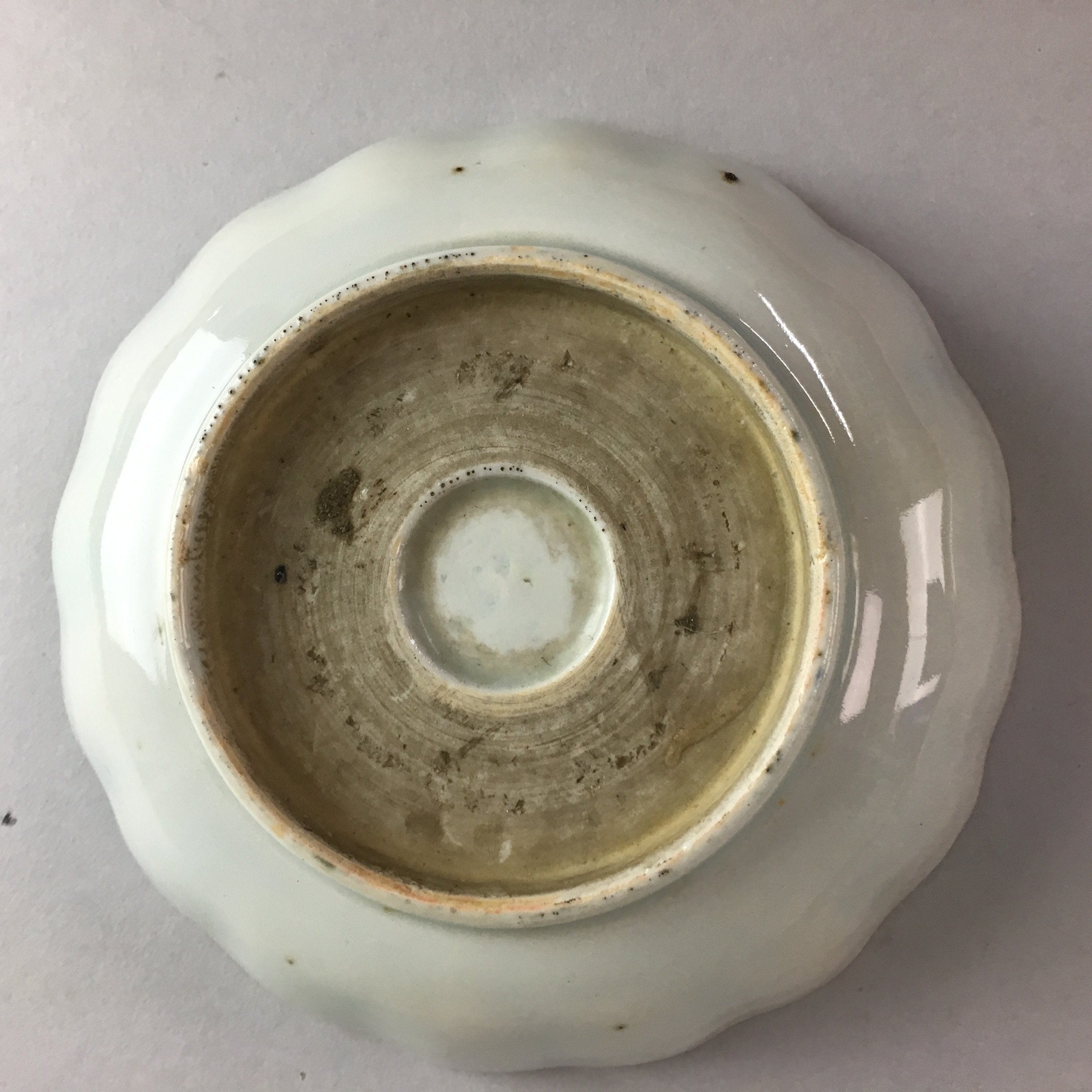 • Good condition considering its age. Chips on the rim. Small stains.  Wear and tear due to age, especially on the bottom. Please see pictures carefully and bid with confidence.