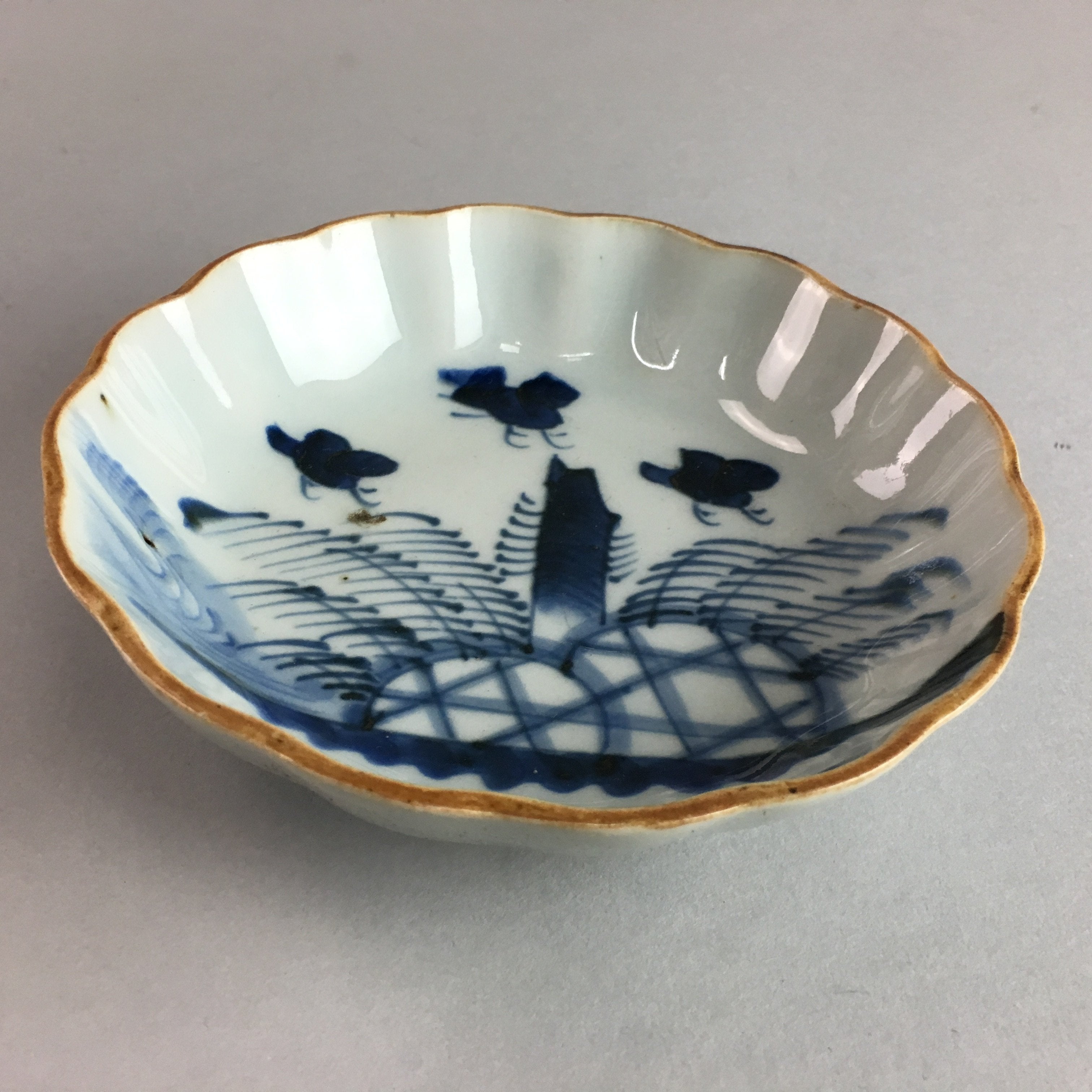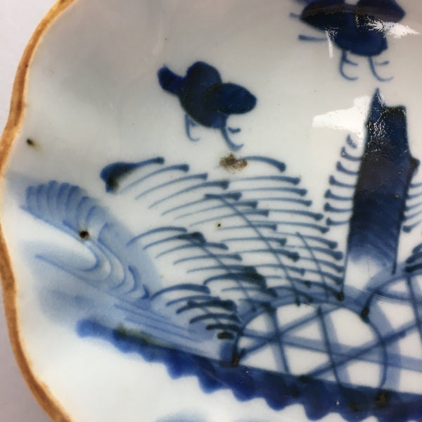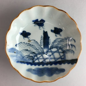 Japanese Porcelain Bowl Vtg Kobachi Ocean Bird Wavy Rim Sometsuke PT703