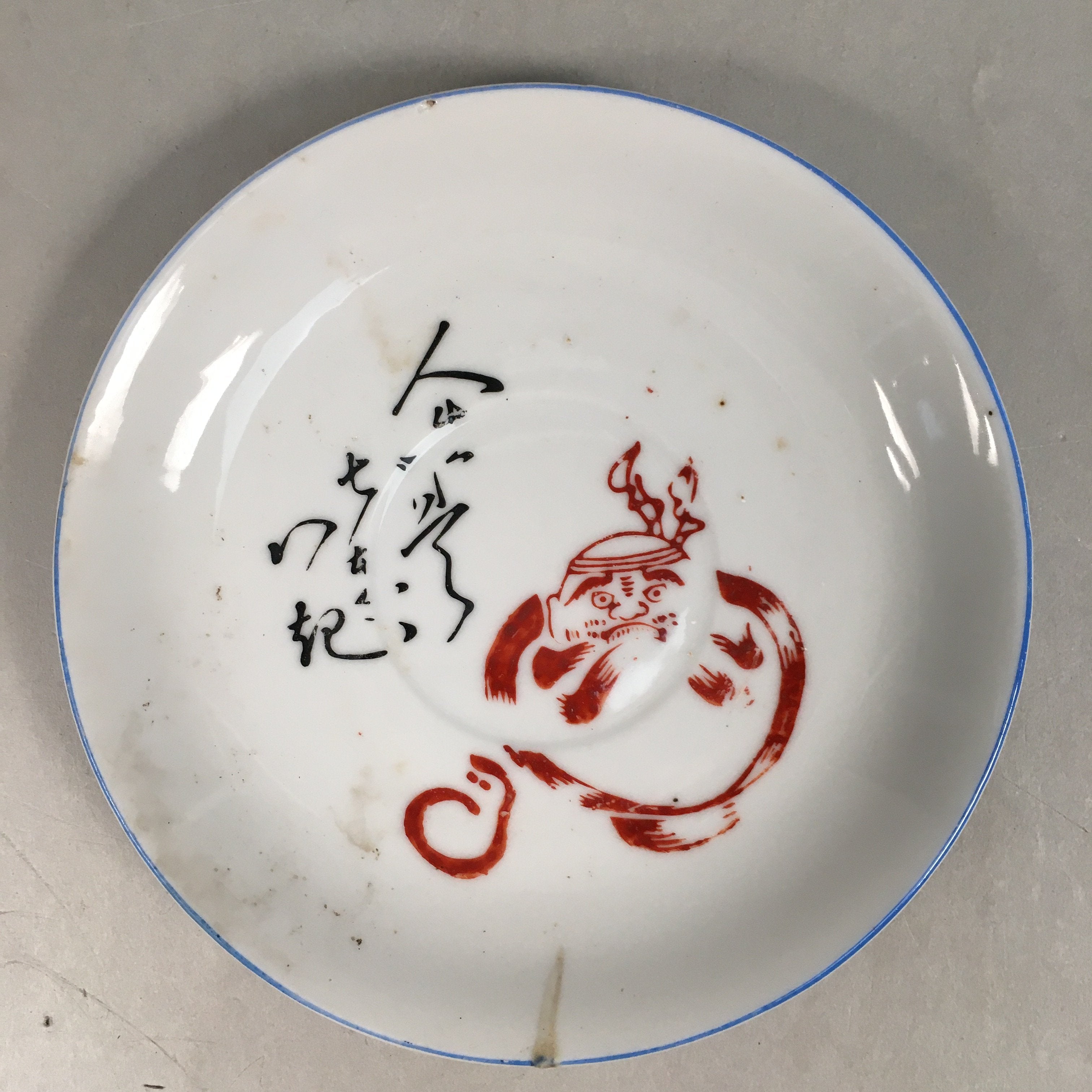 Japanese Porcelain Drink Saucer Vtg Chataku Coaster Daruma Kanji PP374