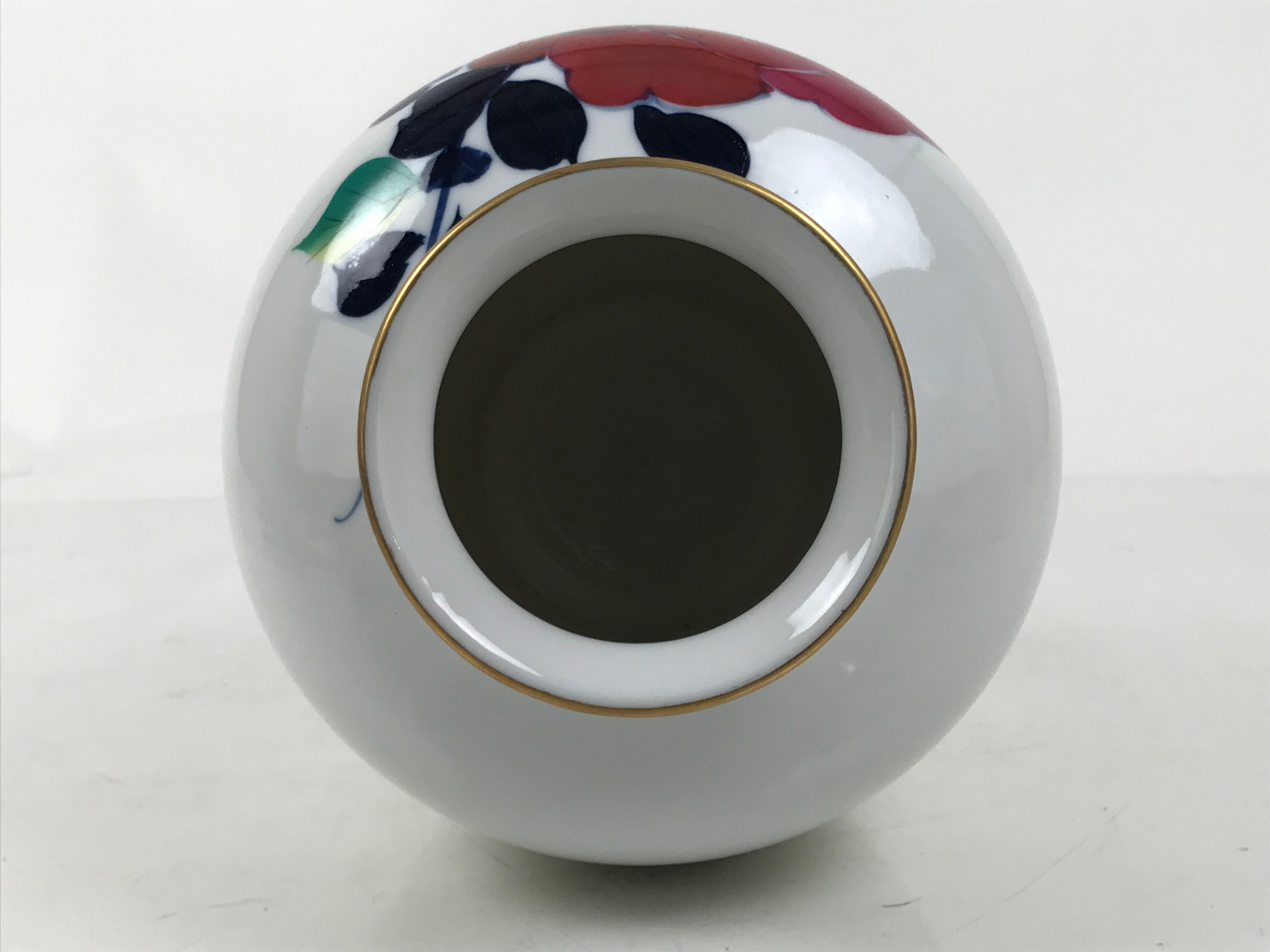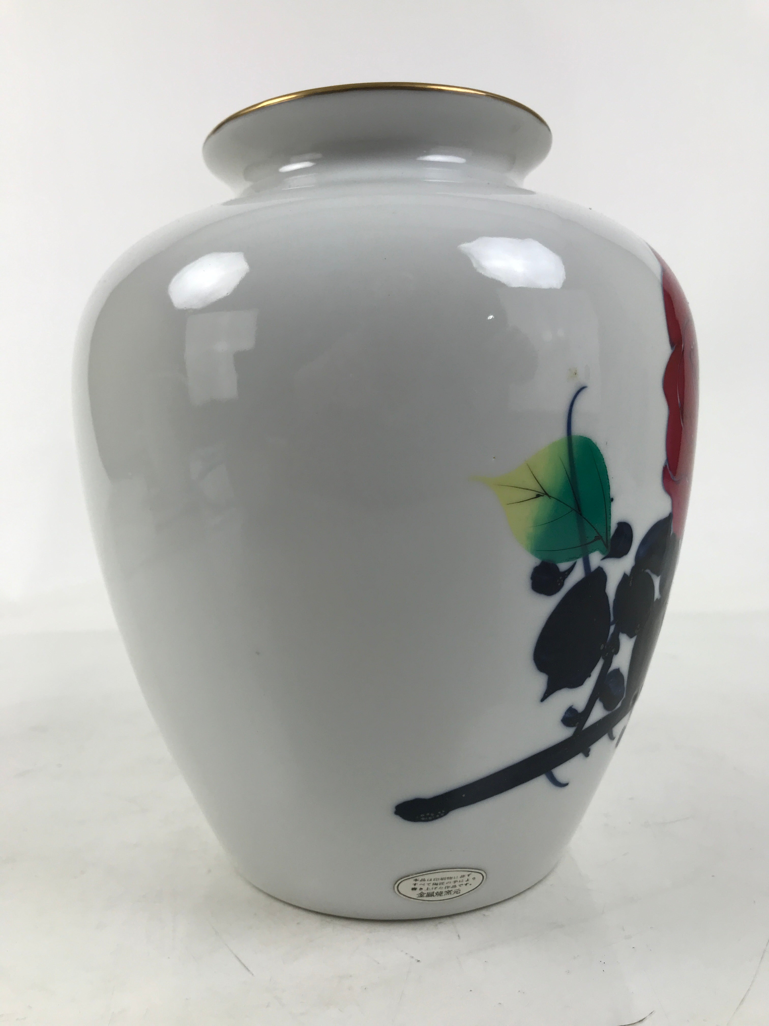 Japanese Porcelain Flower Vase Ikebana Kabin Peony White Red Hand-Painted FK176
