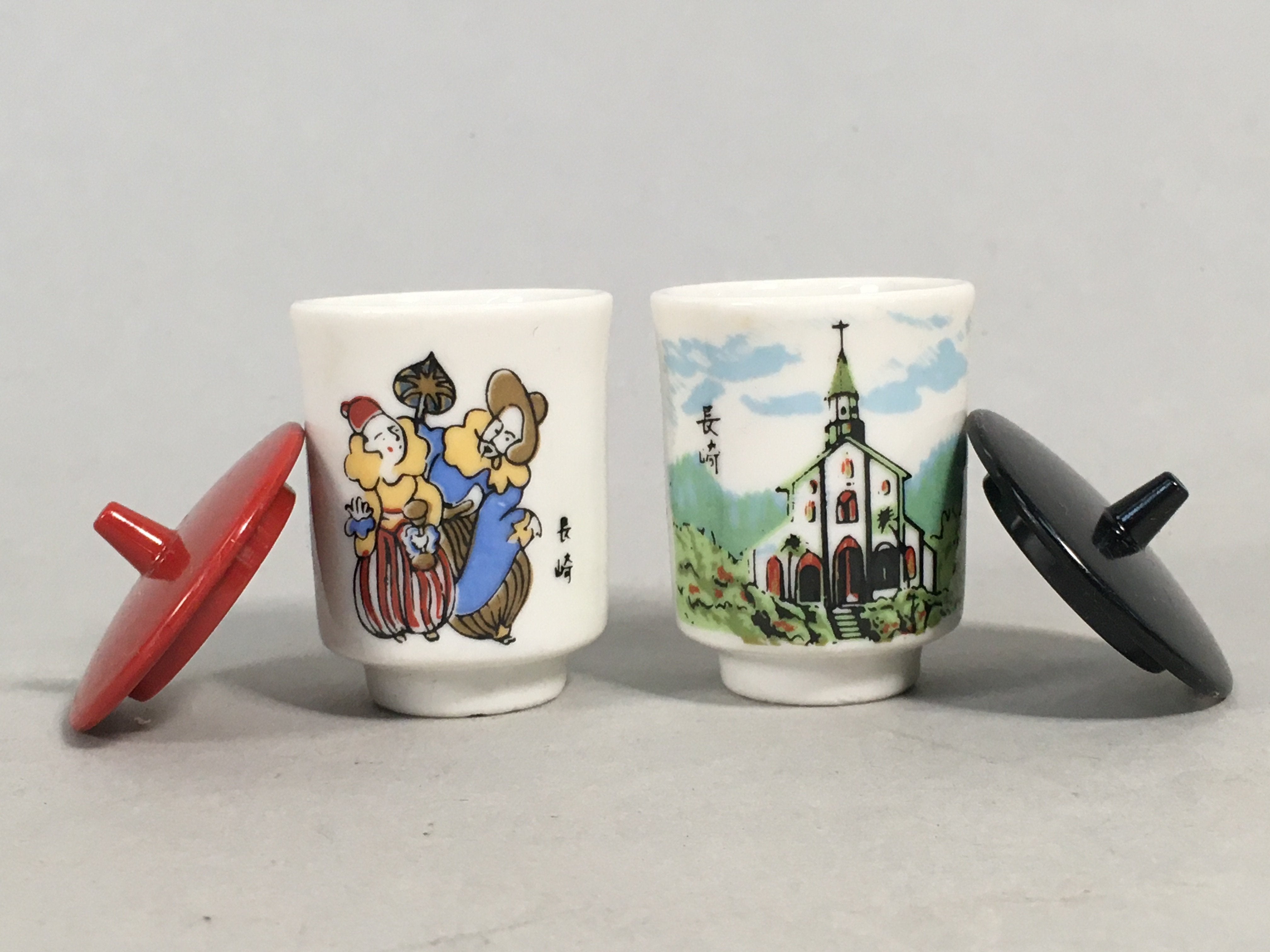 Japanese Porcelain Lidded Sake Cup 2pc Nagasaki Oura Church Christian PP412