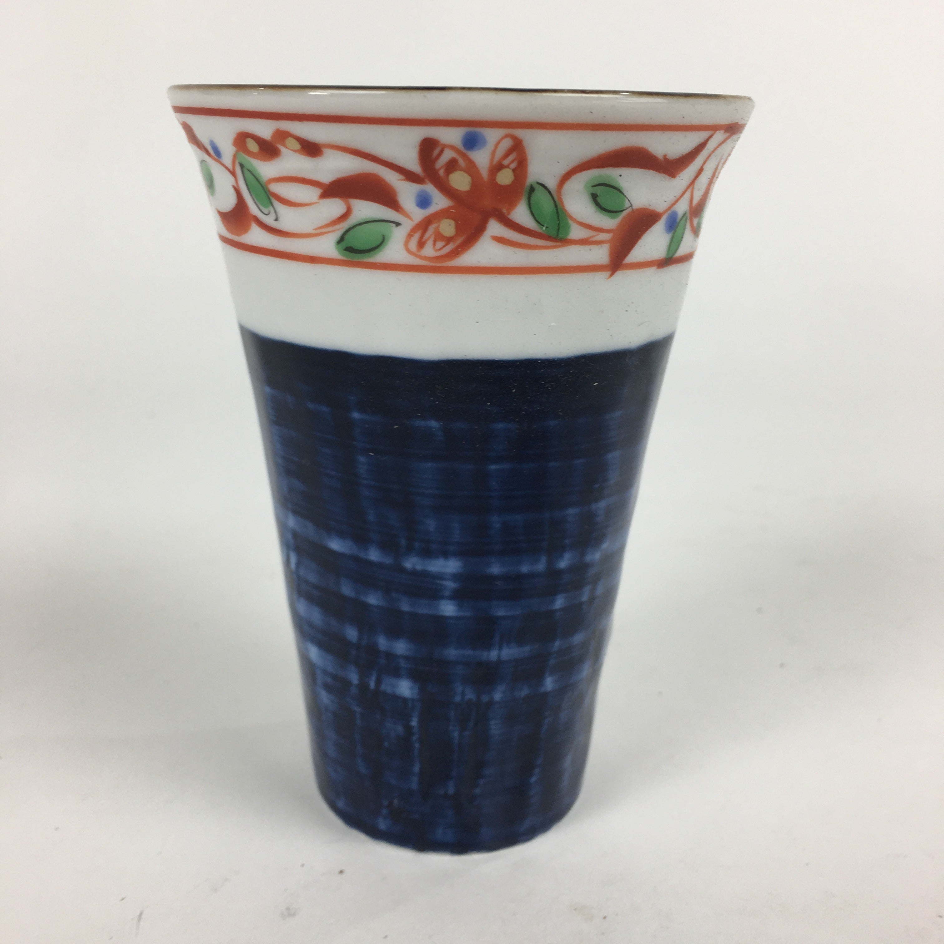 Japanese Porcelain Mino Ware Teacup Vtg Red Akae Blue Yunomi Sencha TC278