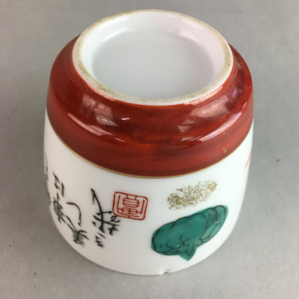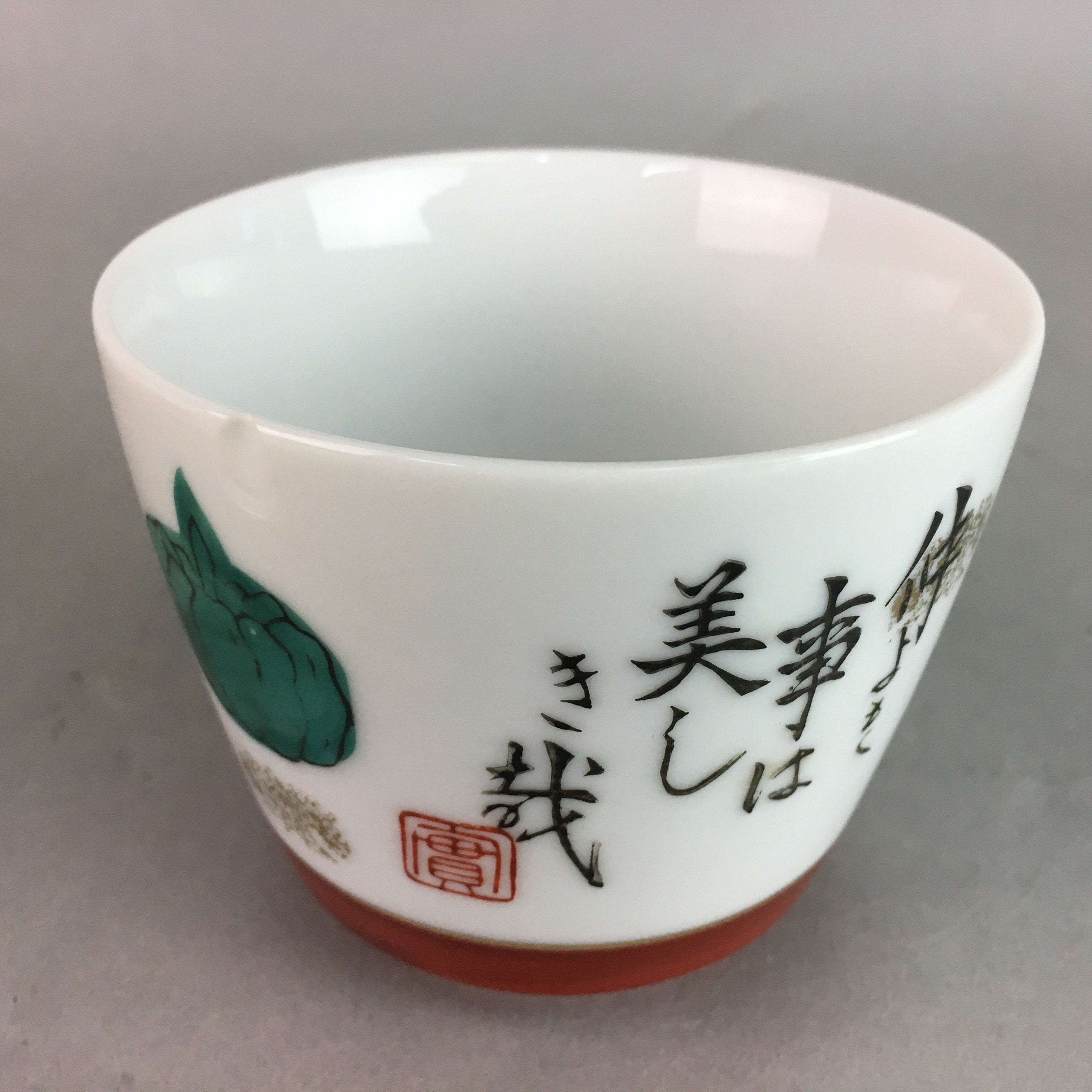 Japanese Porcelain Noodle Bowl Cup Vtg Soba Choko Word Kanji Vegetable PP287