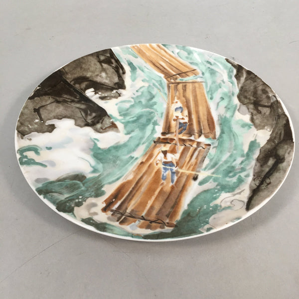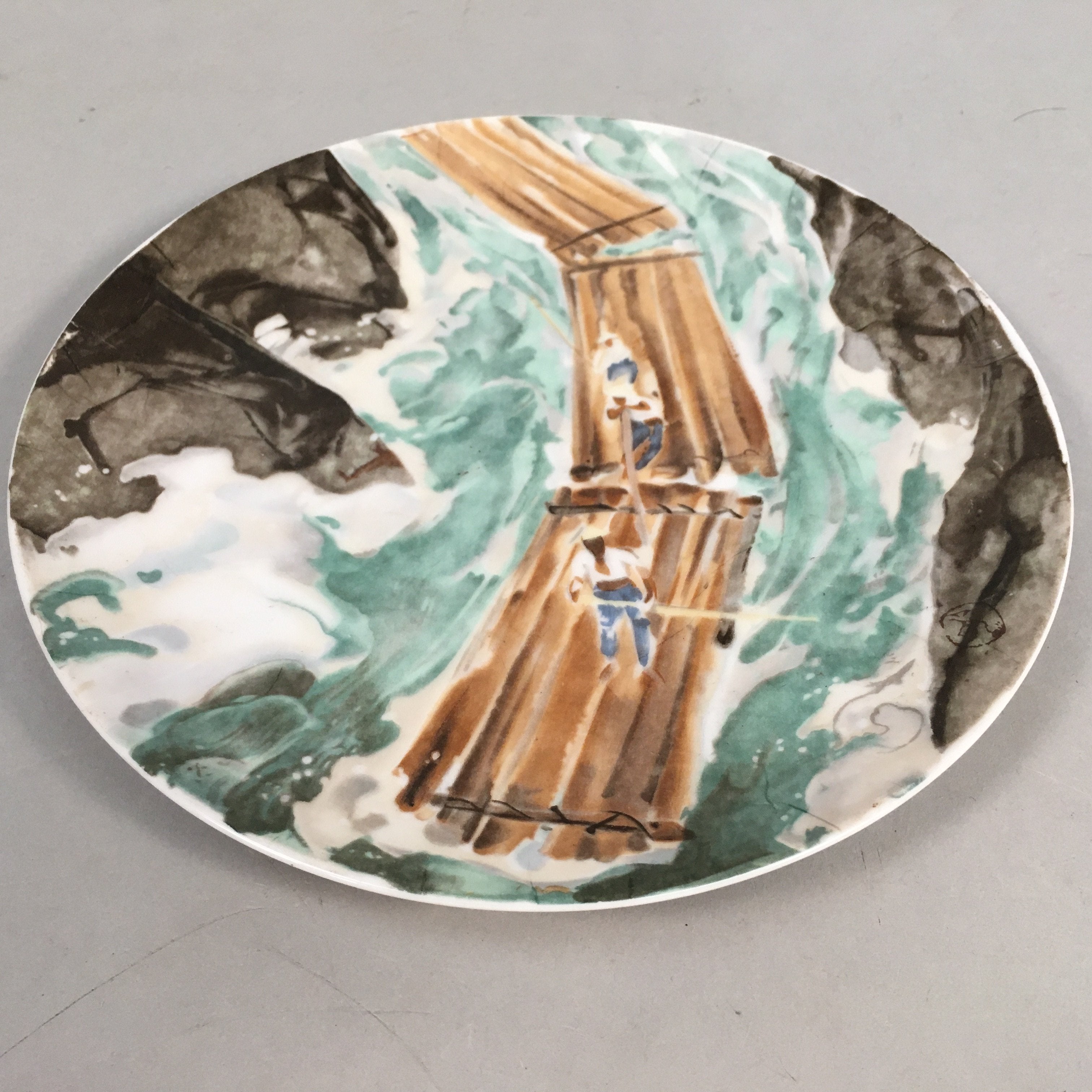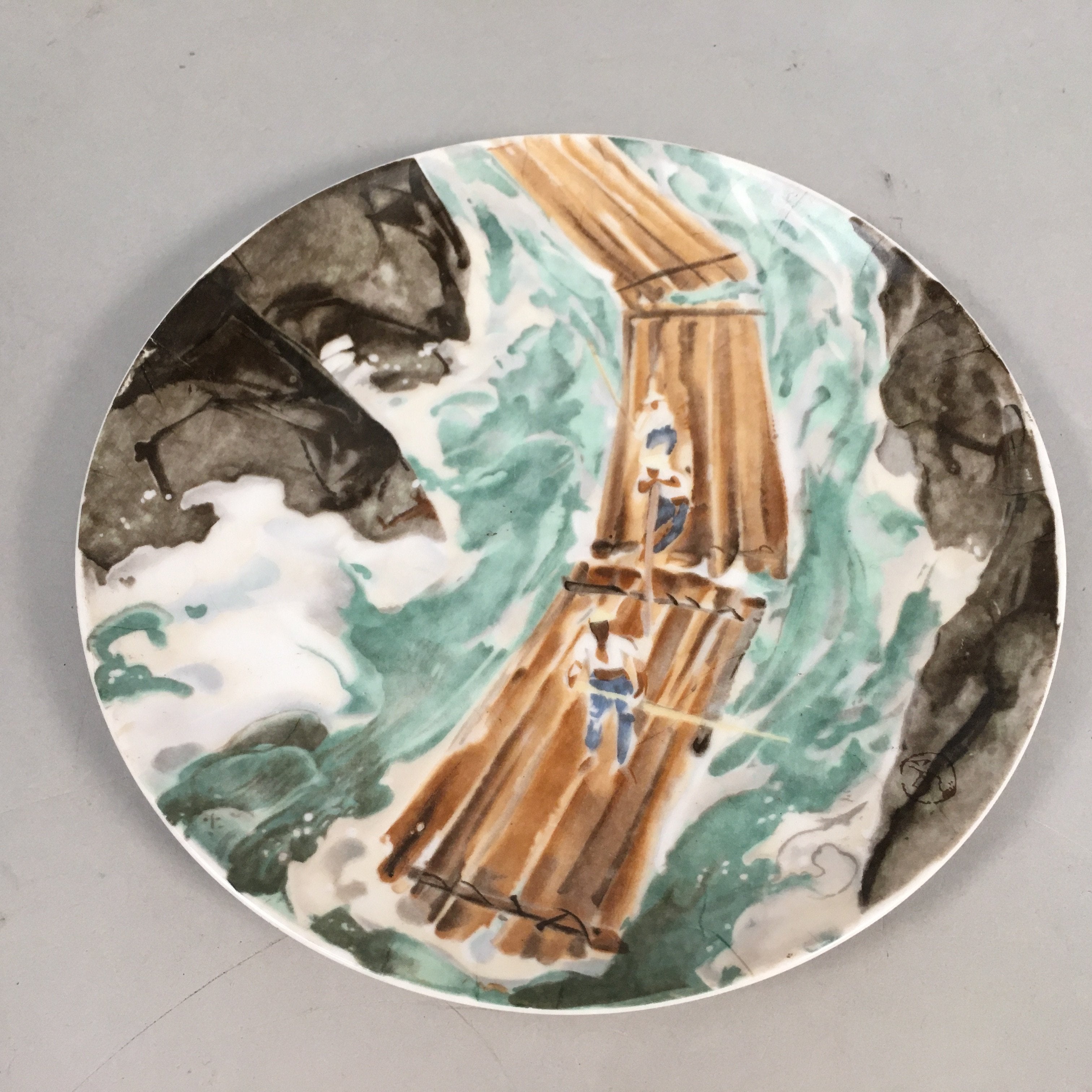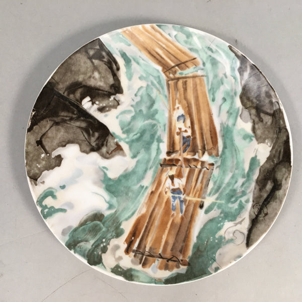 Japanese Display Porcelain Plate Vtg Rafting River Splash Rock PP355
