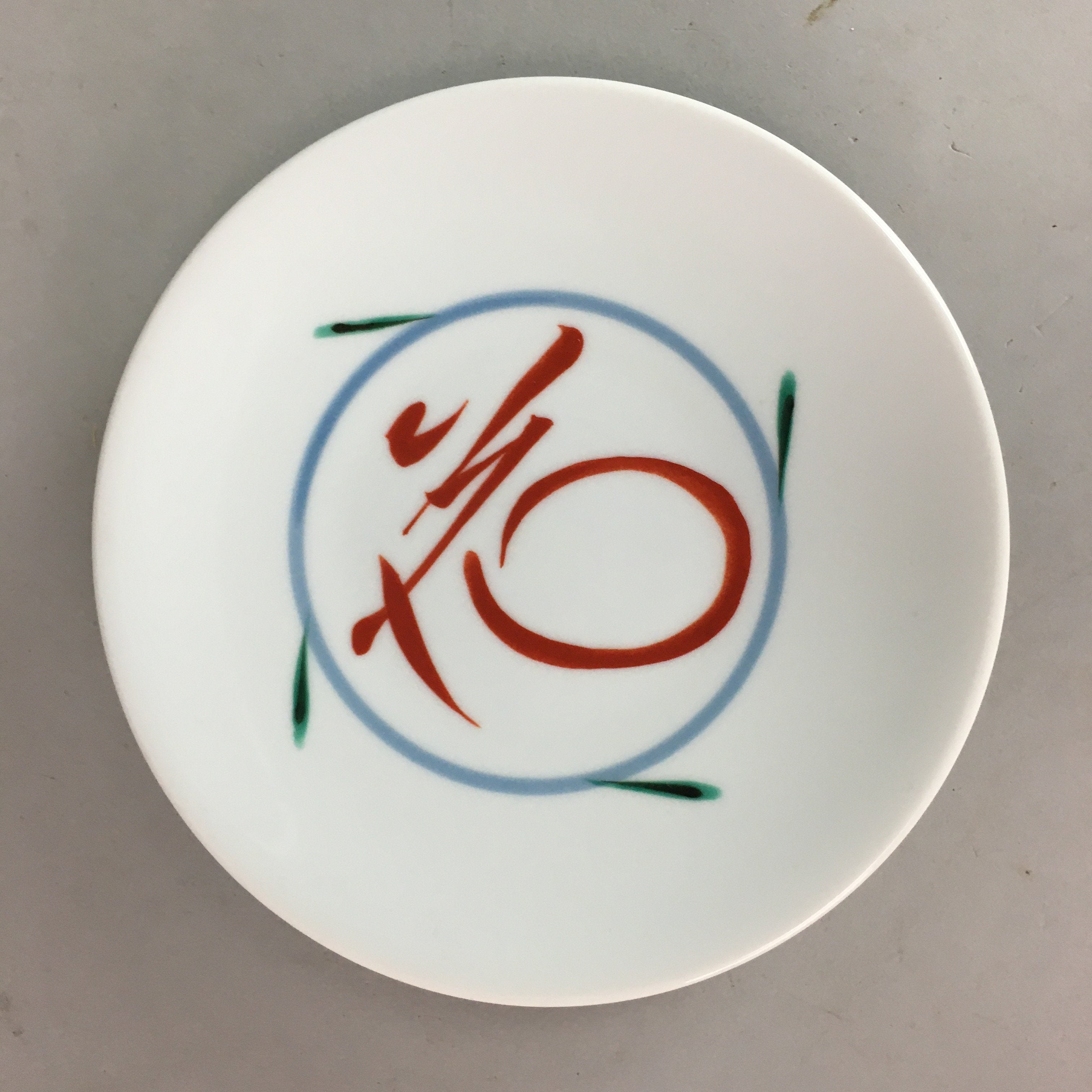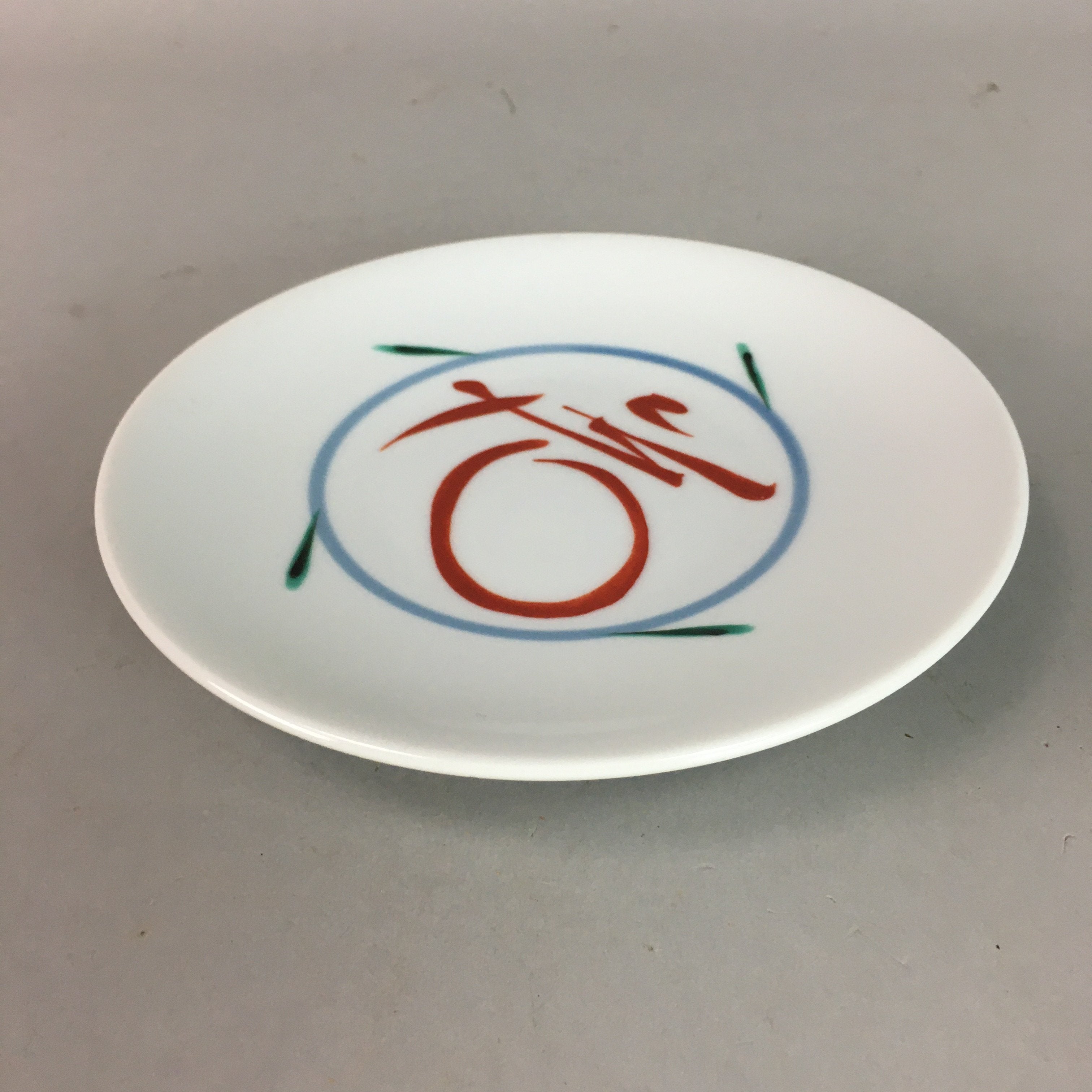 Japanese Porcelain Plate Vtg Round Flower Kanji White QT87