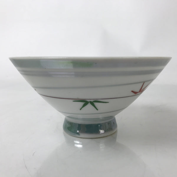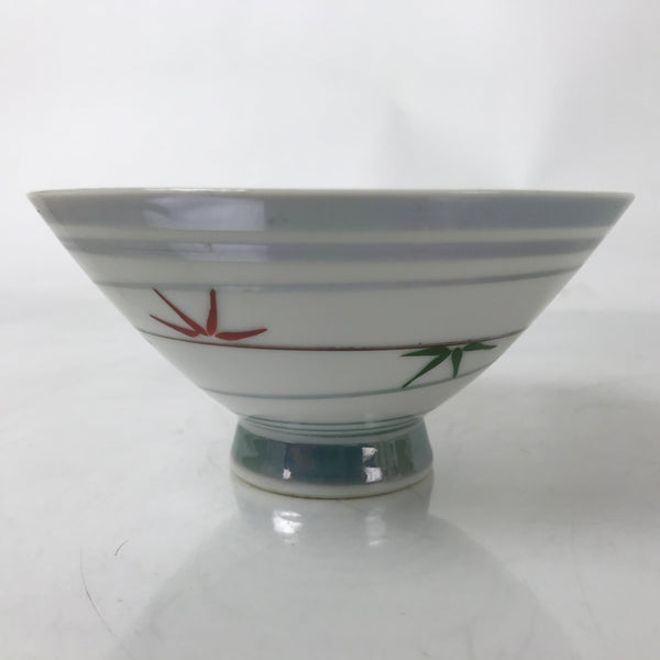 Japanese Porcelain Rice Bowl Owan Vtg Kobachi White Bamboo Leaf Line Stream Y270