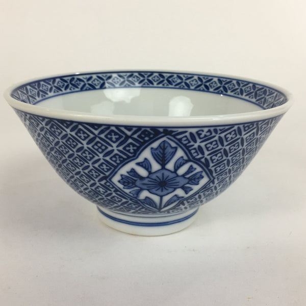 Japanese Porcelain Rice Bowl Vtg Blue Flowers Sometsuke White Donburi PP520