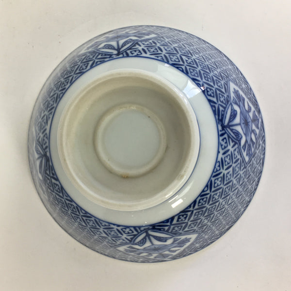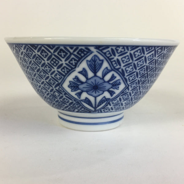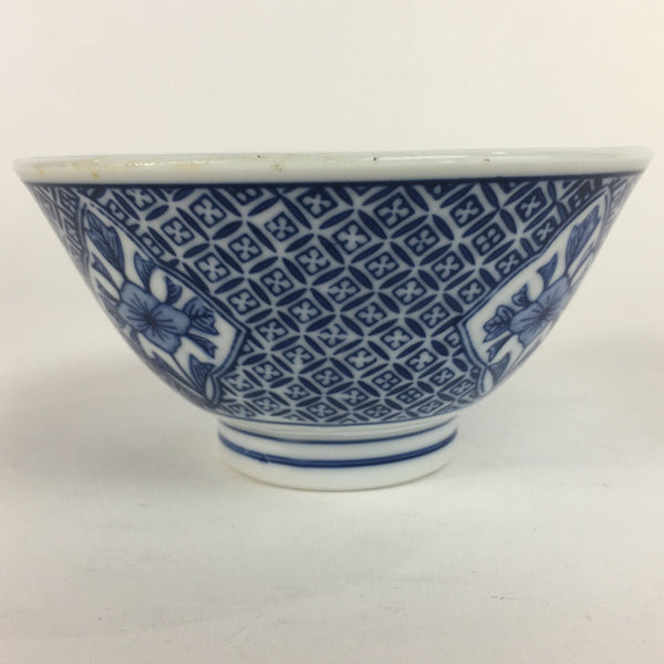Japanese Porcelain Rice Bowl Vtg Blue Flowers Sometsuke White Donburi PP521