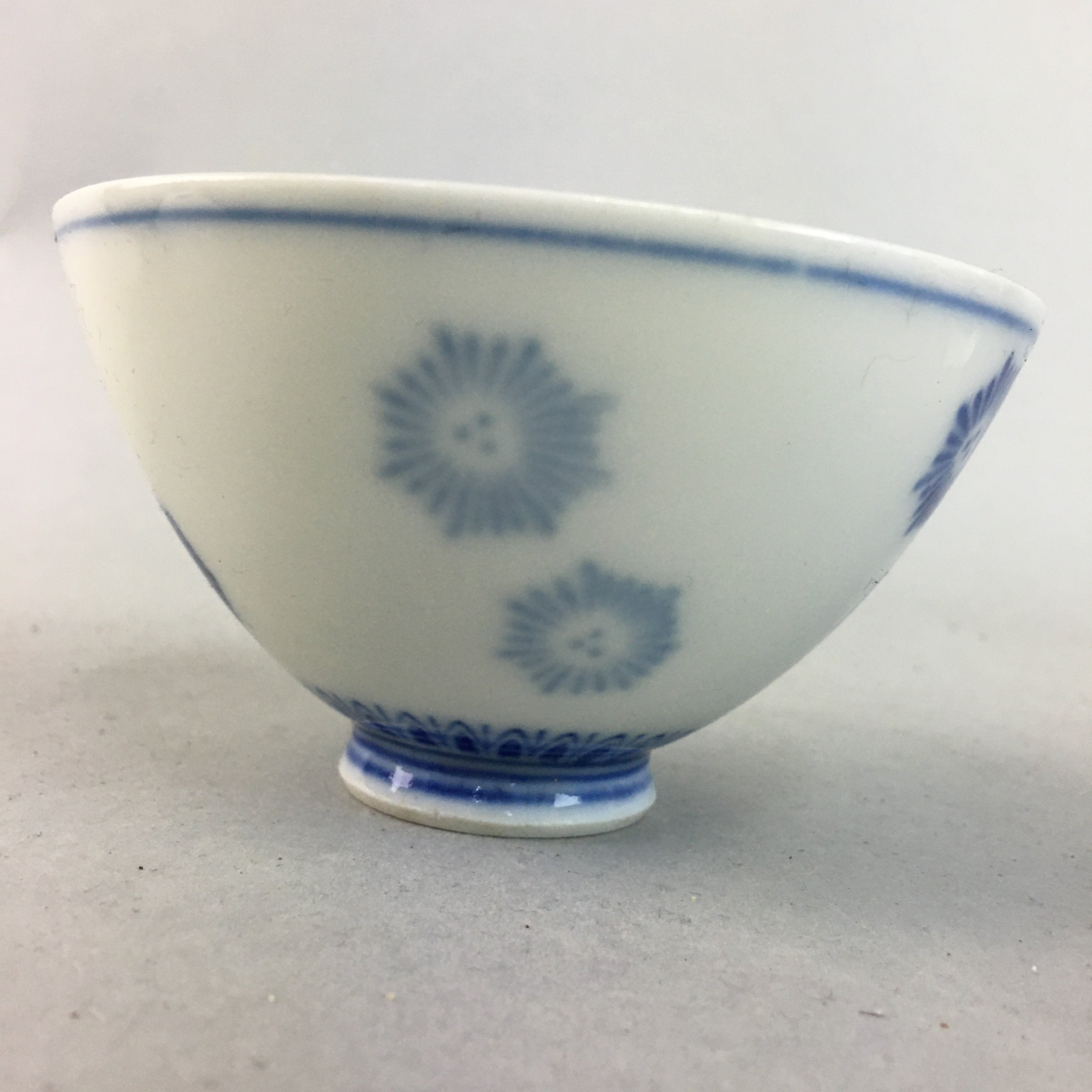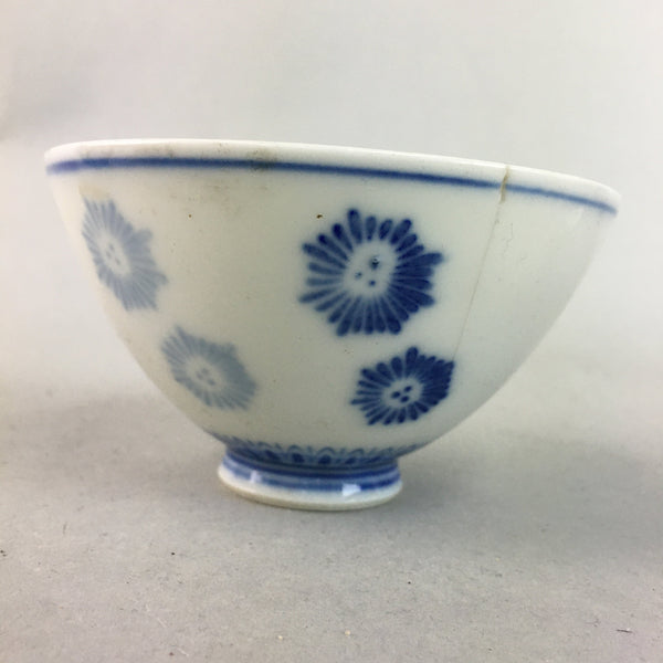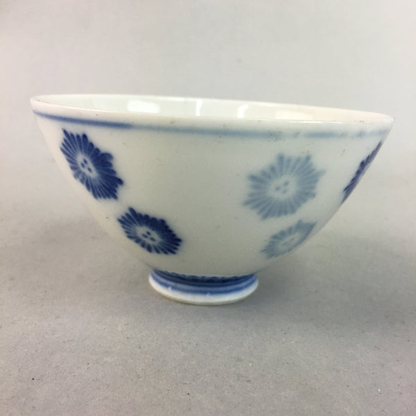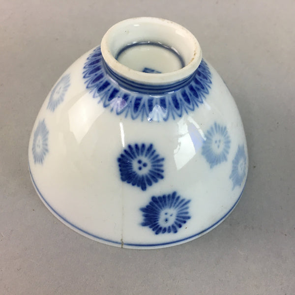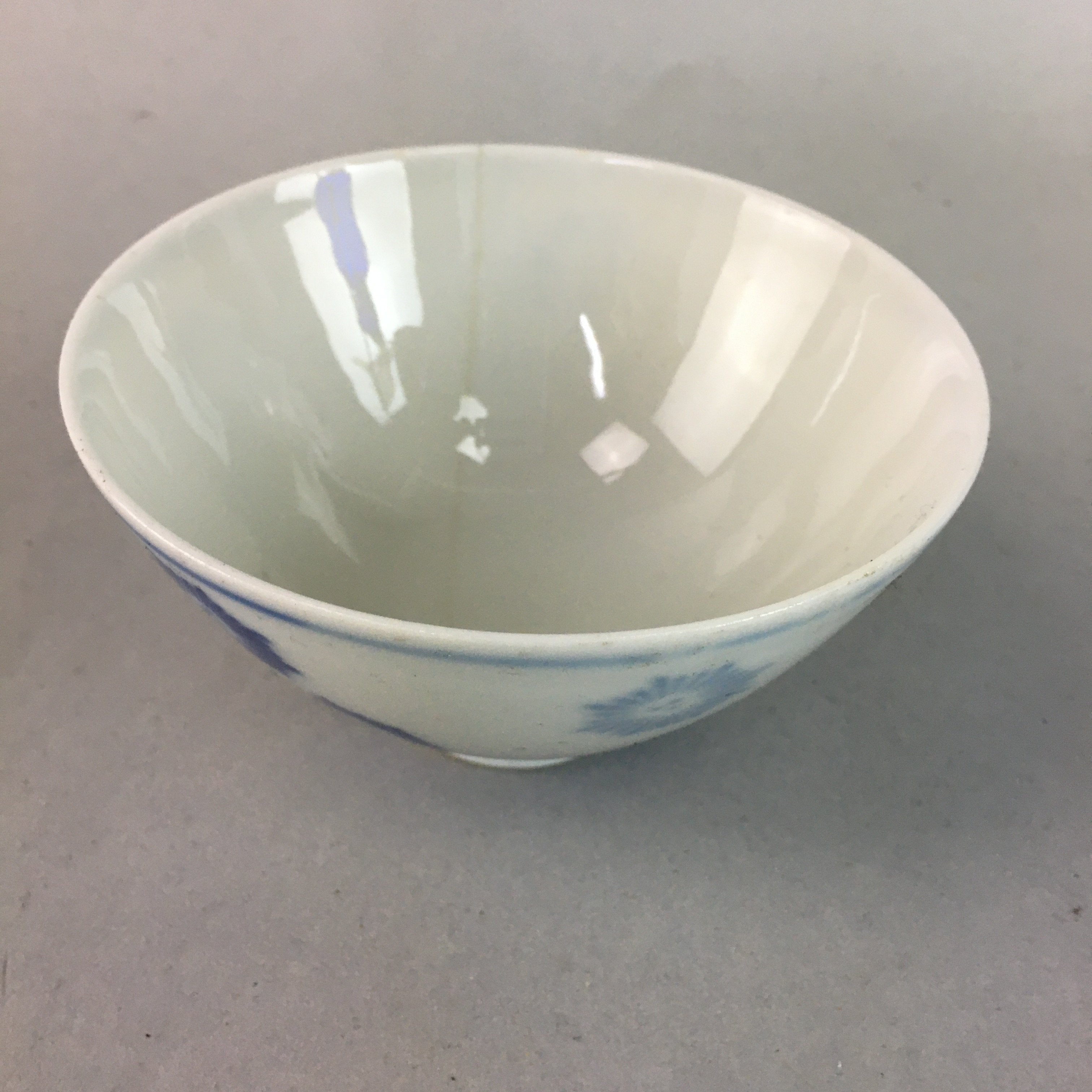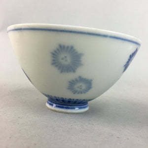 Japanese Porcelain Rice Bowl Vtg Chawan Blue White Floral Sometsuke PP213