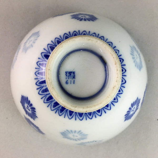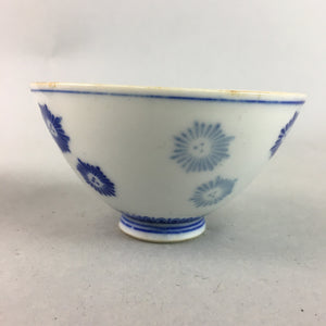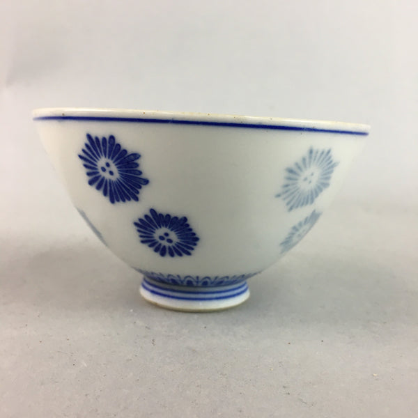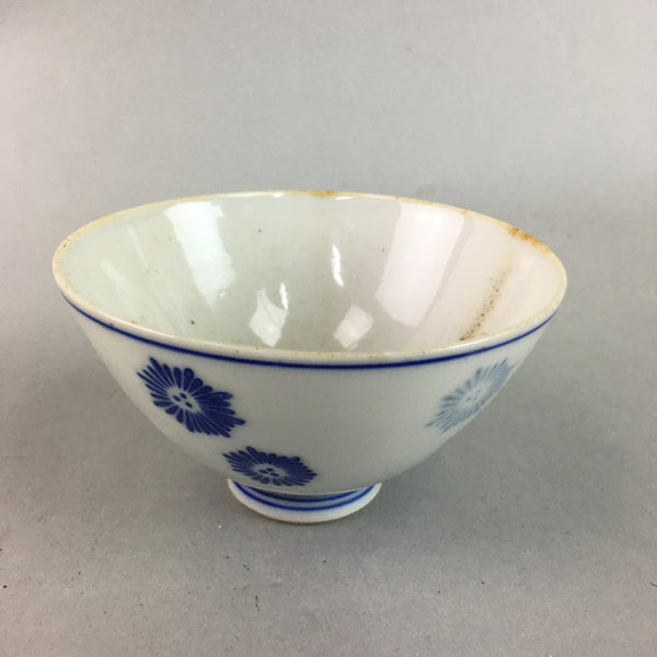 Japanese Porcelain Rice Bowl Vtg Chawan Blue White Floral Sometsuke PP216