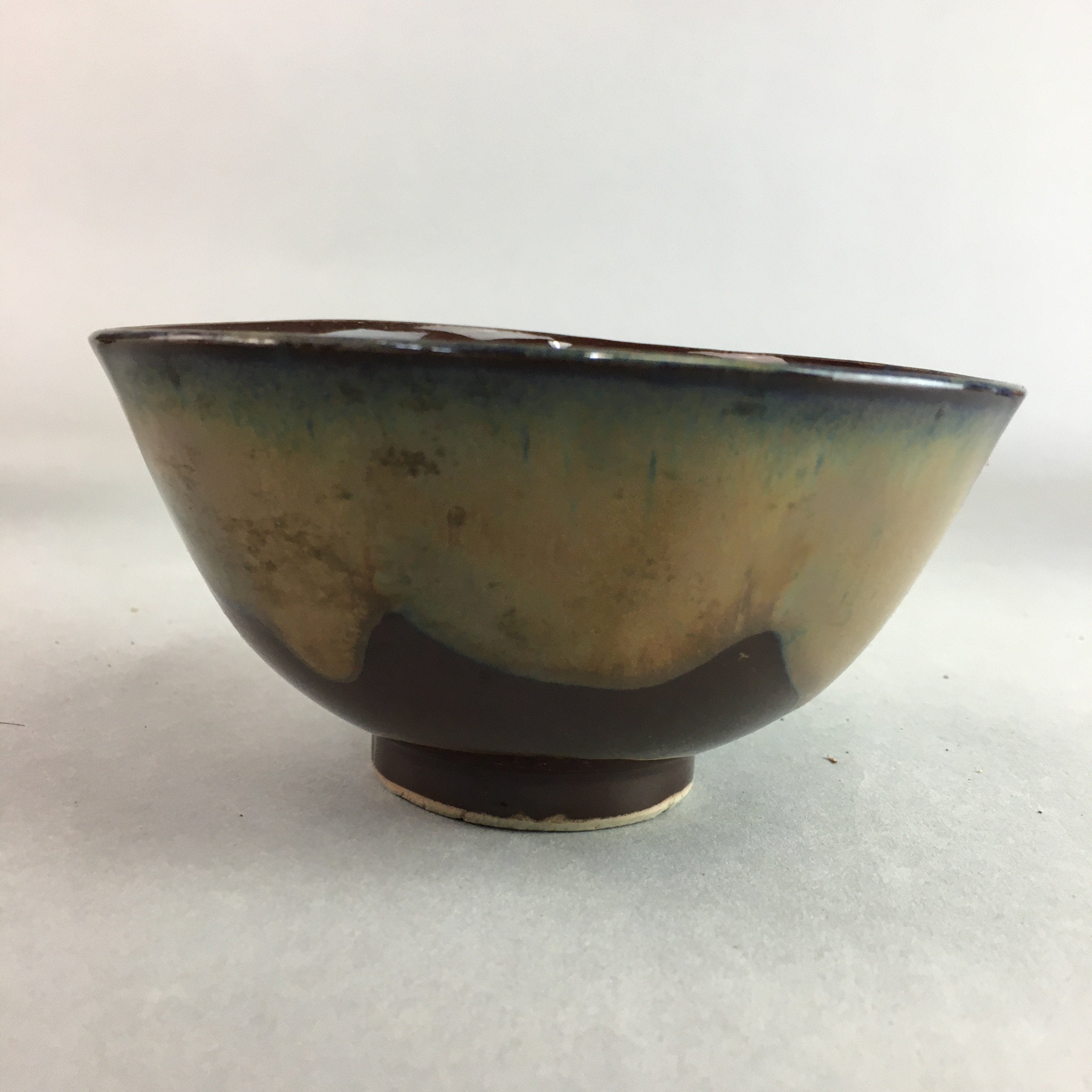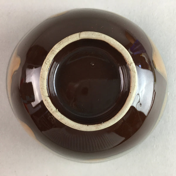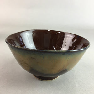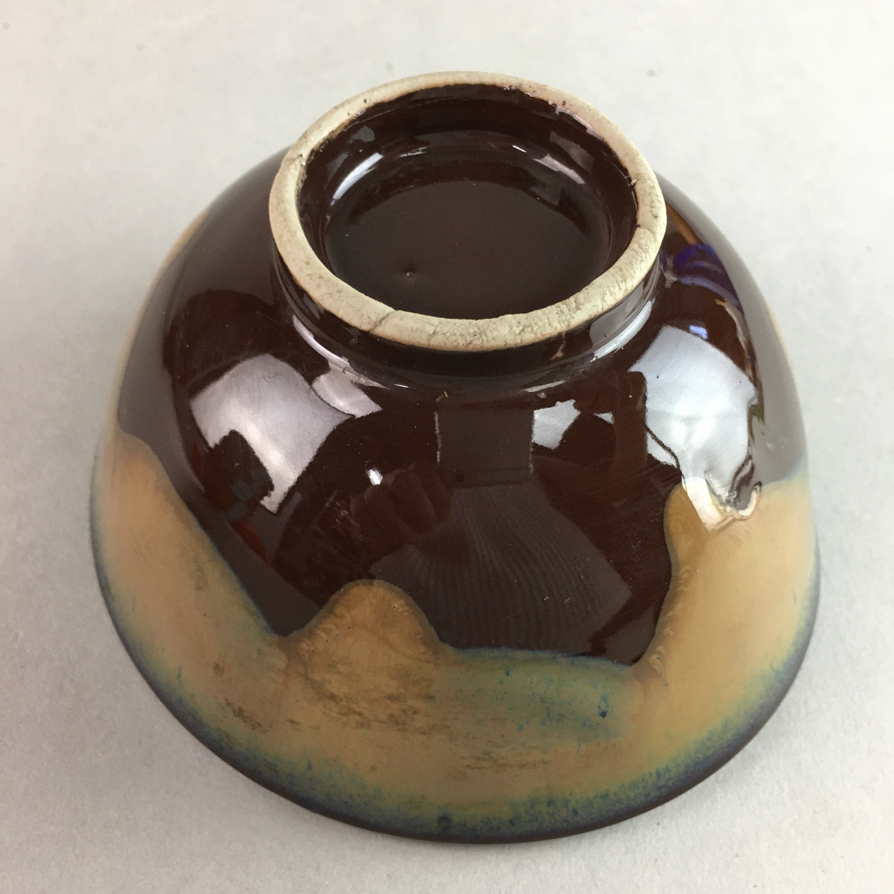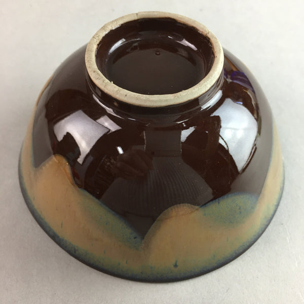 Japanese Porcelain Rice Bowl Vtg Chawan Brown Shiny Smooth Flowing Glaze PP298