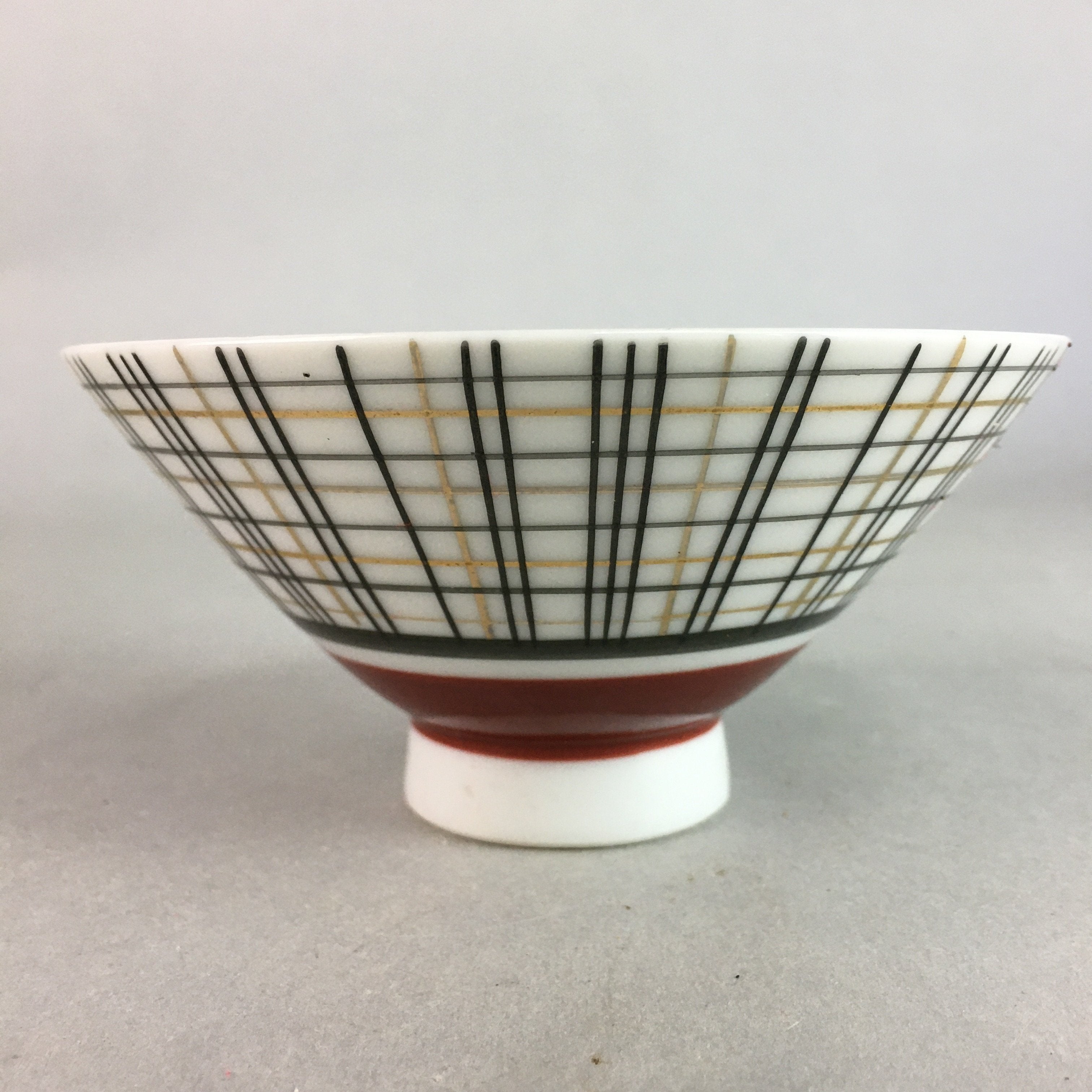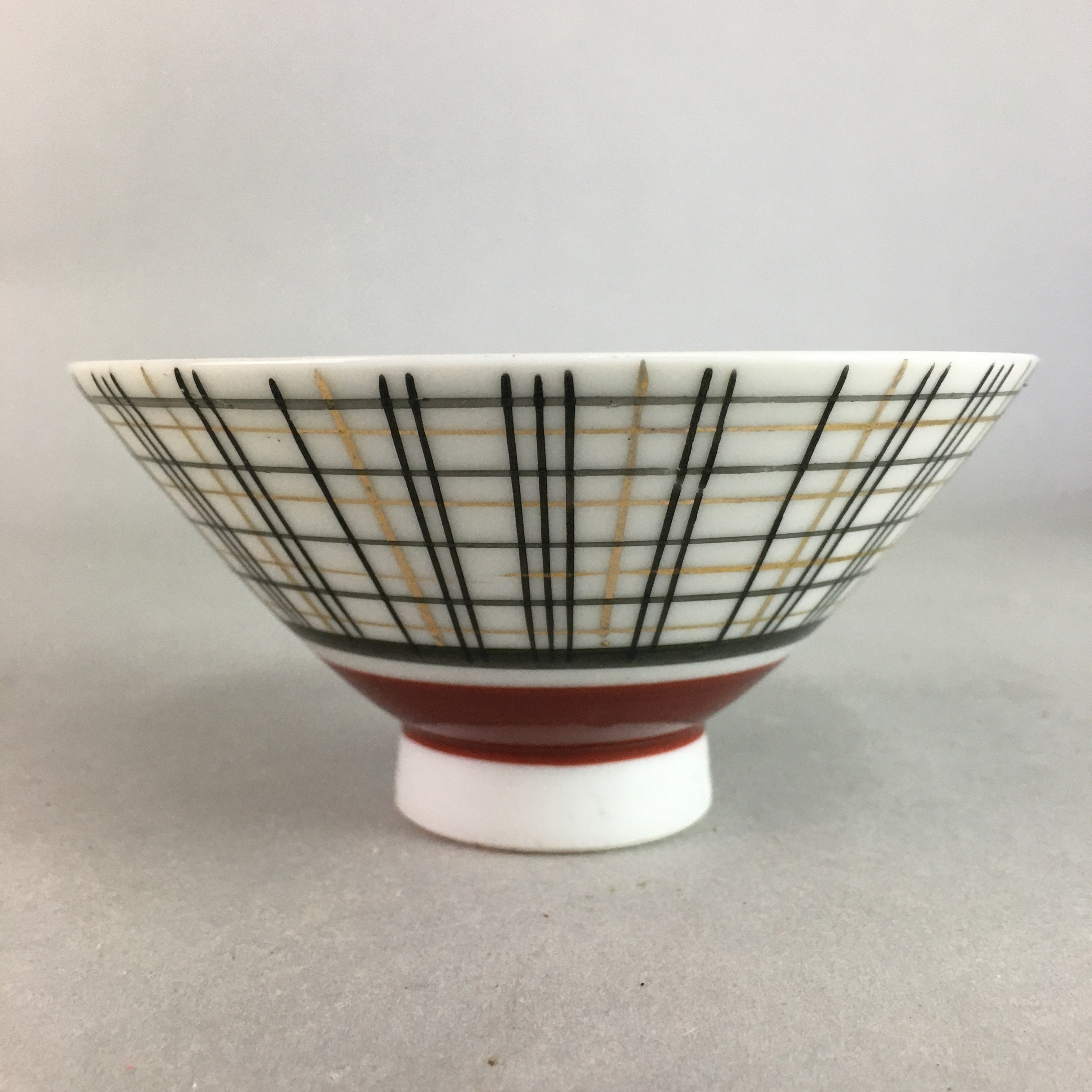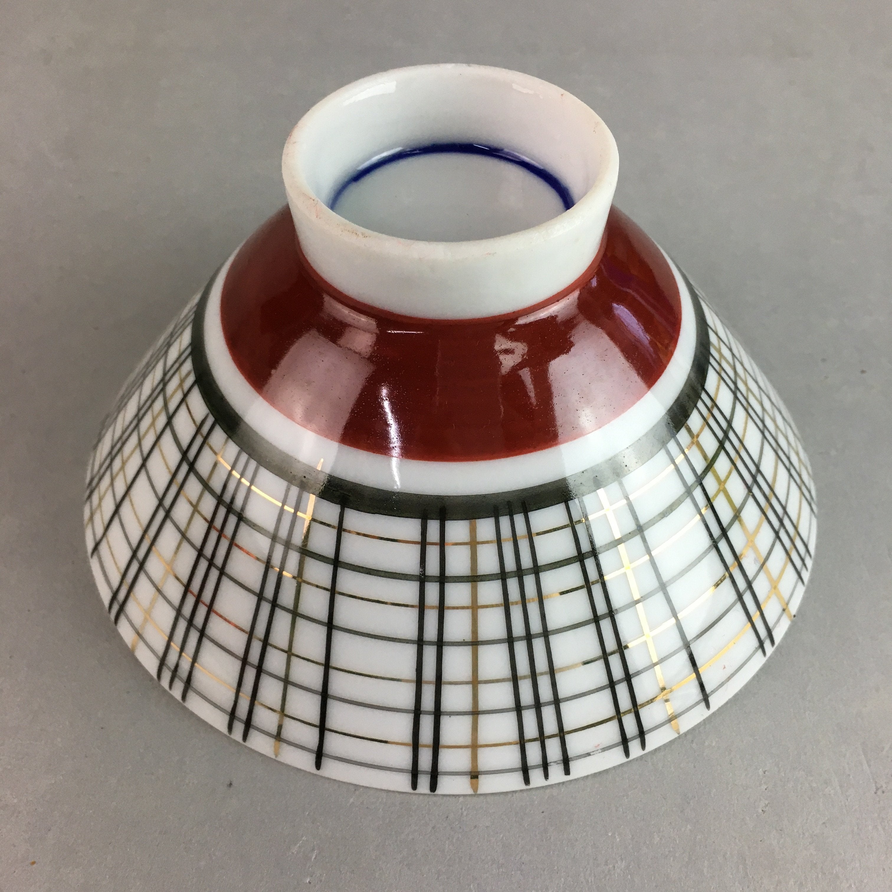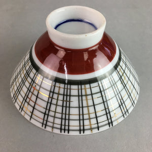 Japanese Porcelain Rice Bowl Vtg Chawan Plaid Black Gold Red PP269