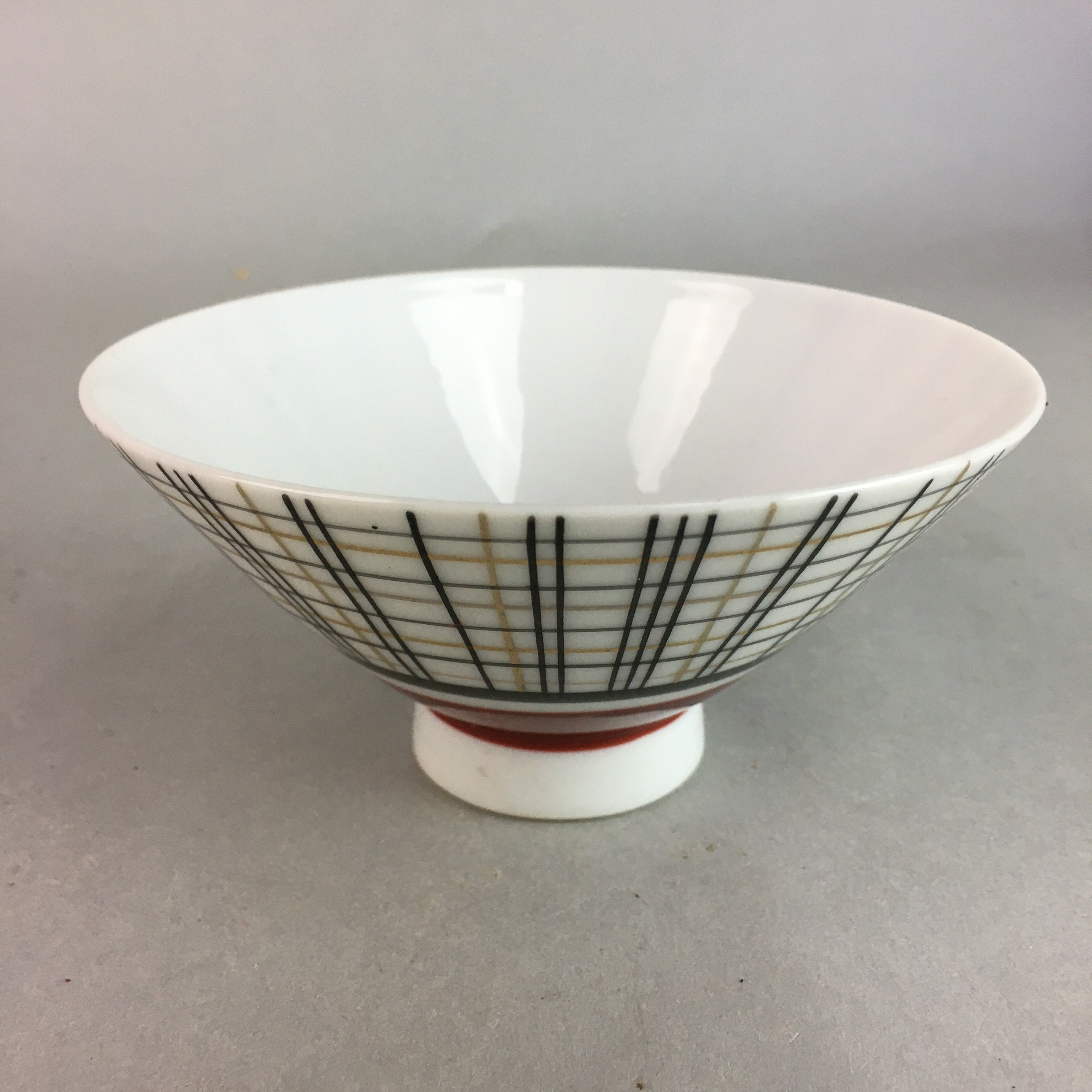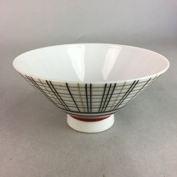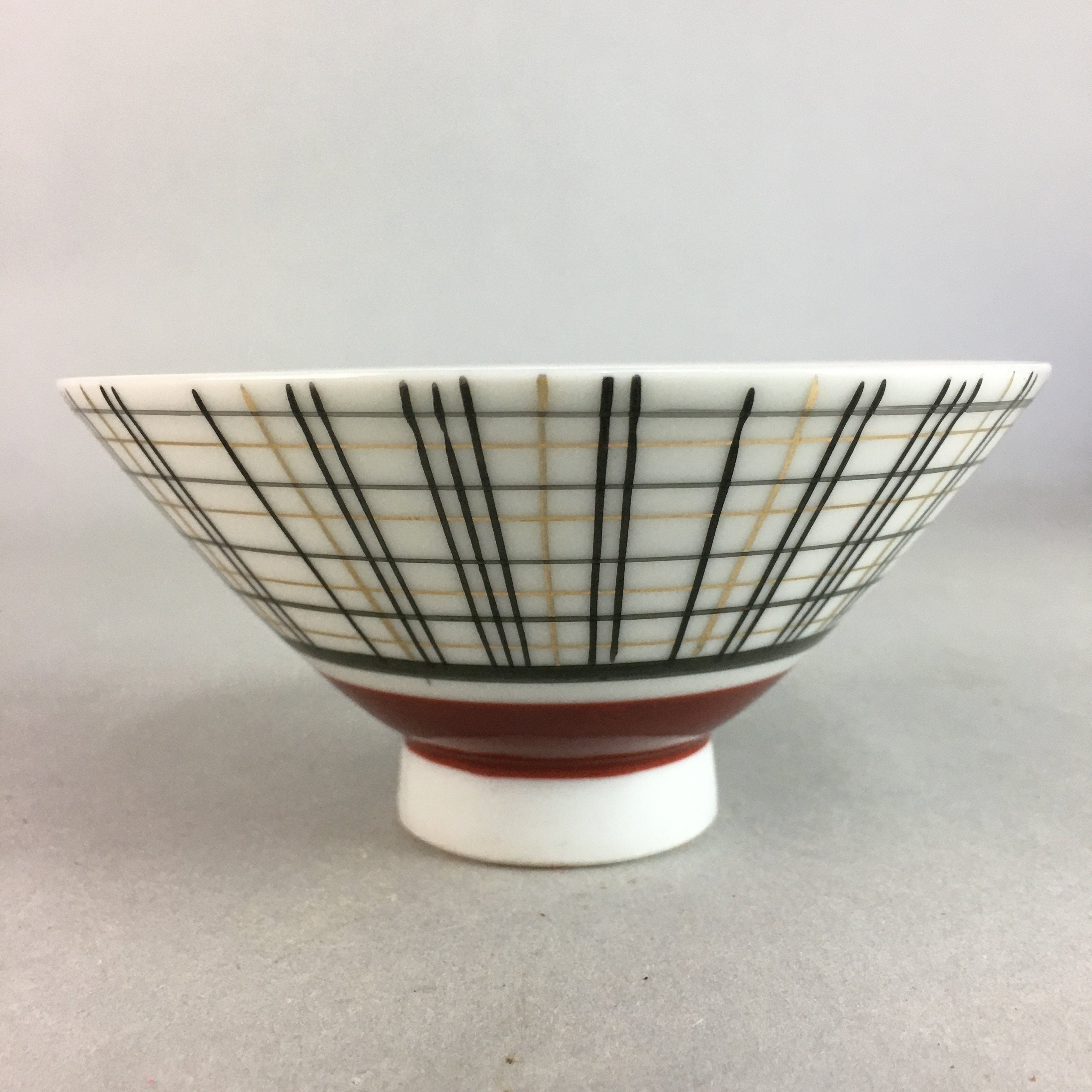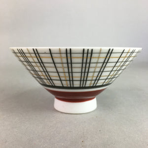 Japanese Porcelain Rice Bowl Vtg Chawan Plaid Black Gold Red PP269