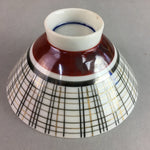 Japanese Porcelain Rice Bowl Vtg Chawan Plaid Black Gold Red PP280