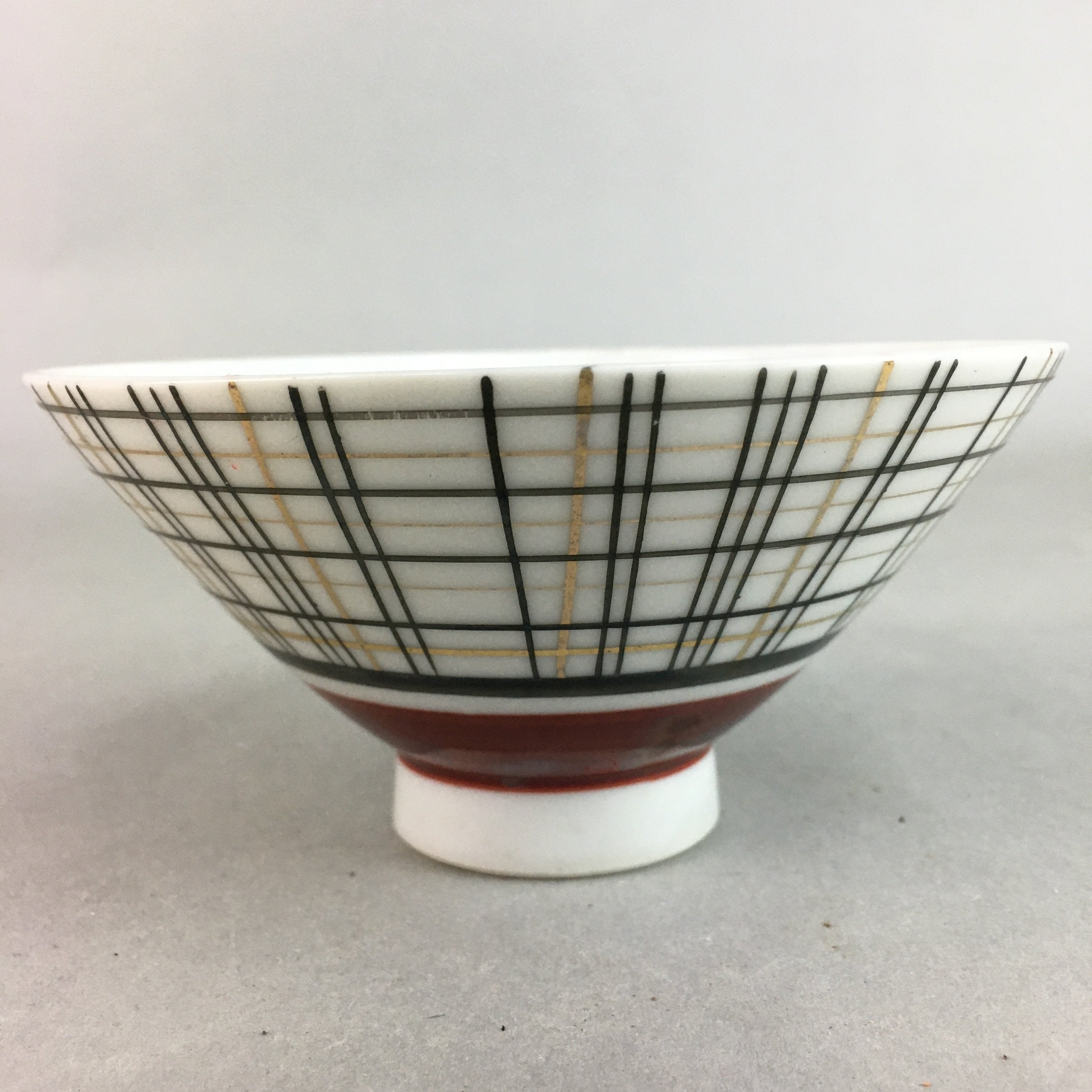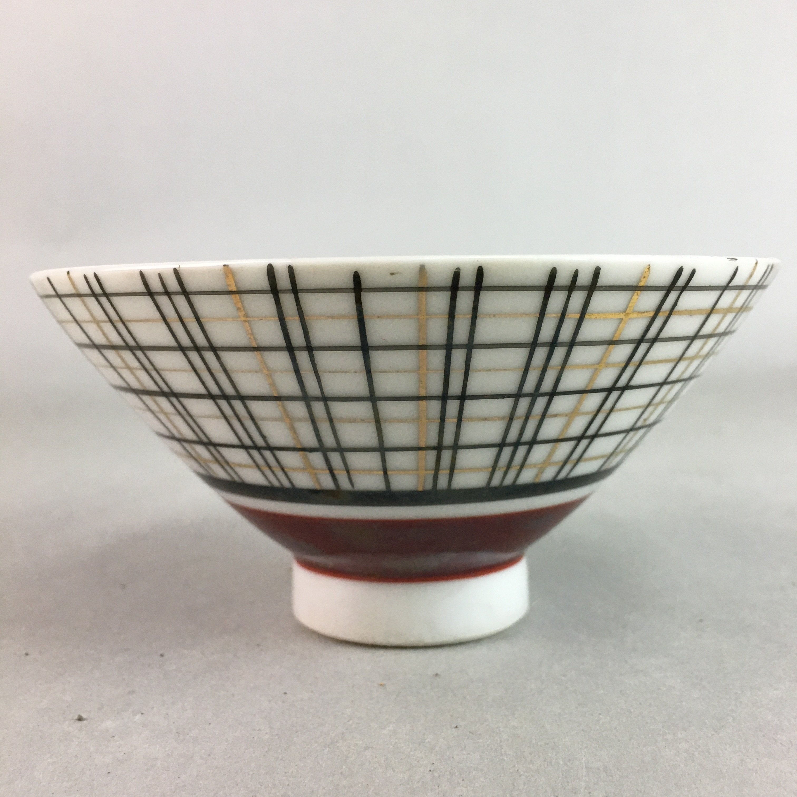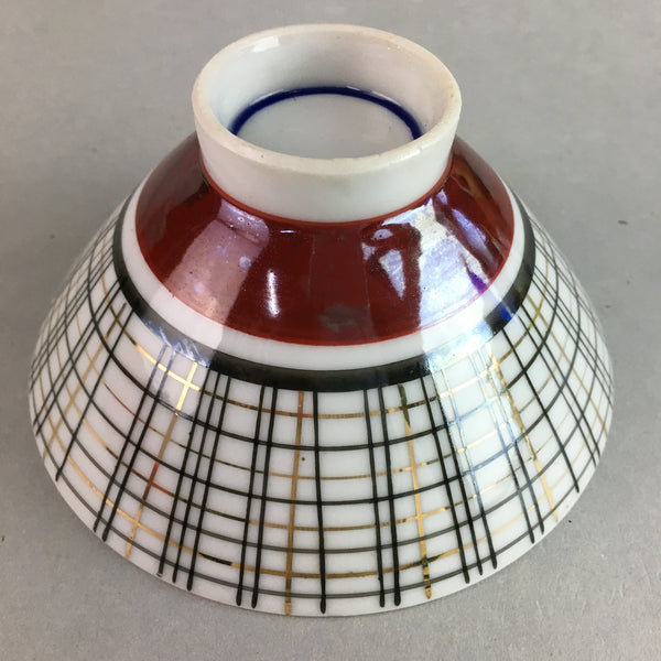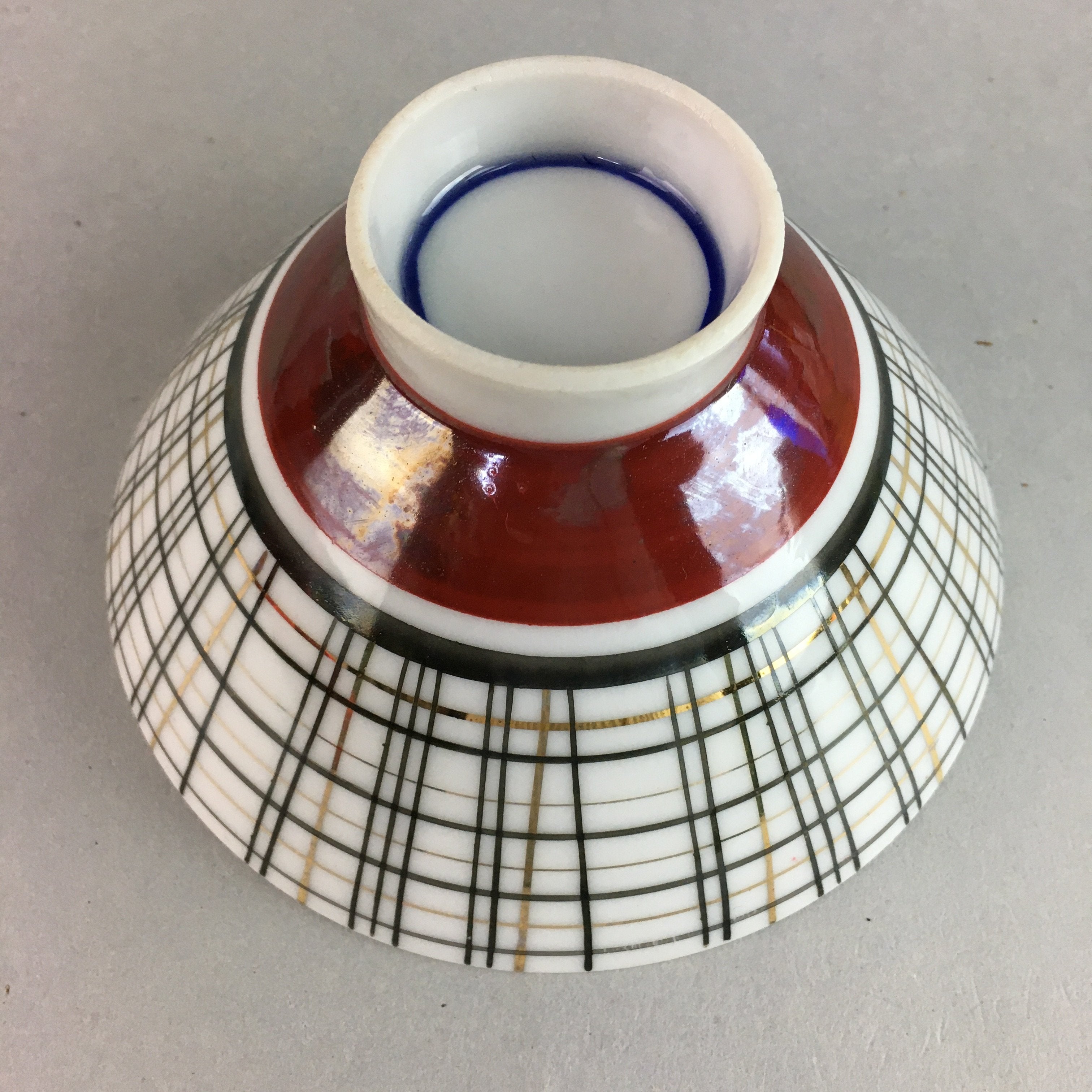 Japanese Porcelain Rice Bowl Vtg Chawan Plaid Black Gold Red PP283