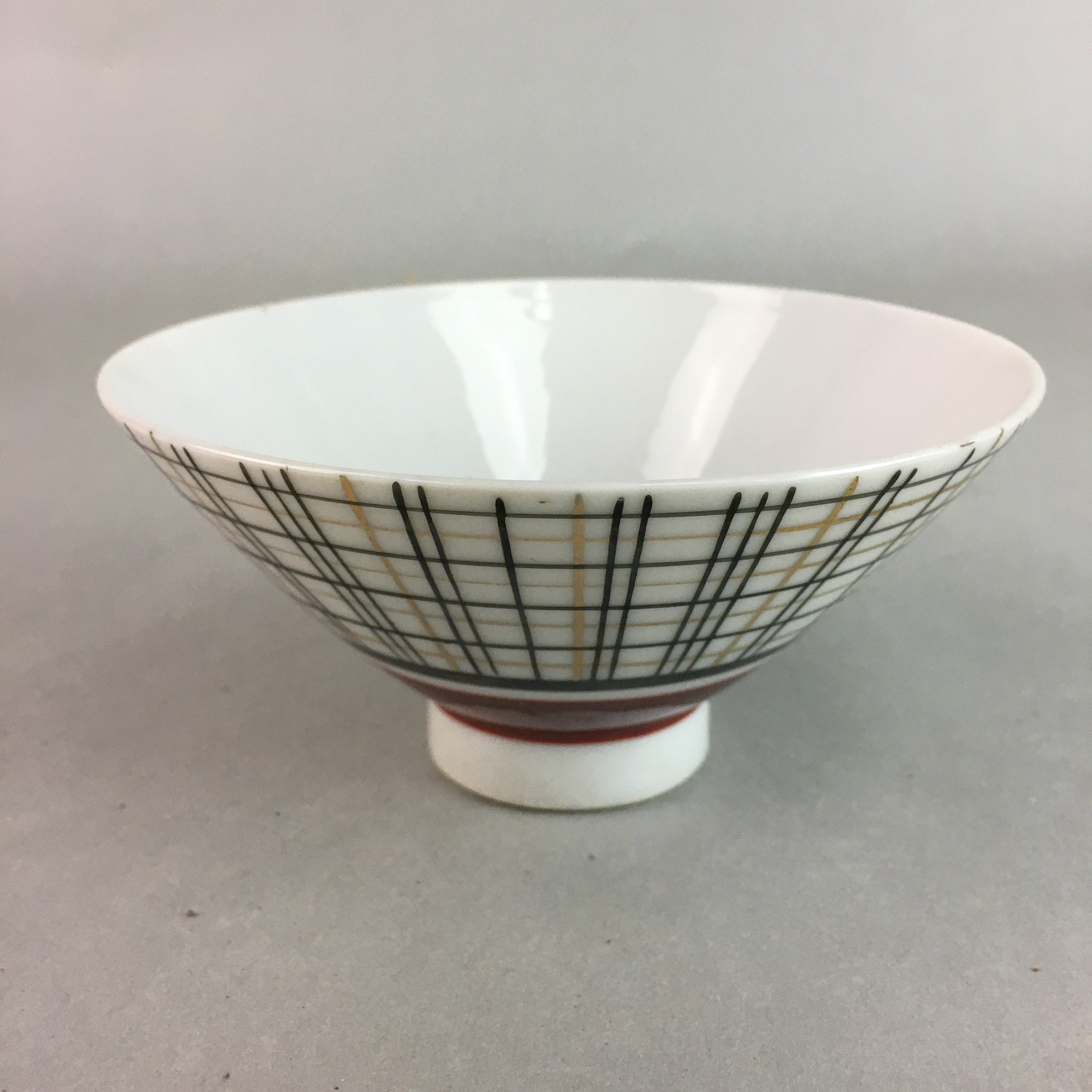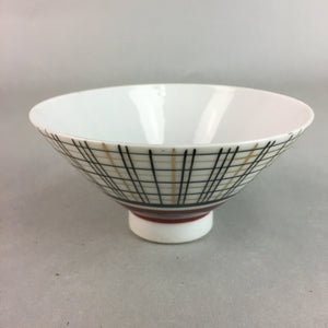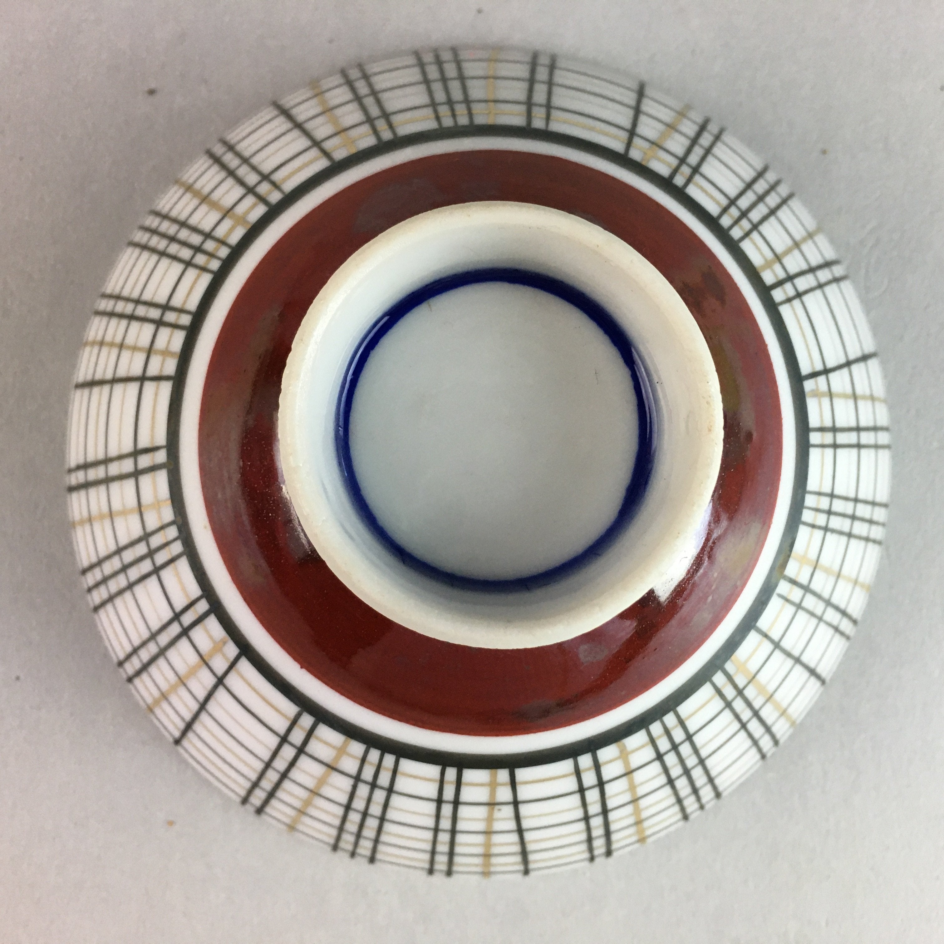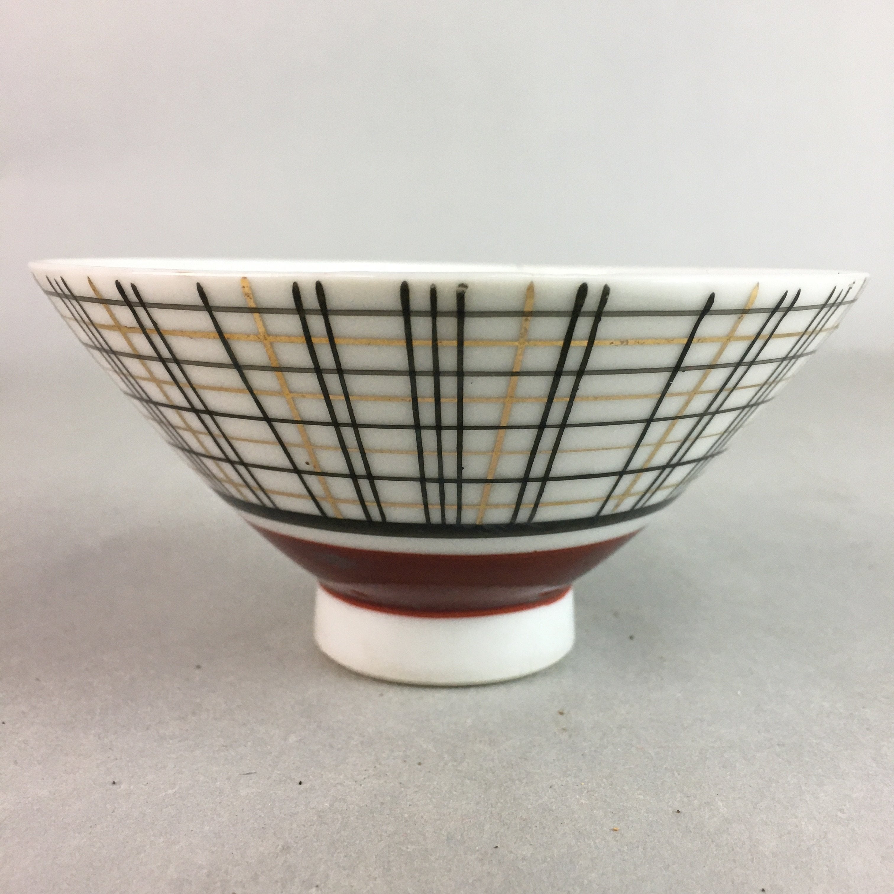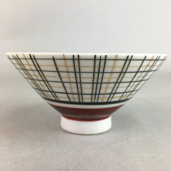 Japanese Porcelain Rice Bowl Vtg Chawan Plaid Black Gold Red PP283