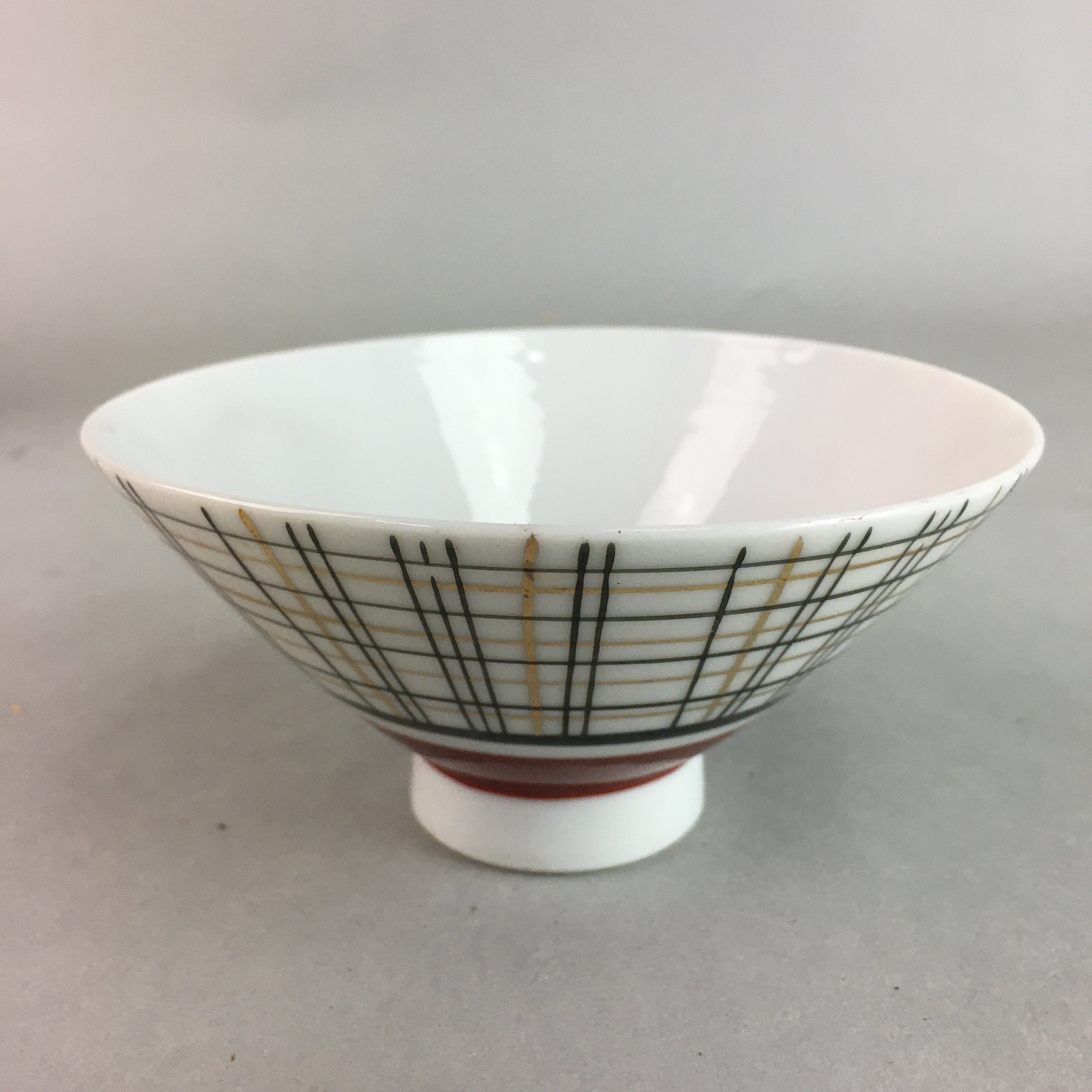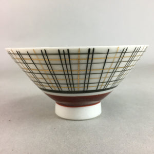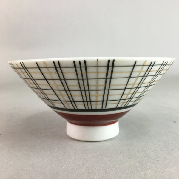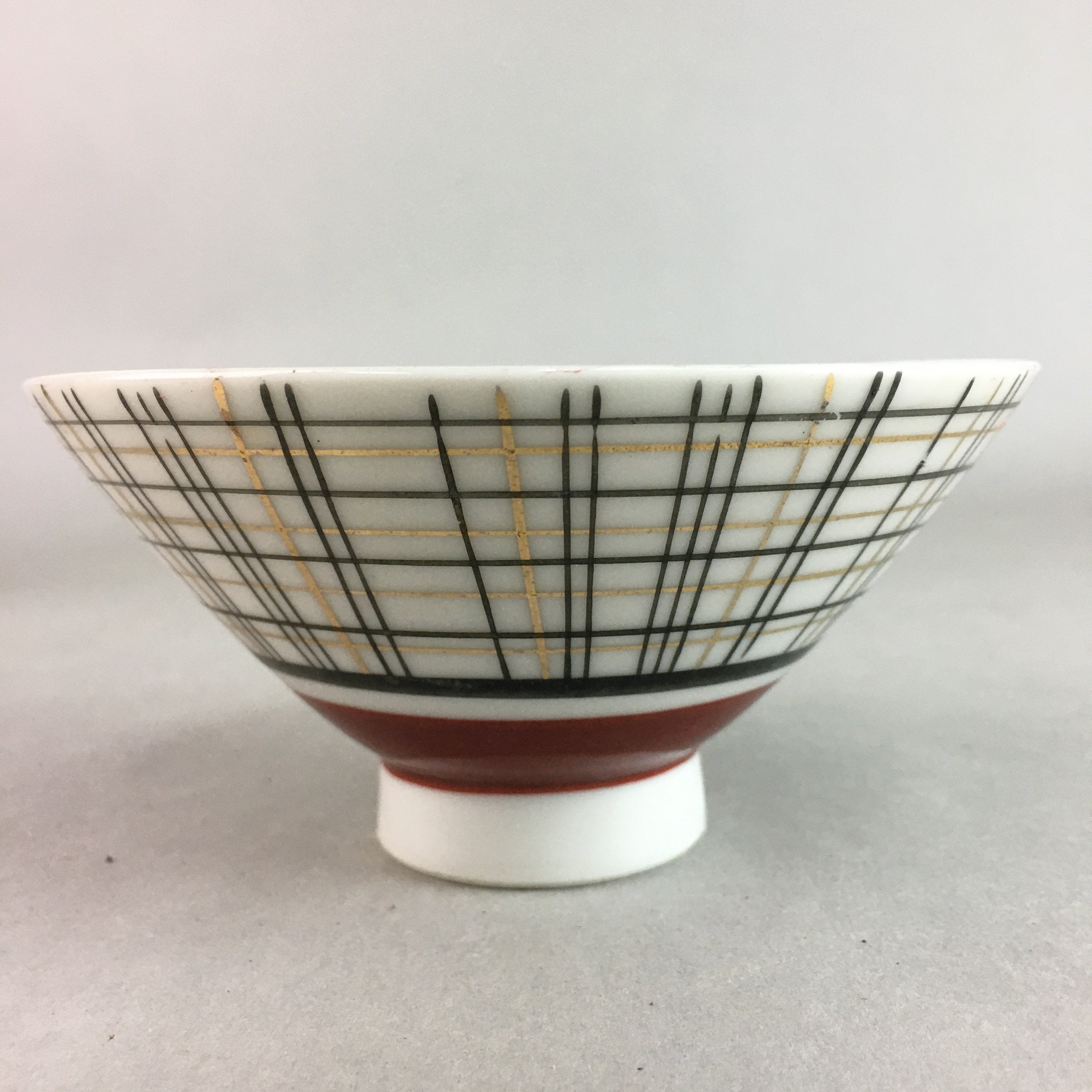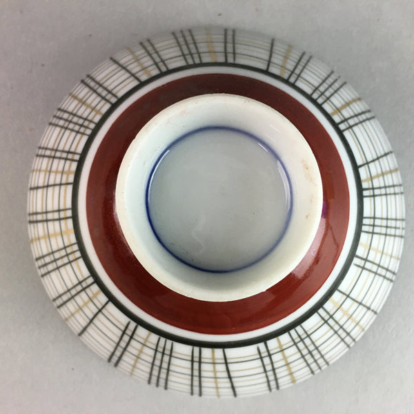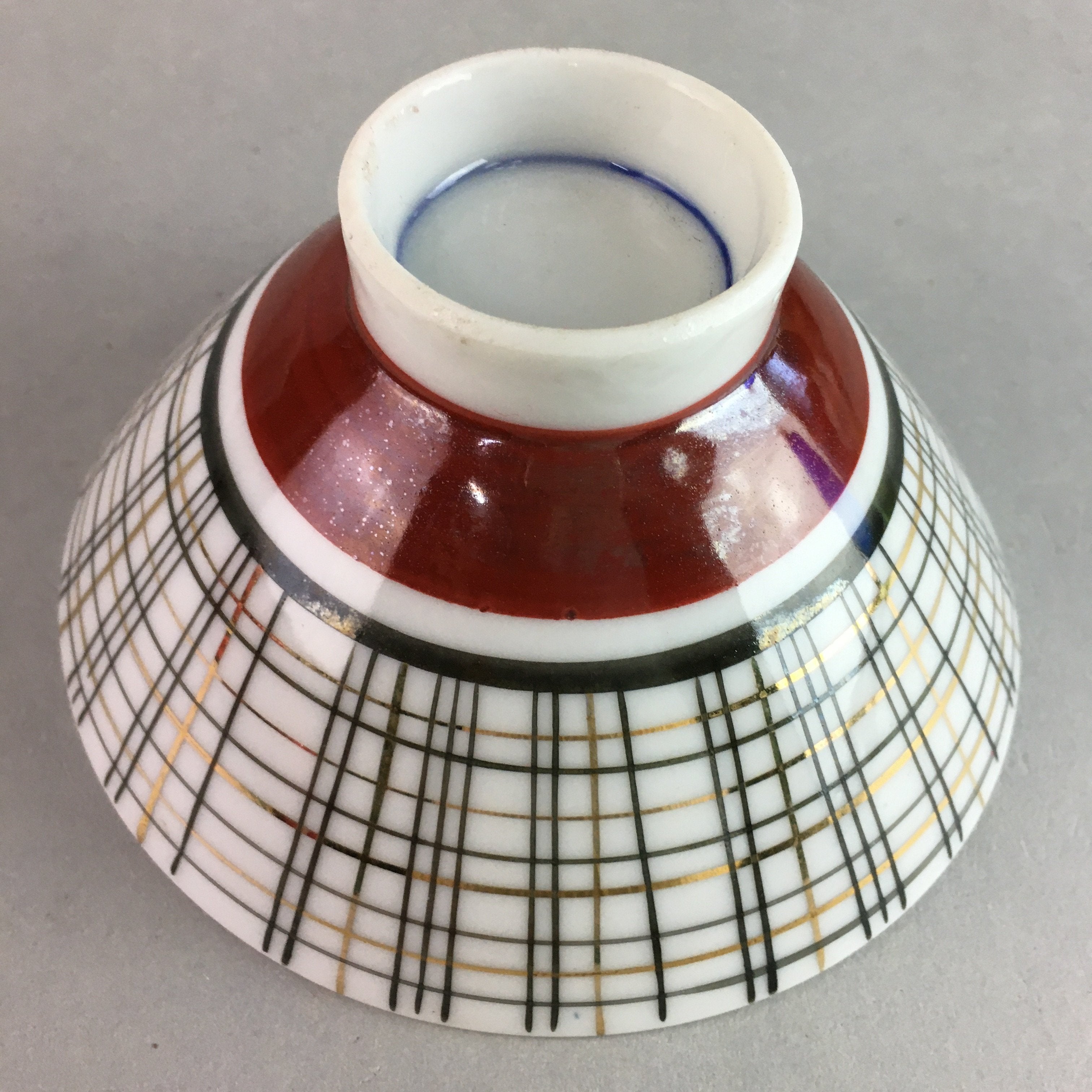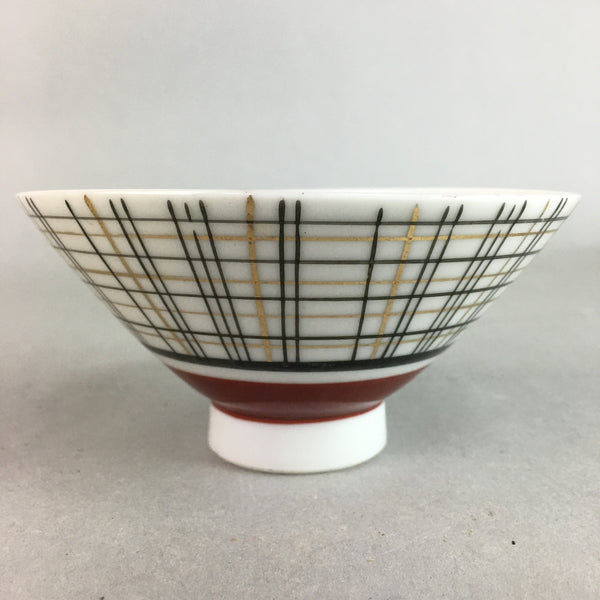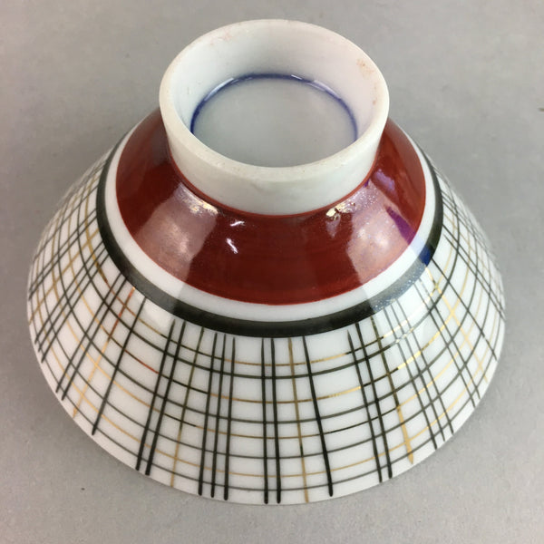 Japanese Porcelain Rice Bowl Vtg Chawan Plaid Black Gold Red PP284