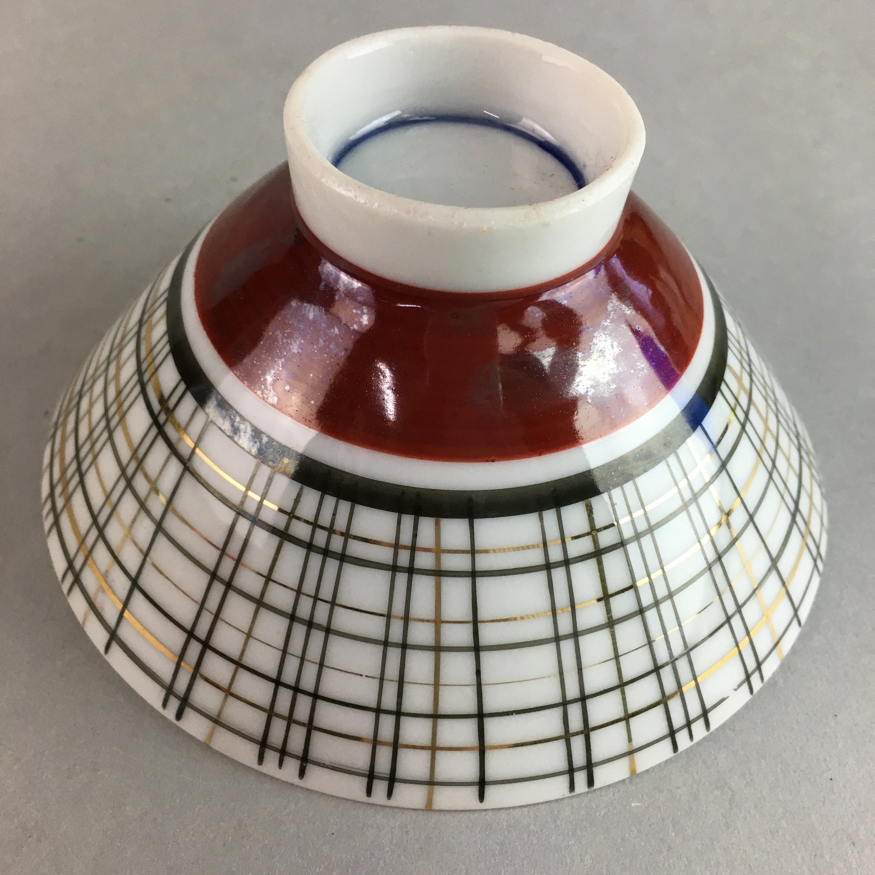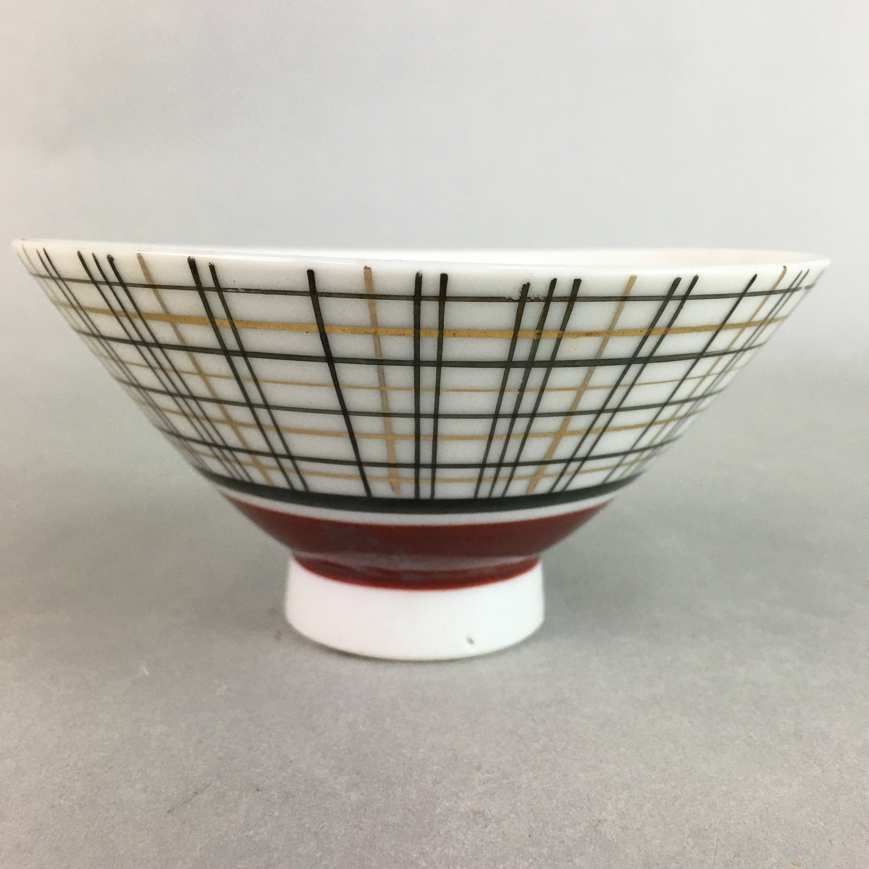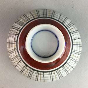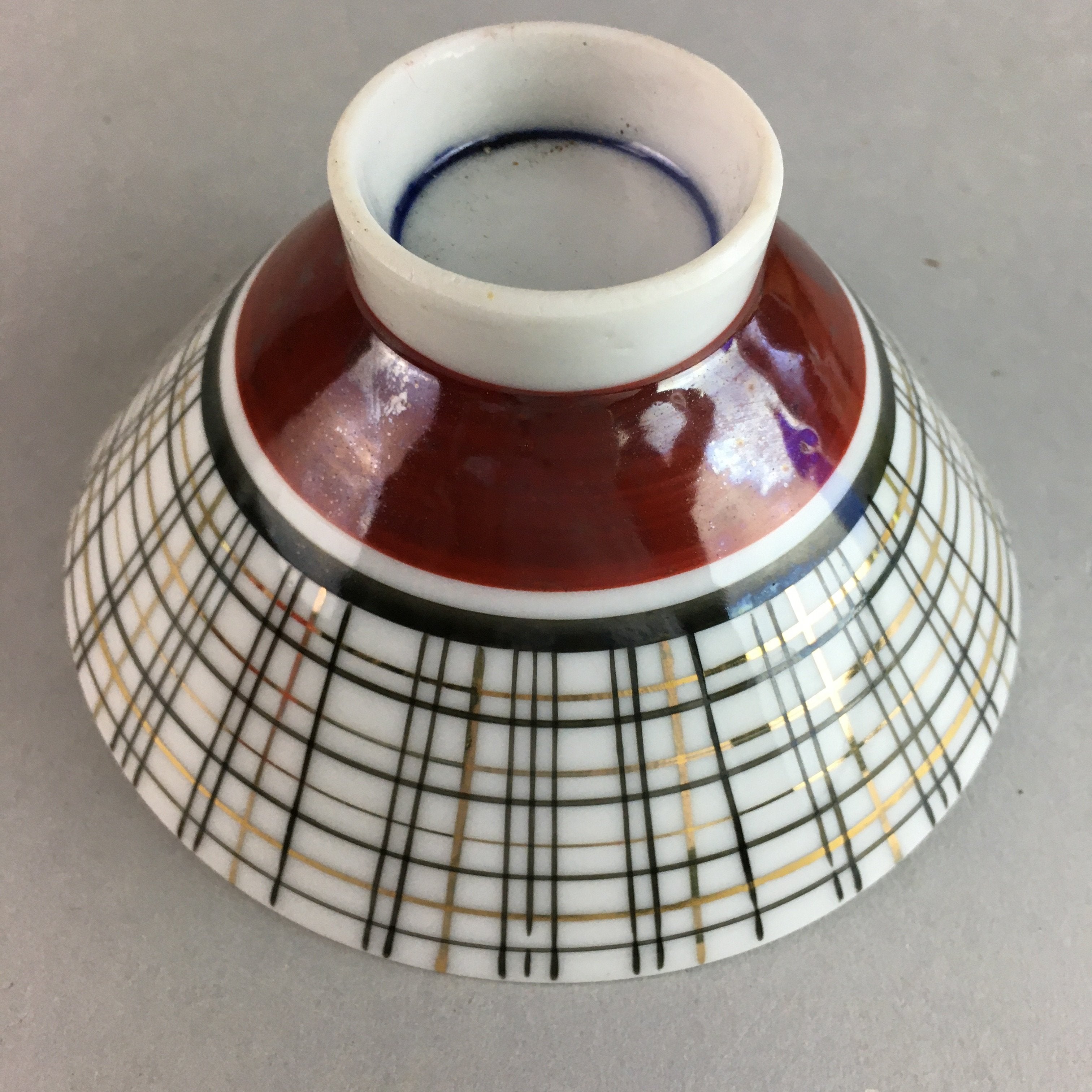 Japanese Porcelain Rice Bowl Vtg Chawan Plaid Black Gold Red PP285