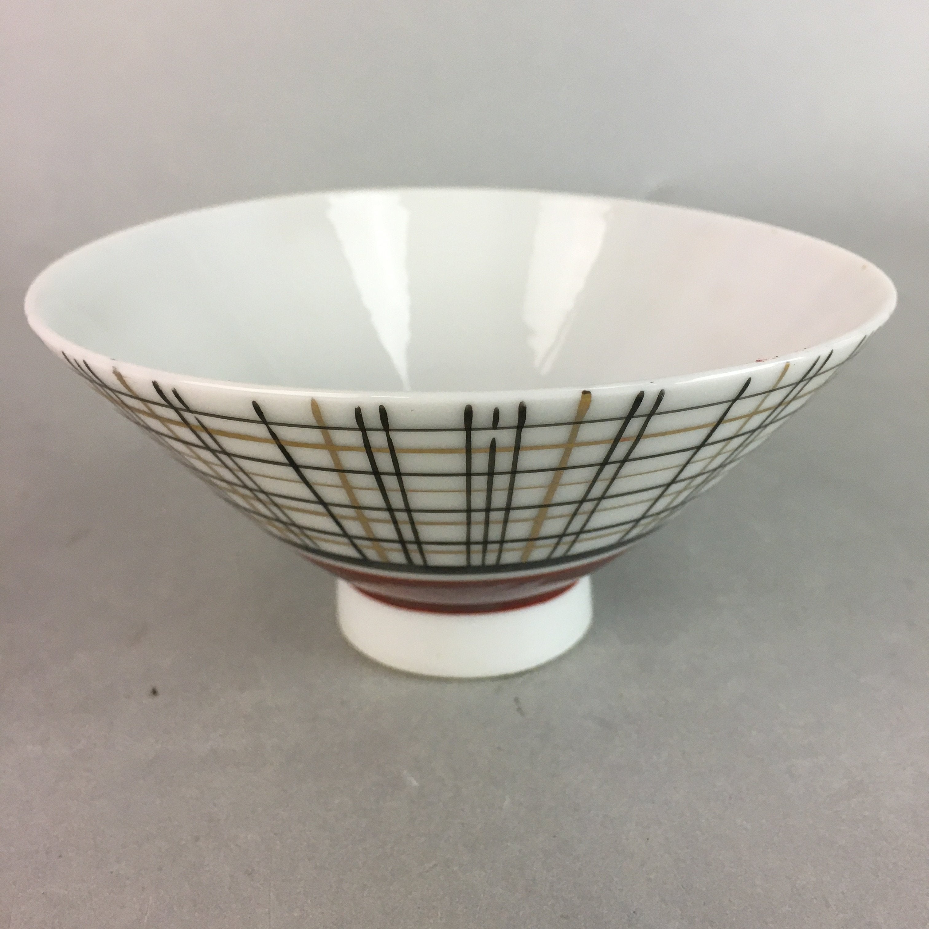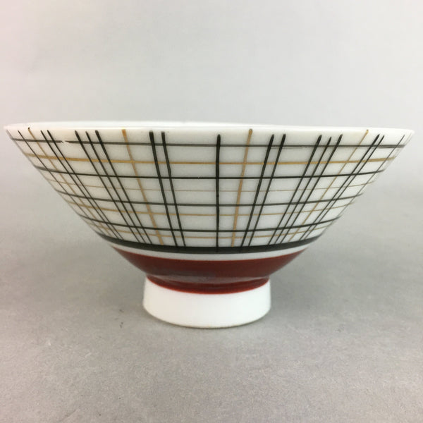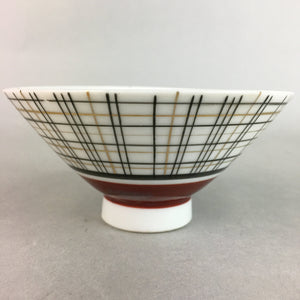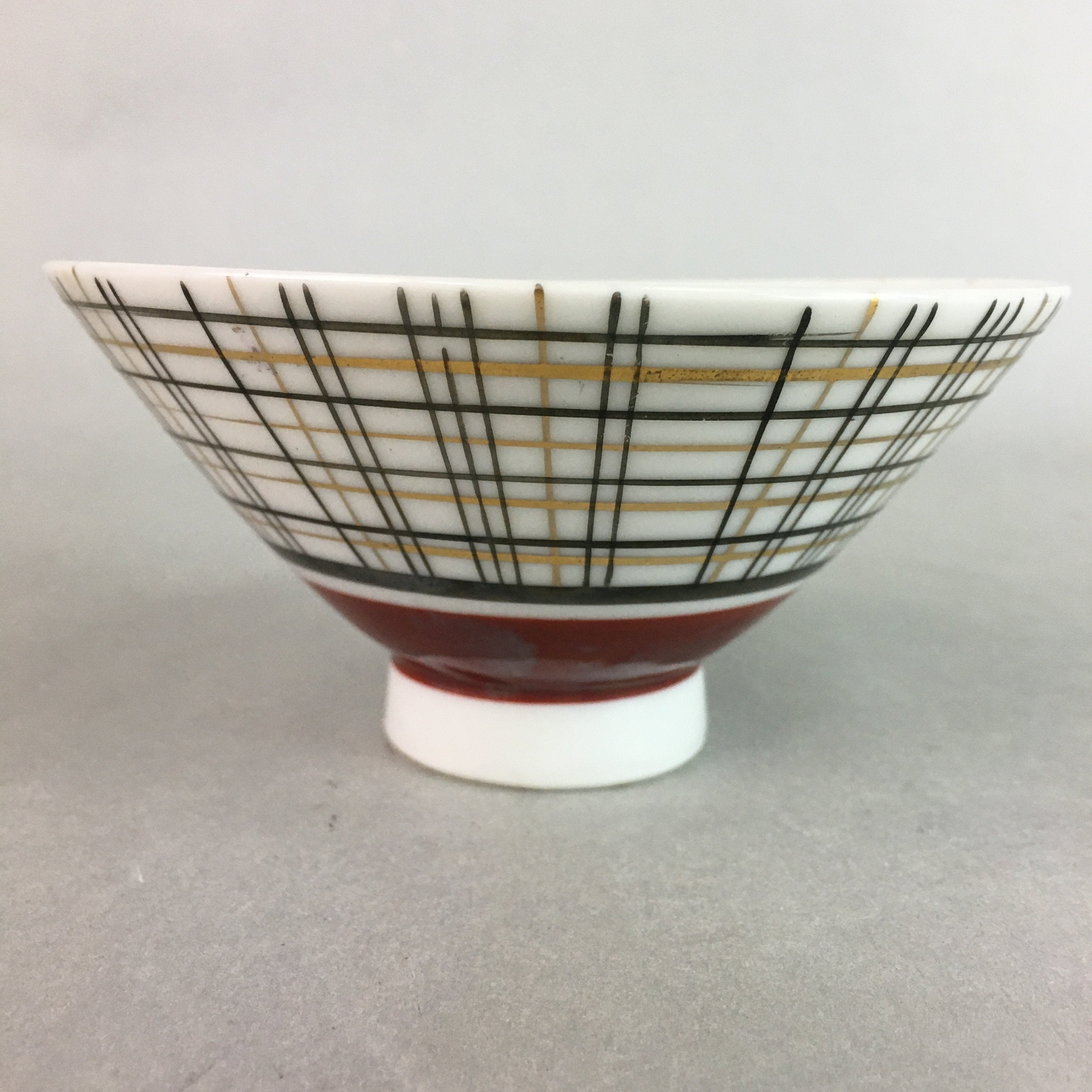Japanese Porcelain Rice Bowl Vtg Chawan Plaid Black Gold Red PP285