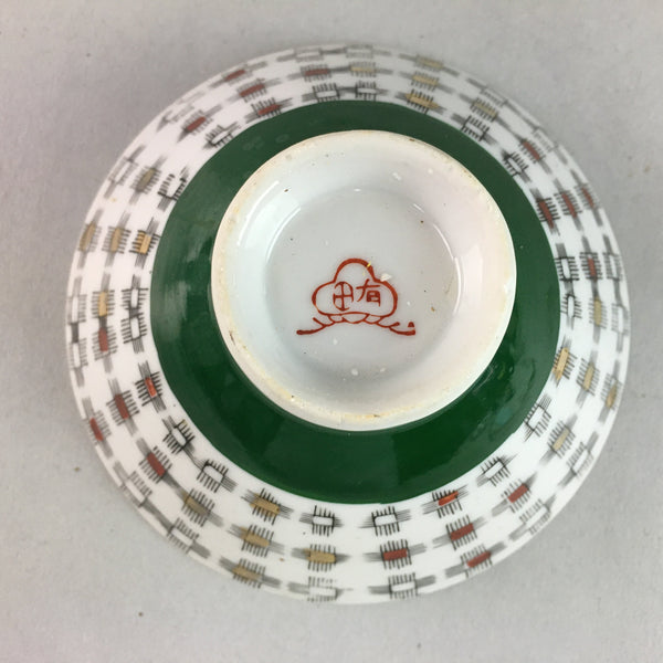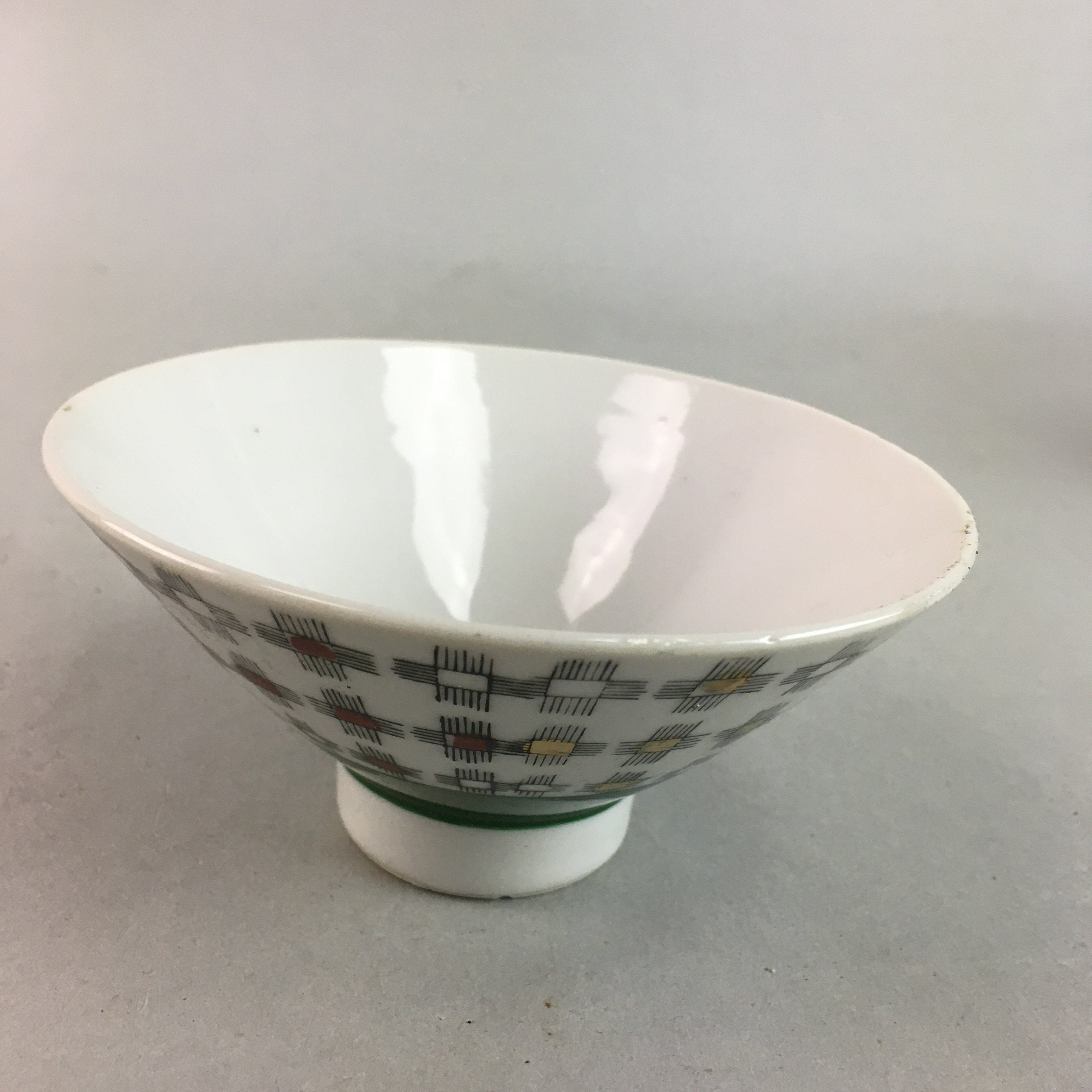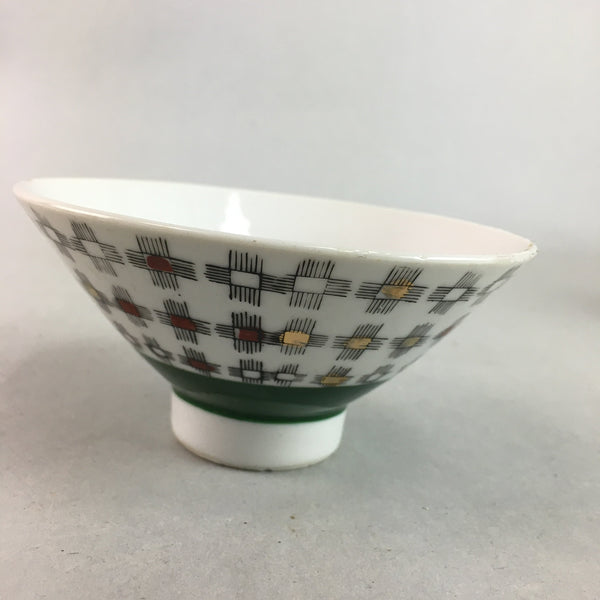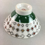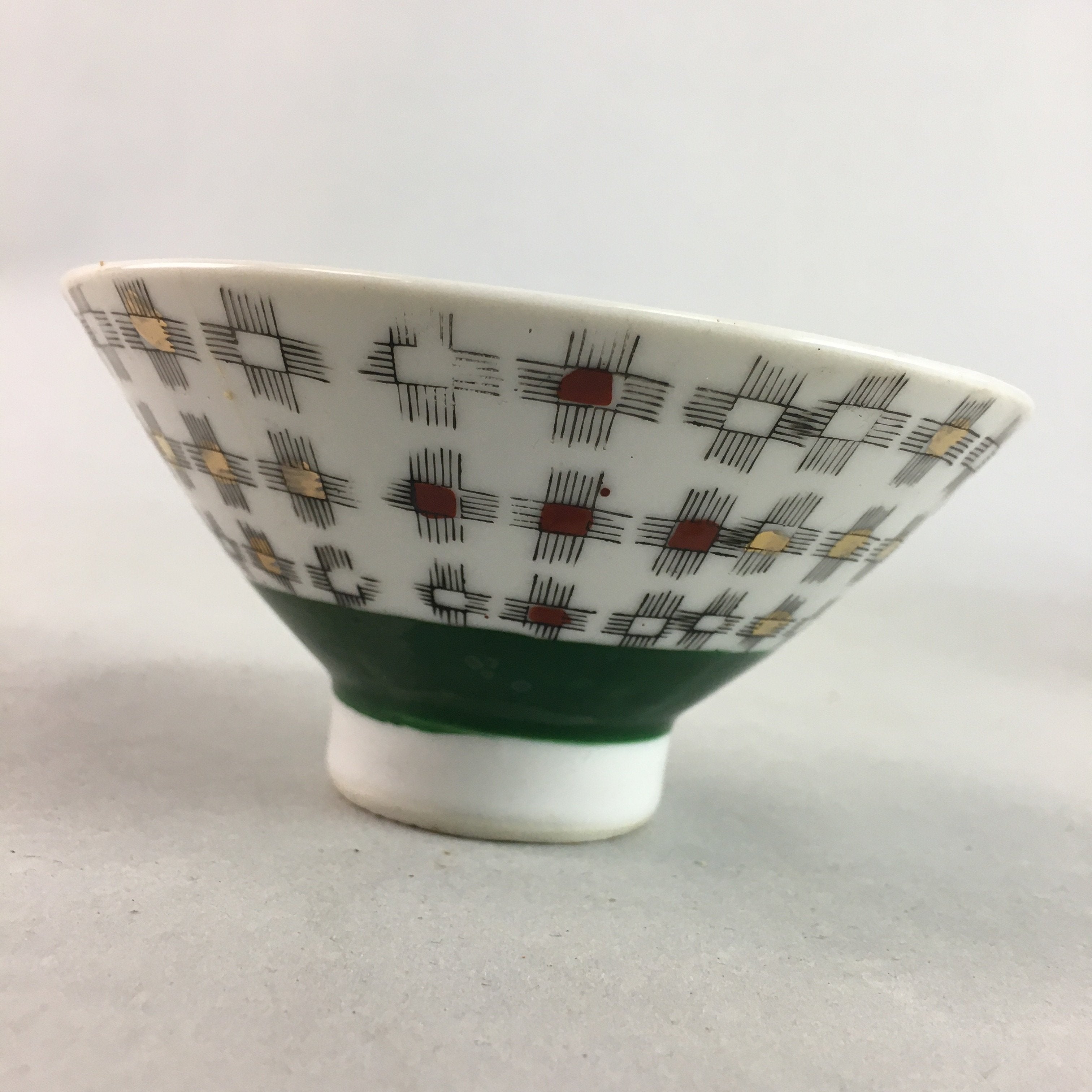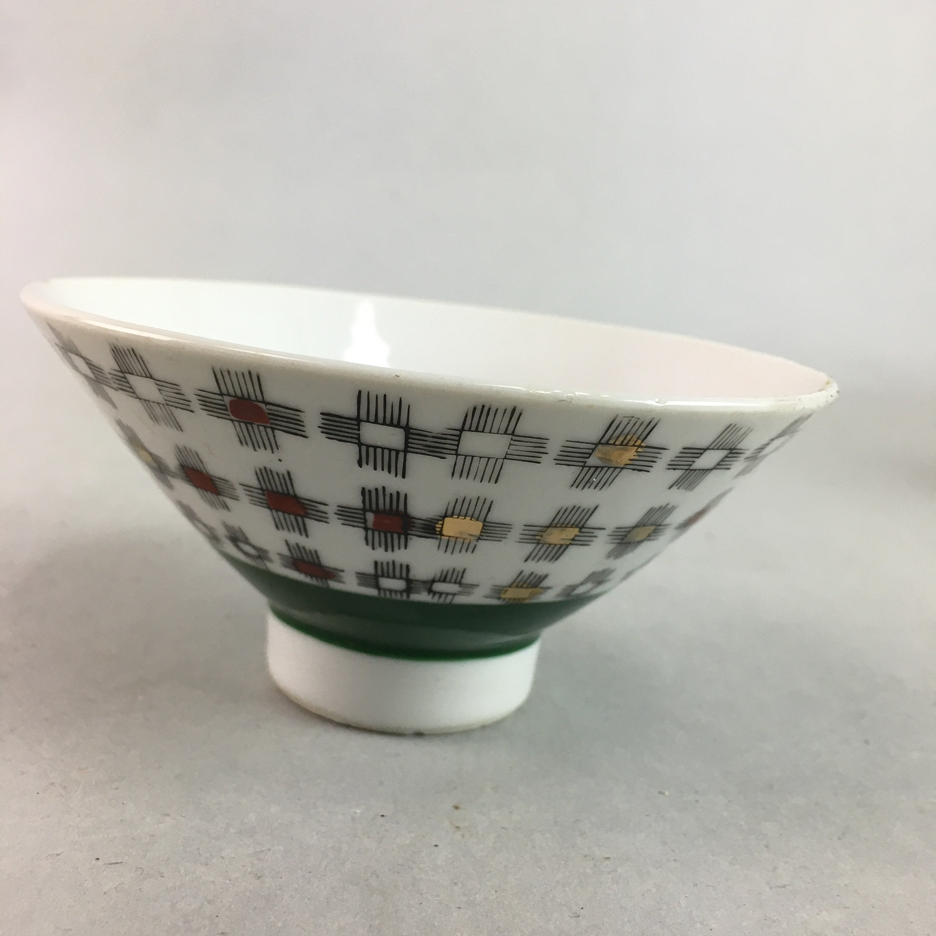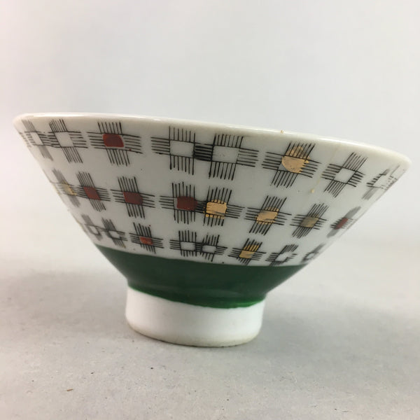 Japanese Porcelain Rice Bowl Vtg Chawan Plus Sign Plaid Gold Green Arita PP195