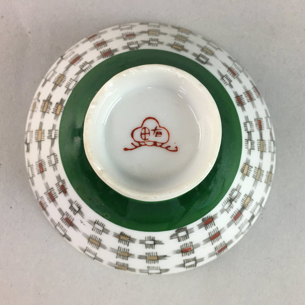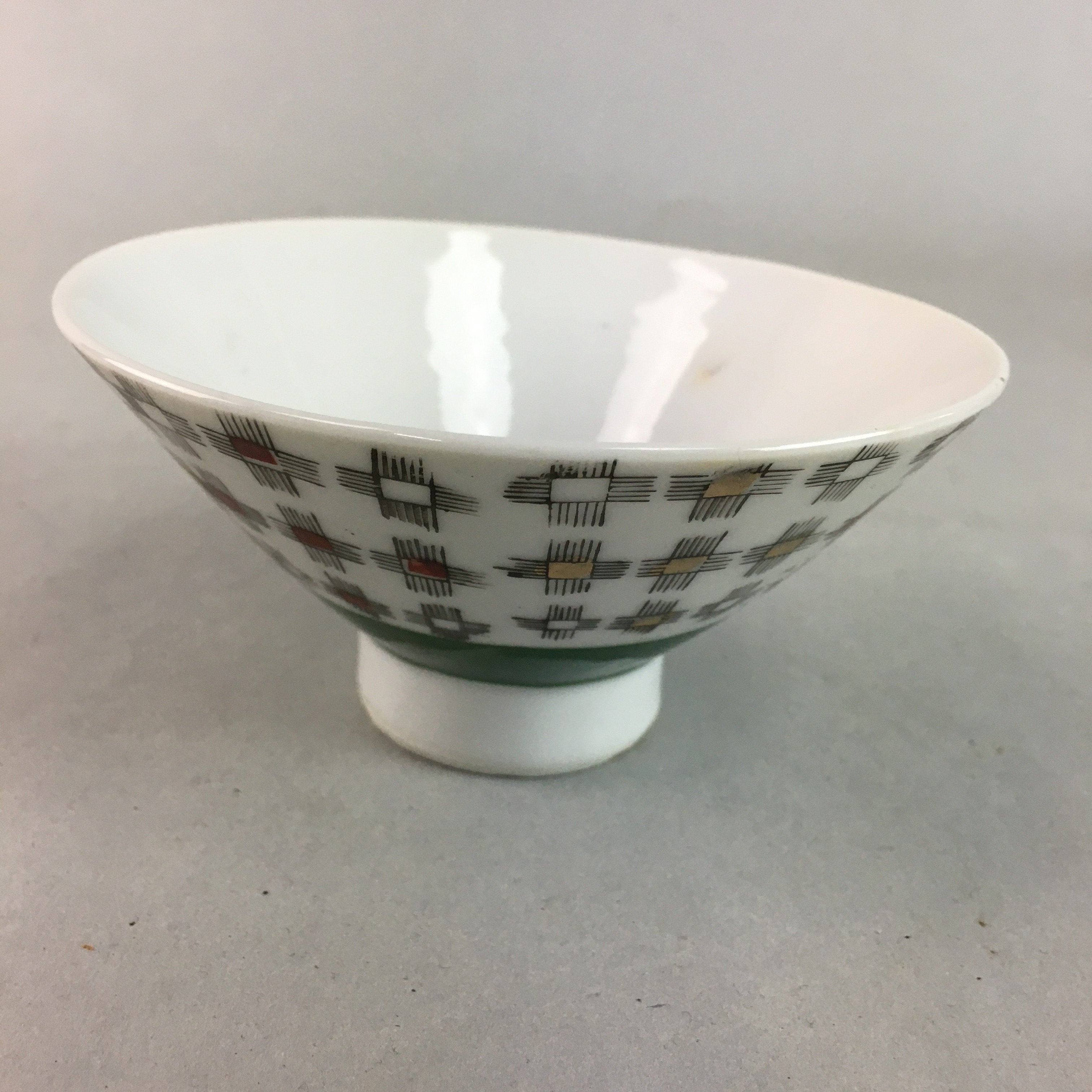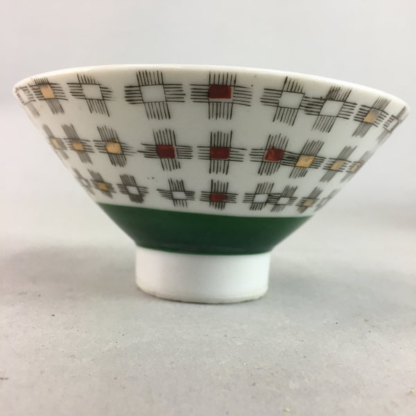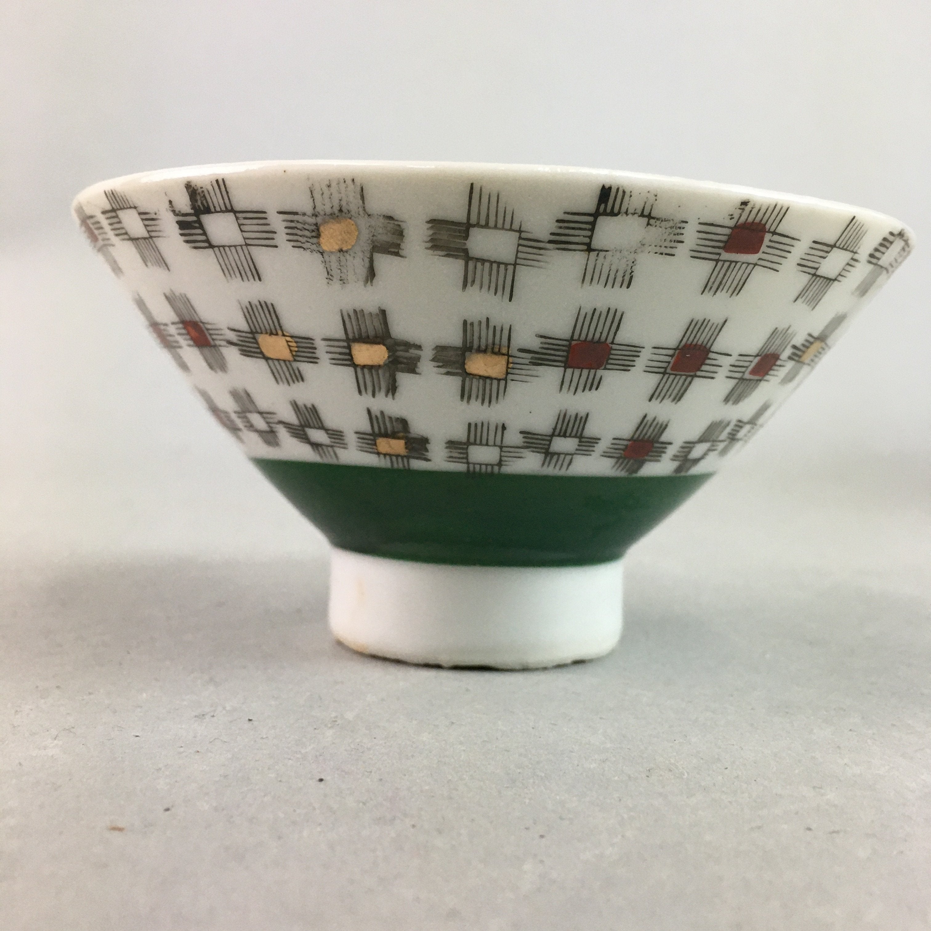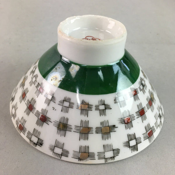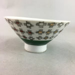 Japanese Porcelain Rice Bowl Vtg Chawan Plus Sign Plaid Gold Green Arita PP196