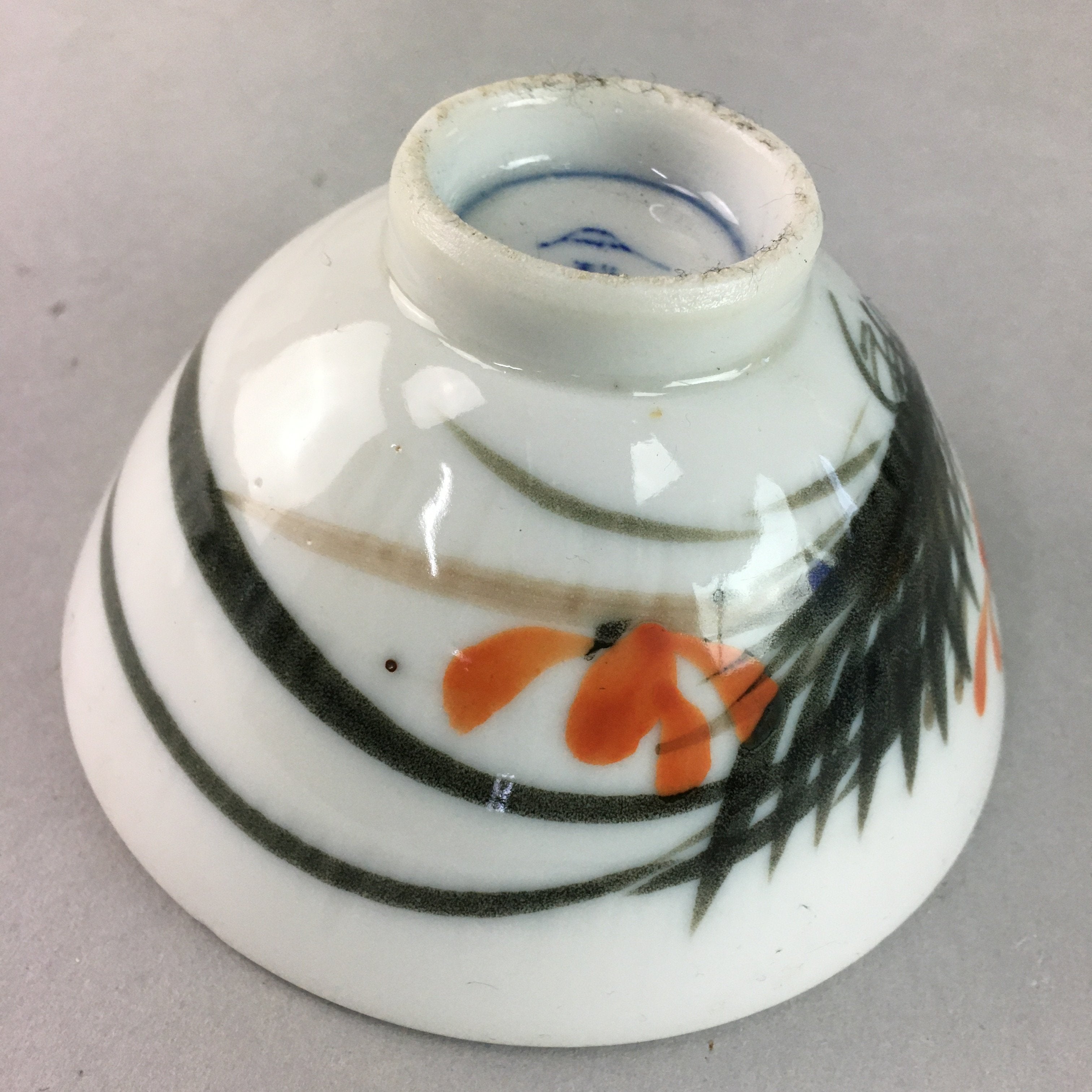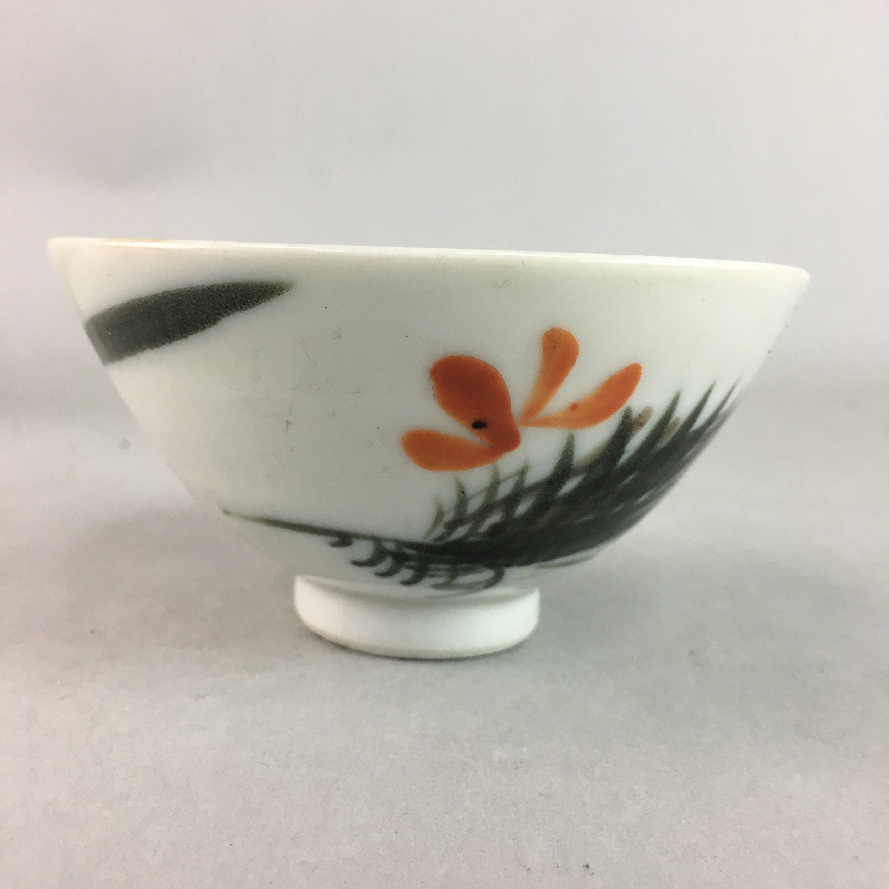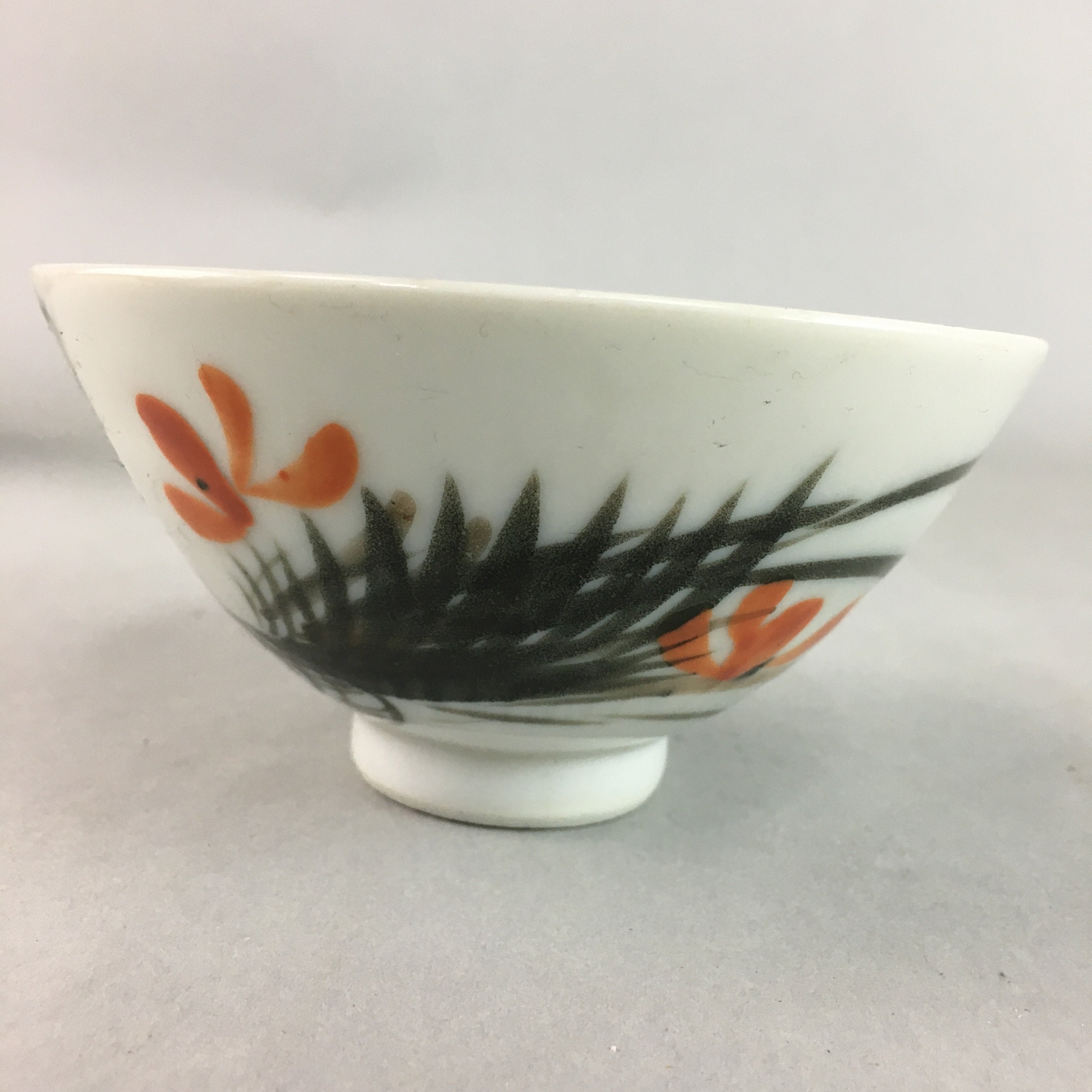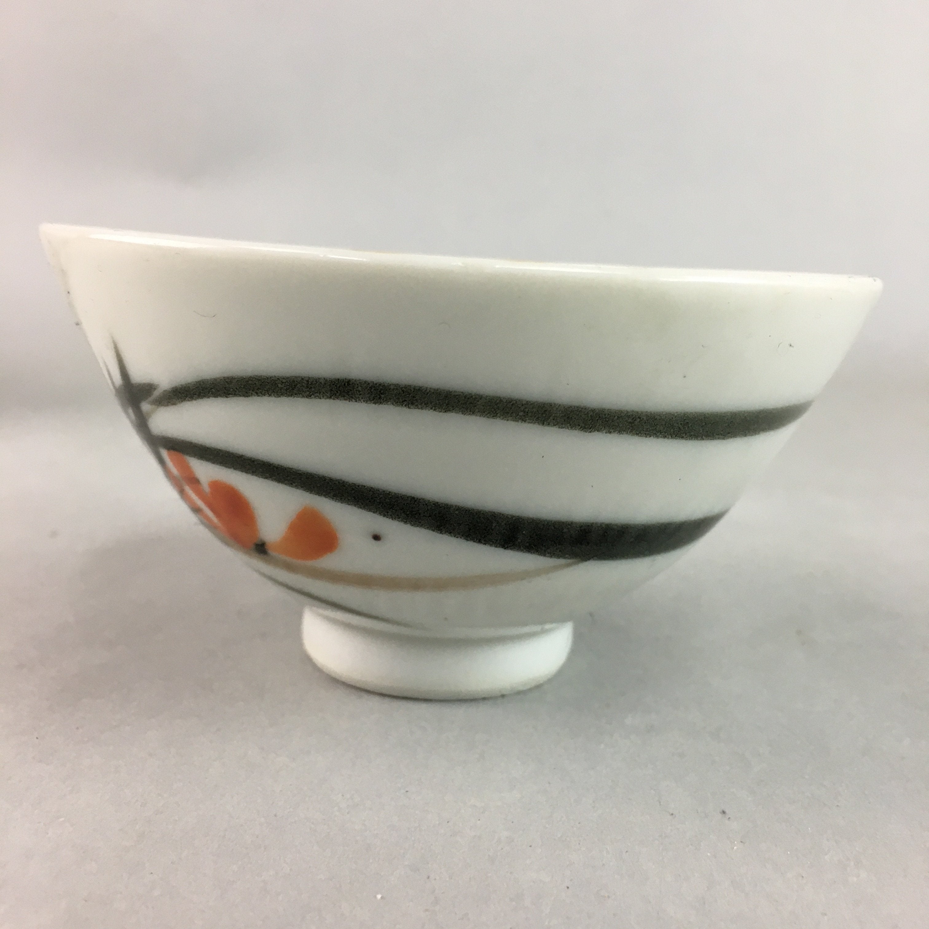 Japanese Porcelain Rice Bowl Vtg Chawan Red Black Flower Leaf PP229