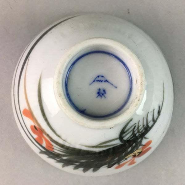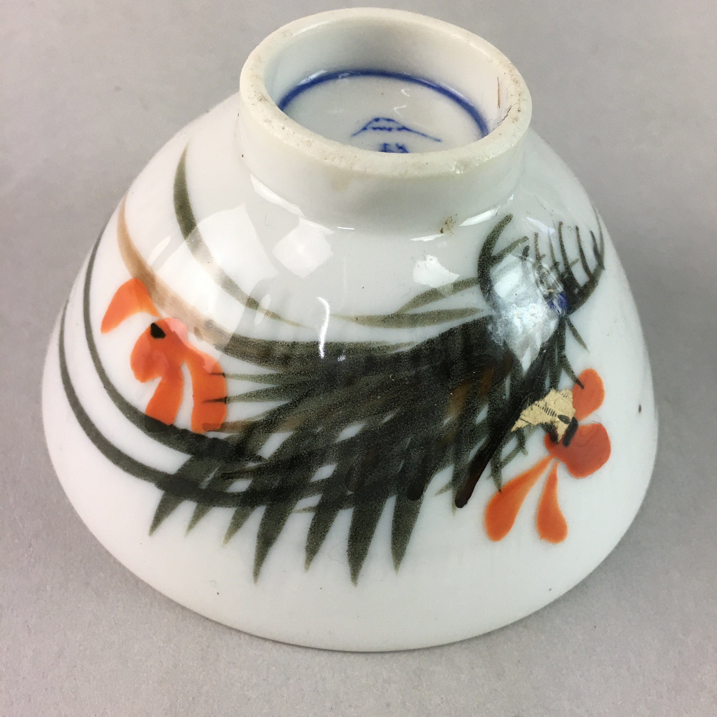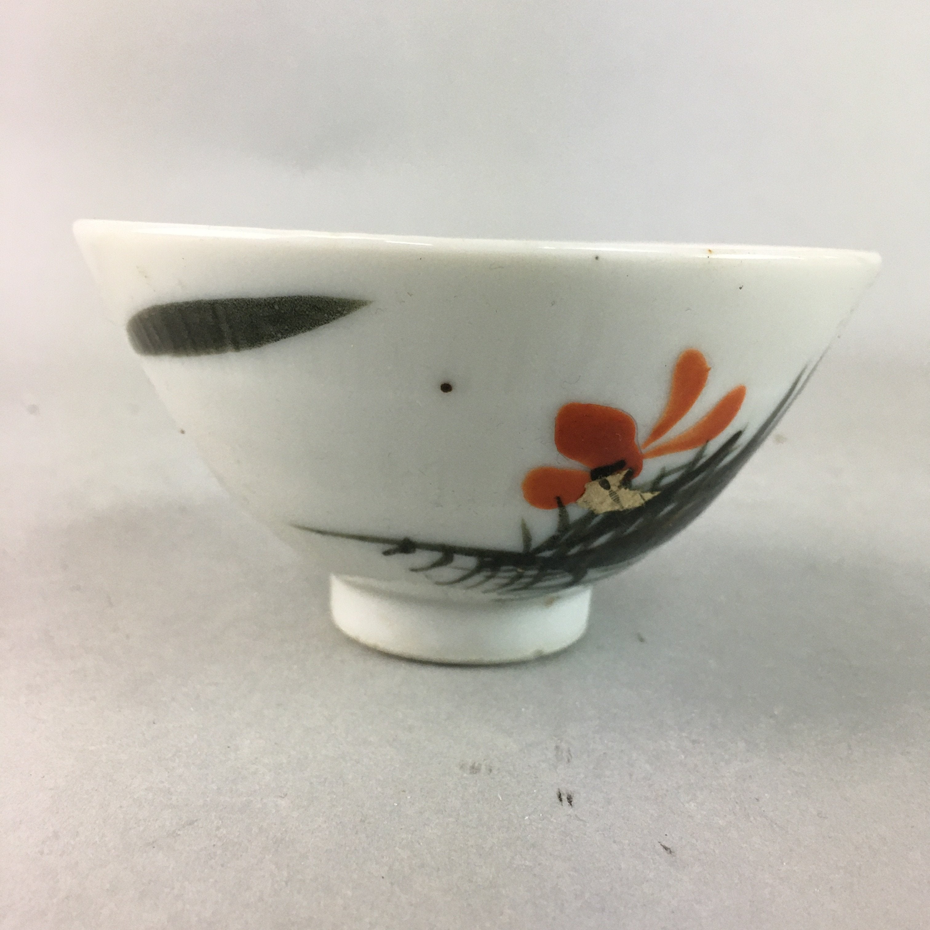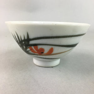 Japanese Porcelain Rice Bowl Vtg Chawan Red Black Flower Leaf PP236