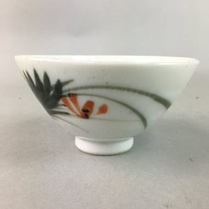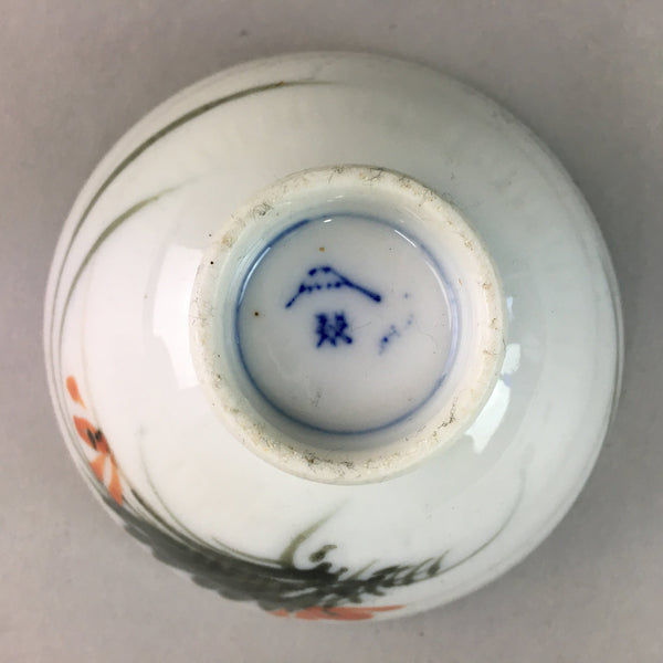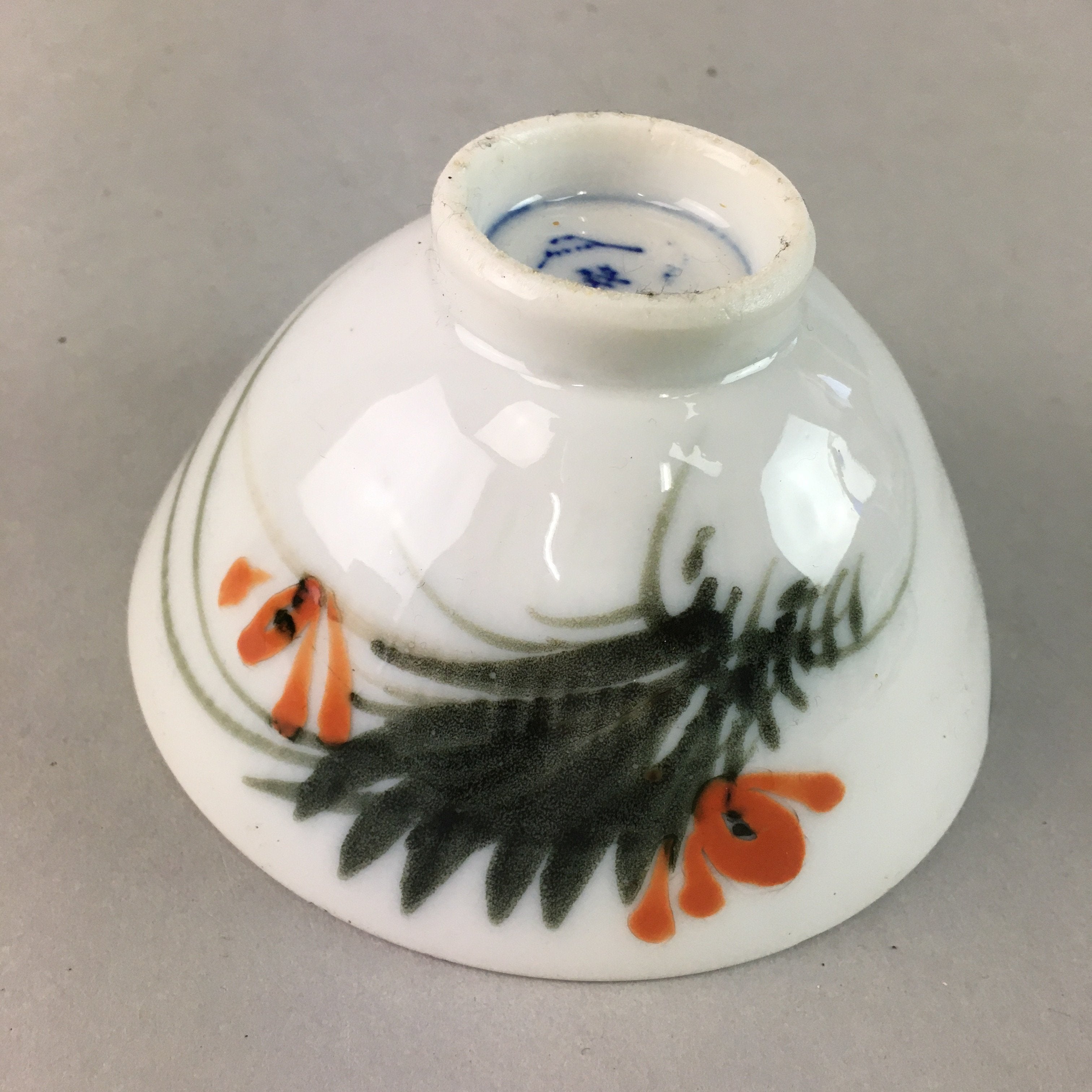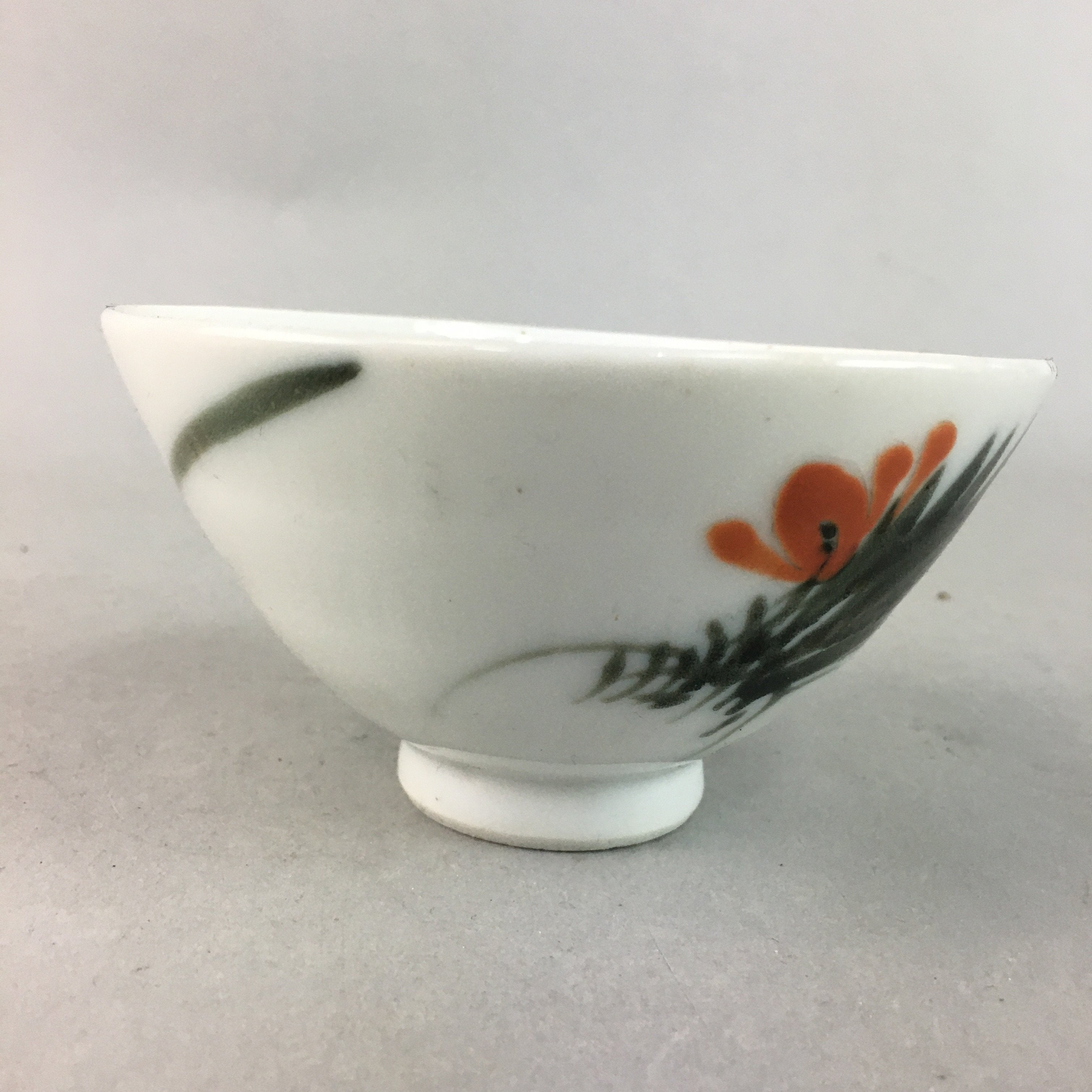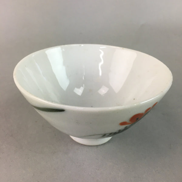 Japanese Porcelain Rice Bowl Vtg Chawan Red Black Flower Leaf PP237
