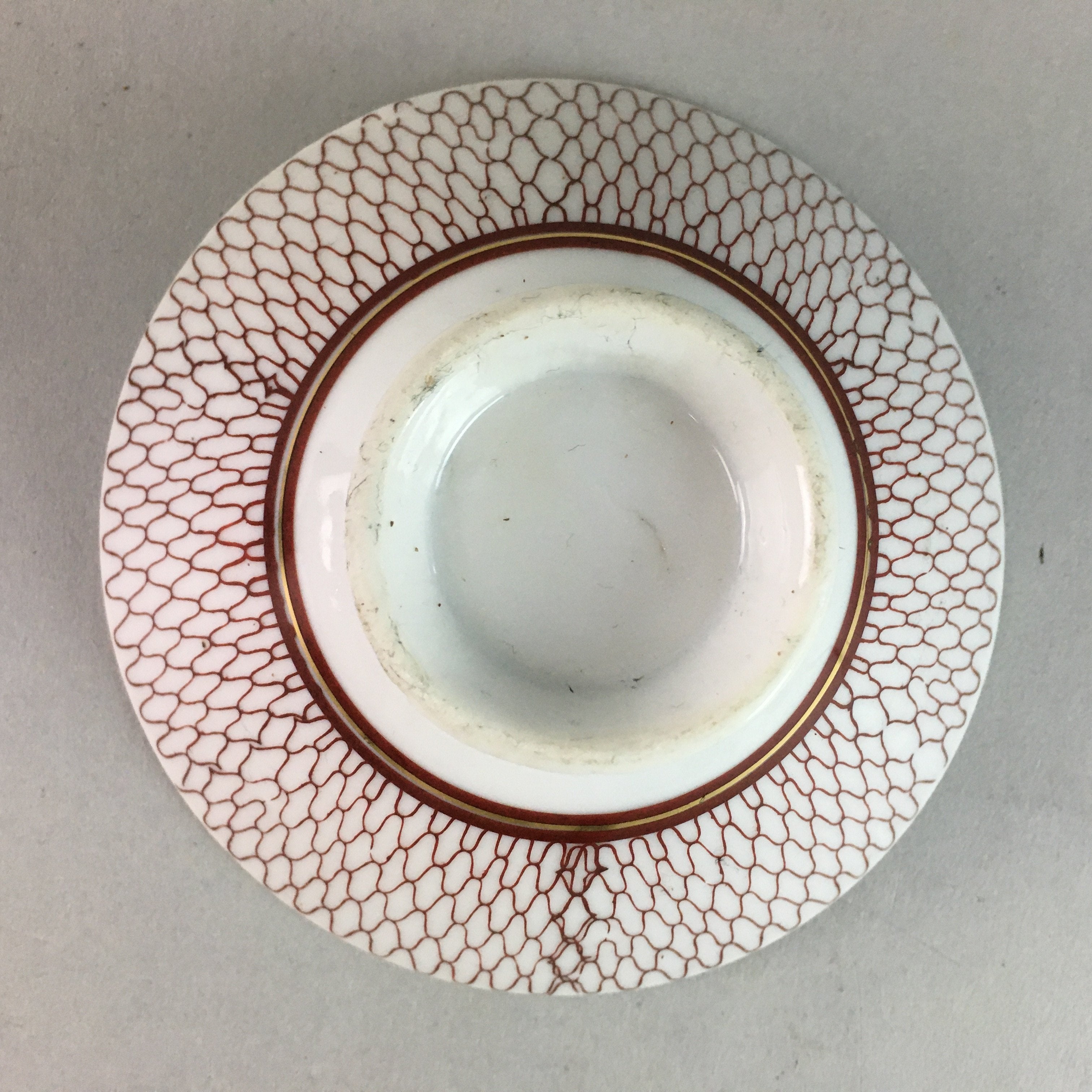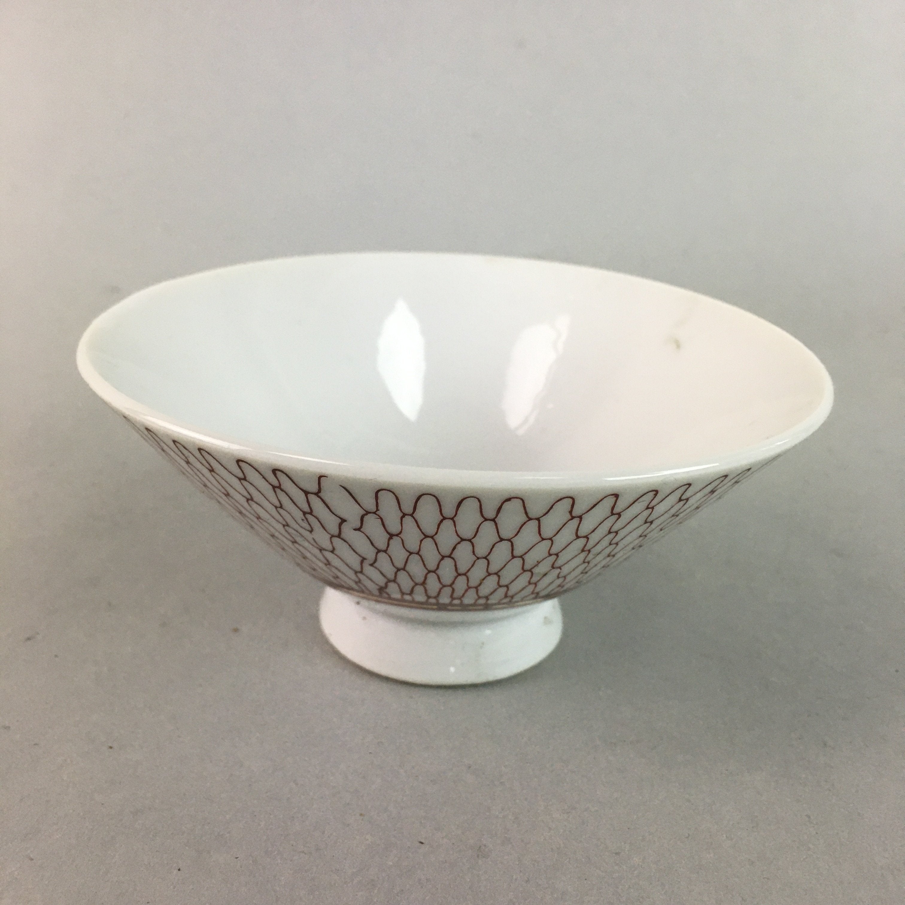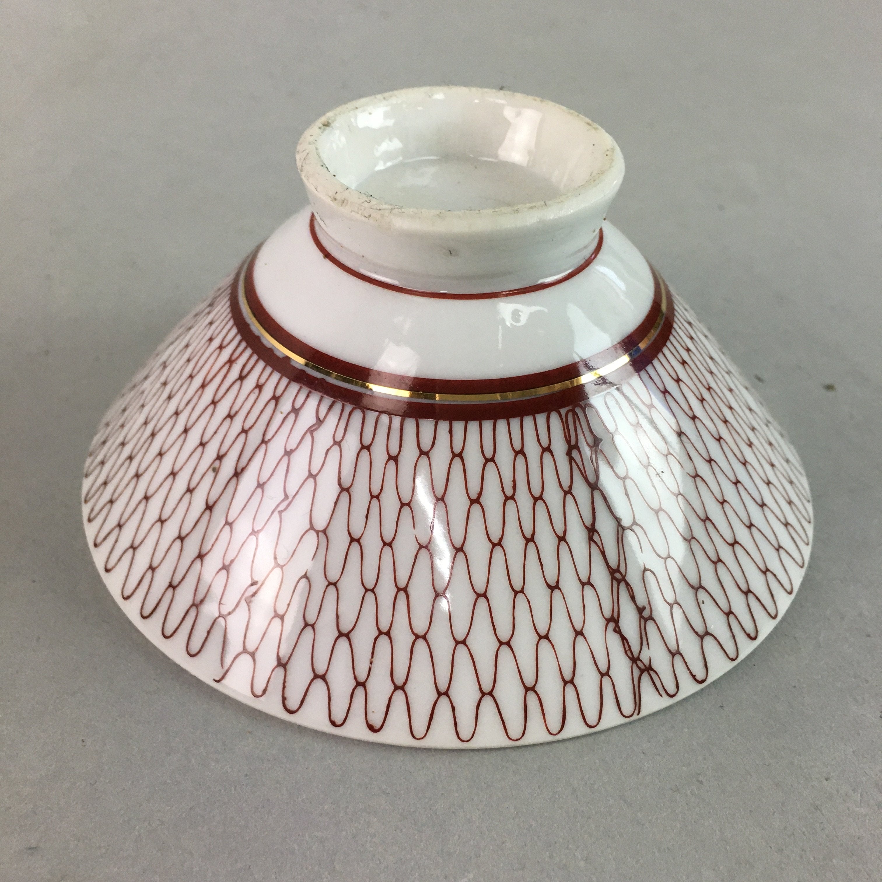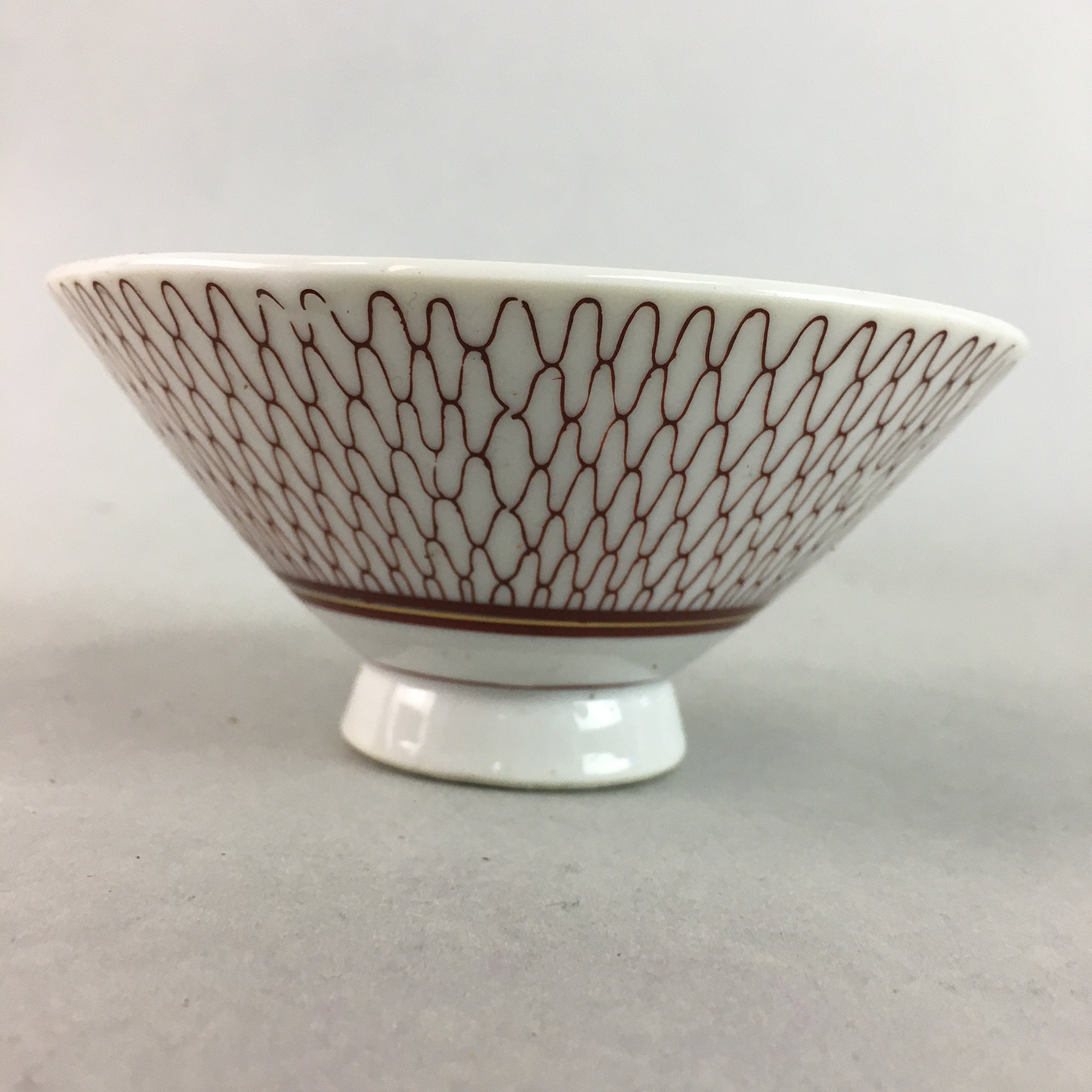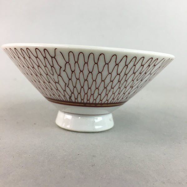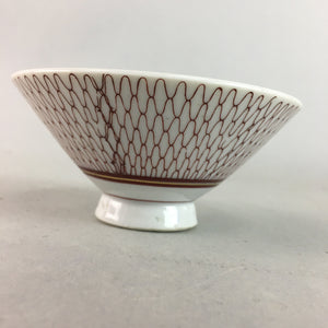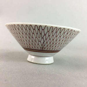 Japanese Porcelain Rice Bowl Vtg Chawan Red Geometric Net Pattern PP183