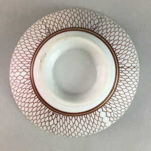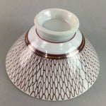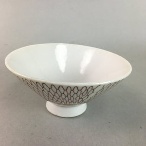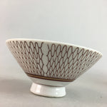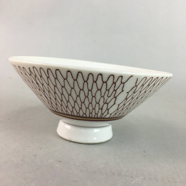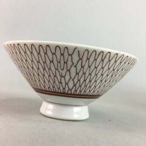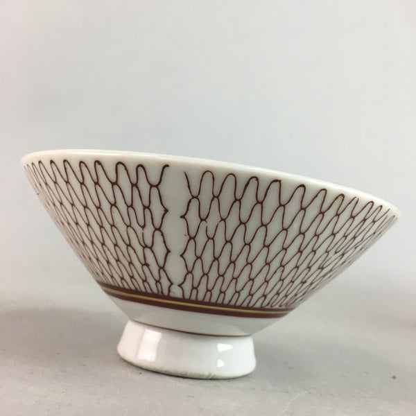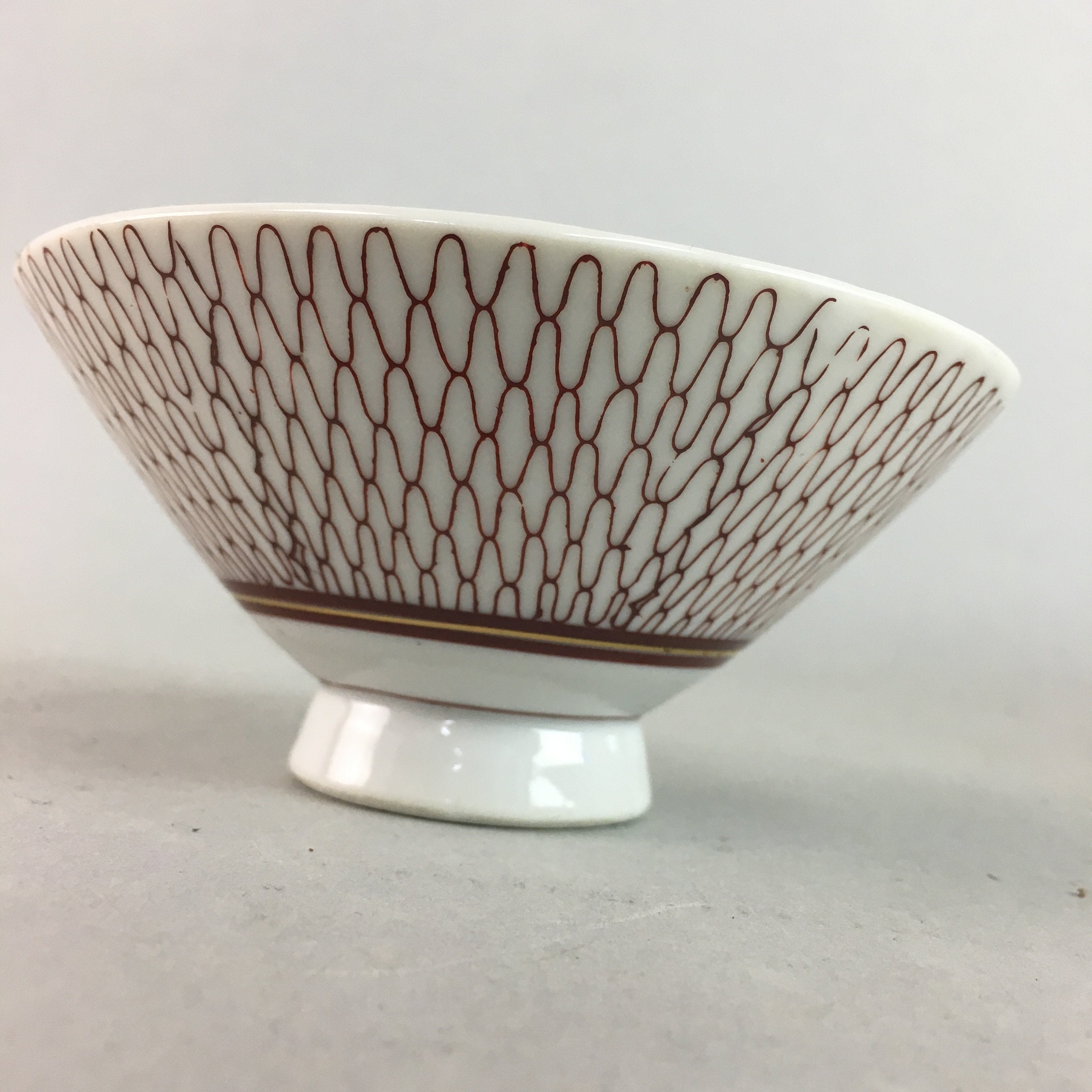 Japanese Porcelain Rice Bowl Vtg Chawan Red Geometric Net Pattern PP186