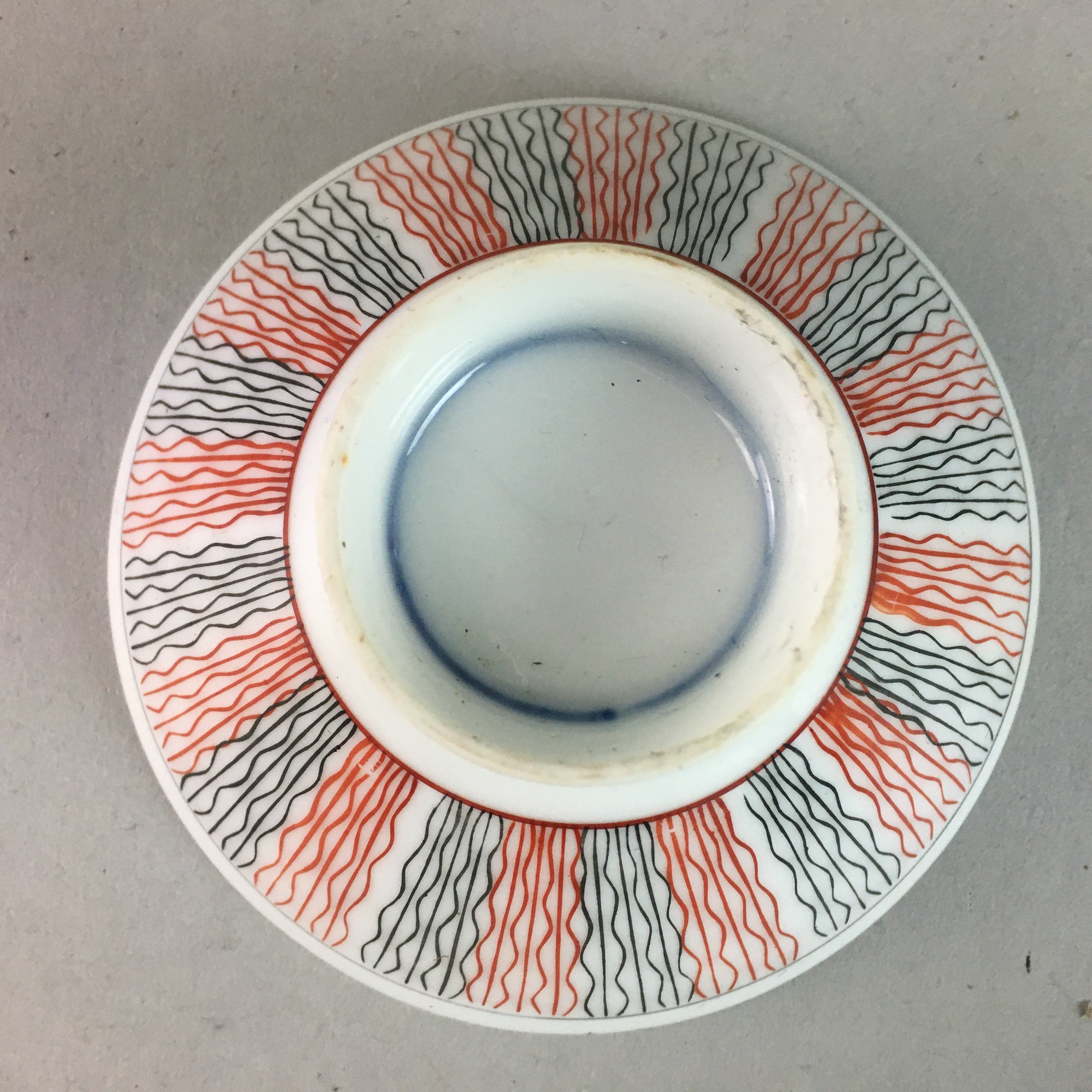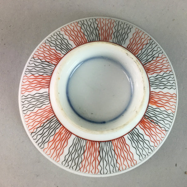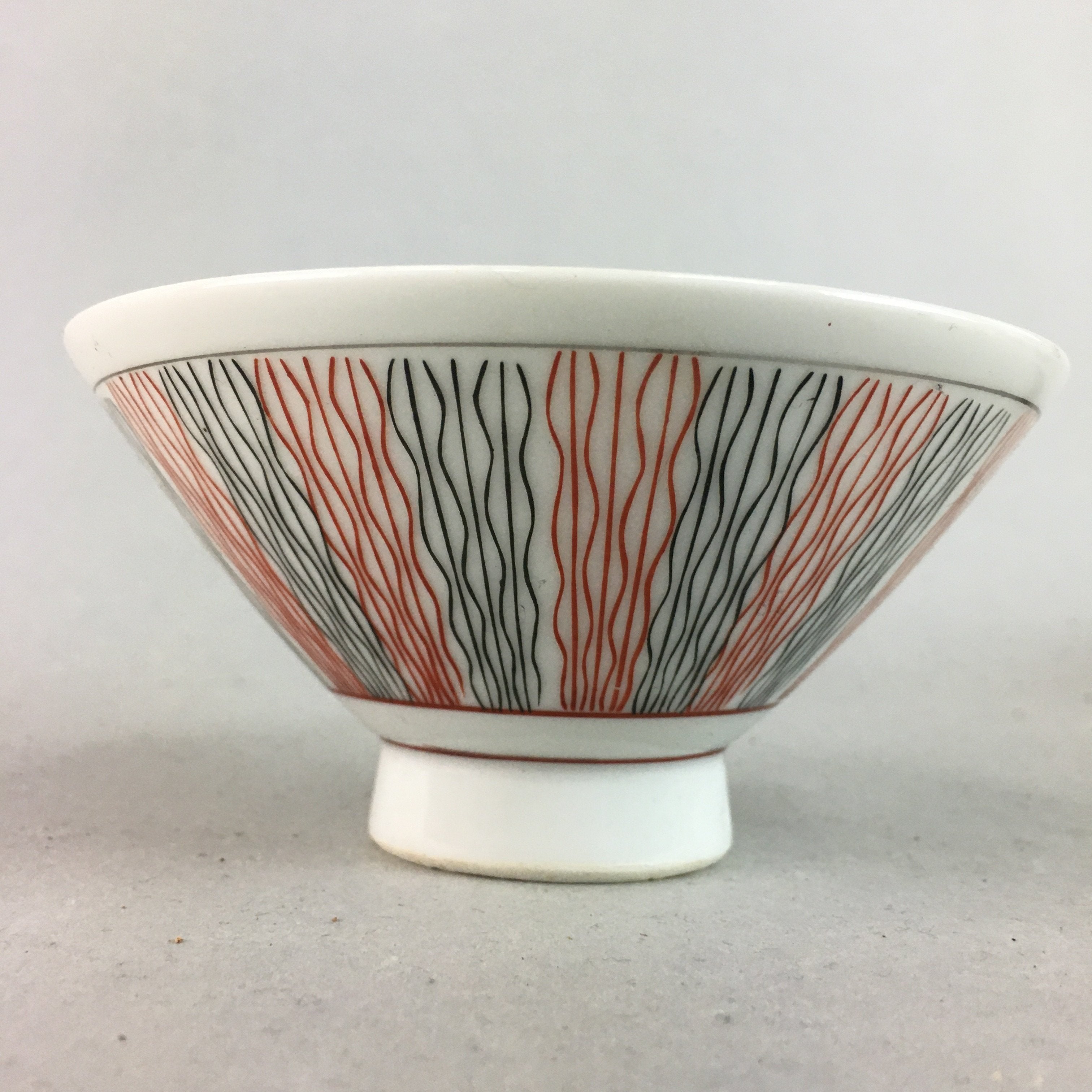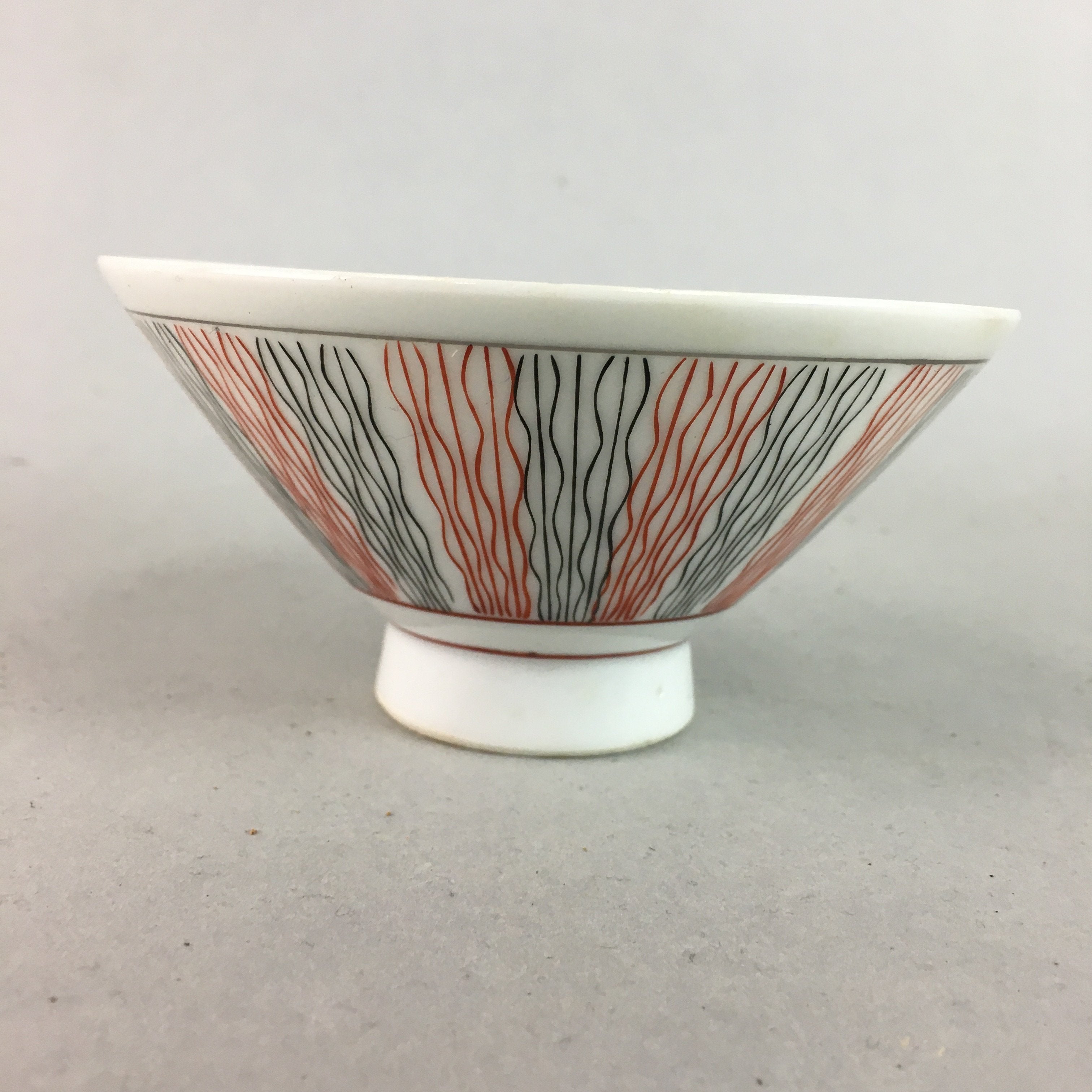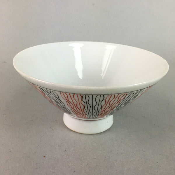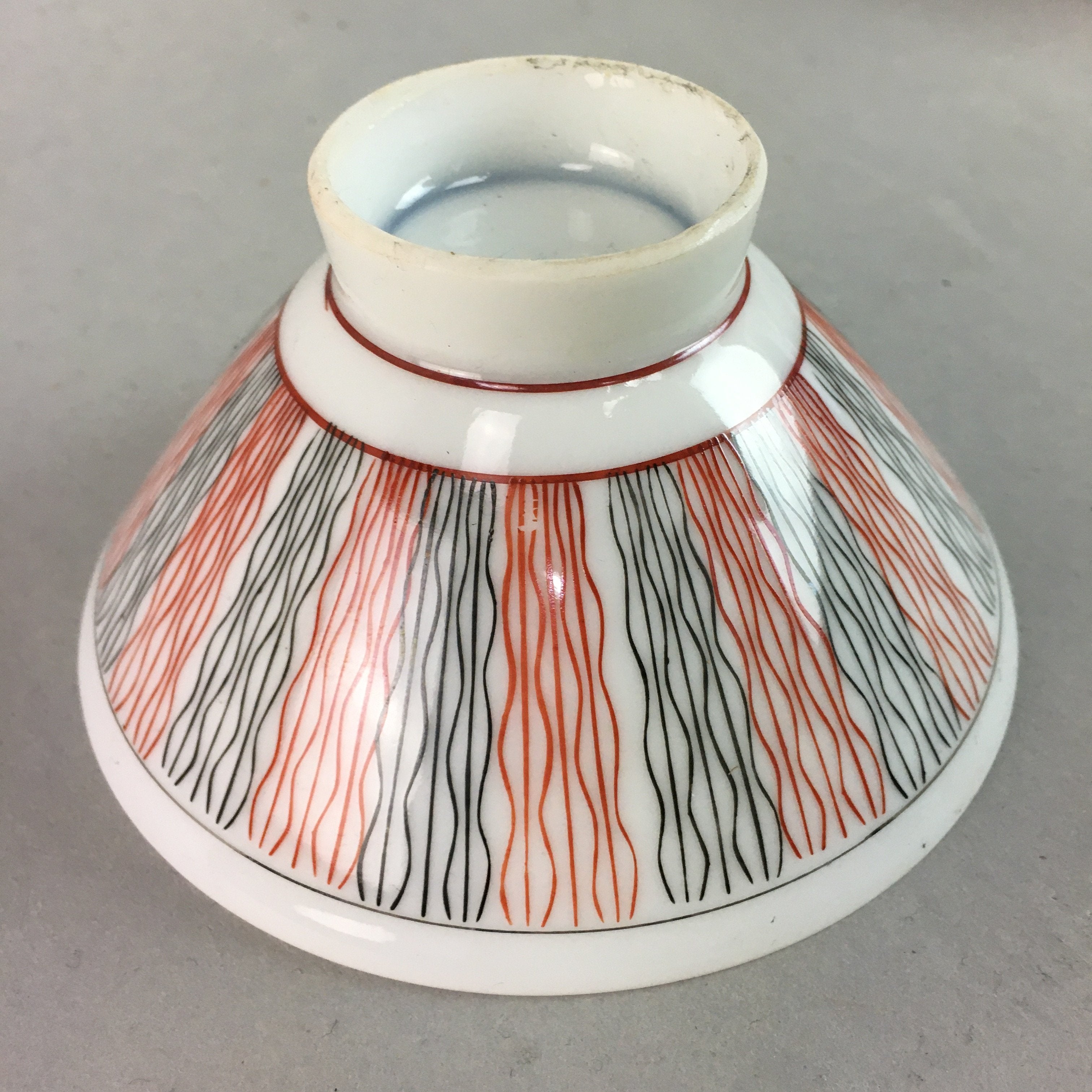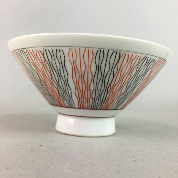 Japanese Porcelain Rice Bowl Vtg Chawan Wavy Line Seaweed Red Black PP202