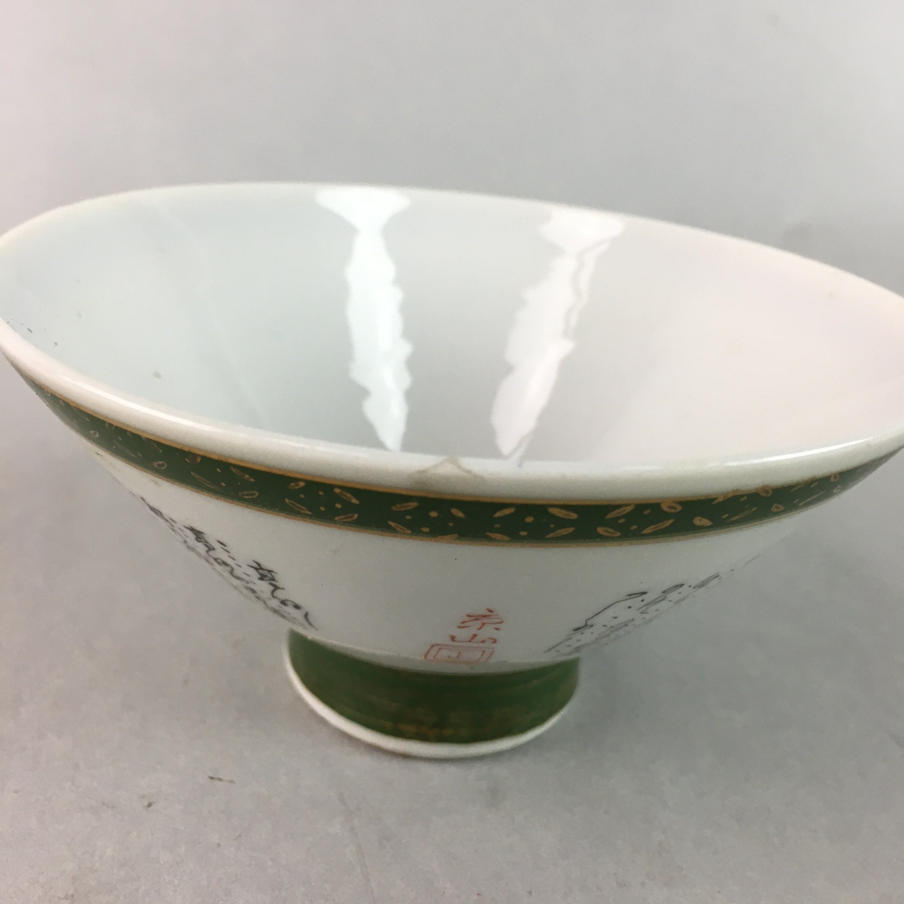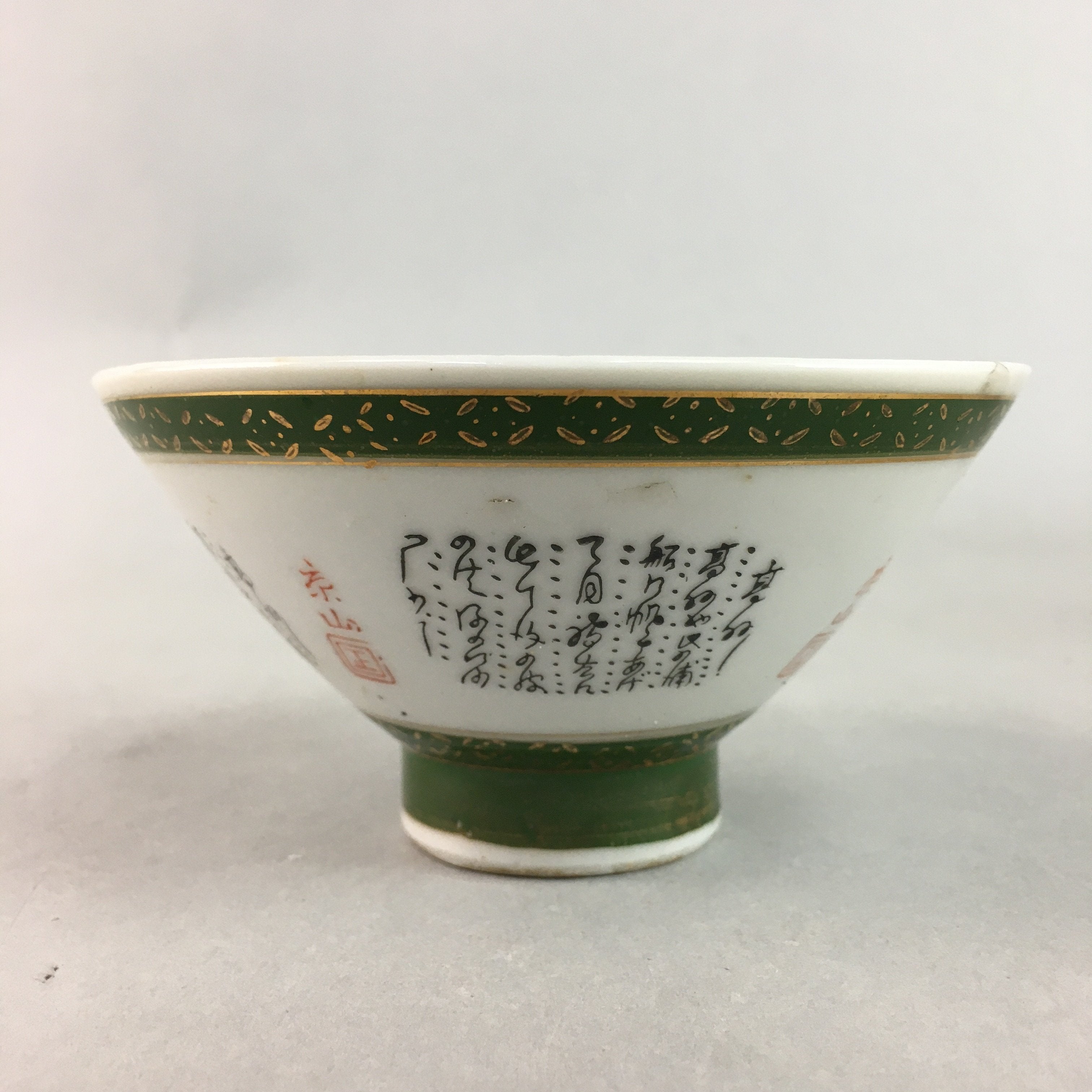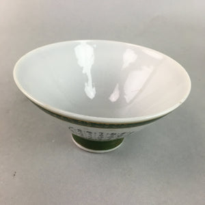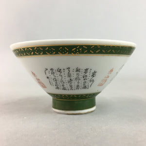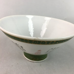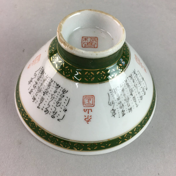Japanese Porcelain Rice Bowl Vtg Kanji Green Gold Chawan PP156