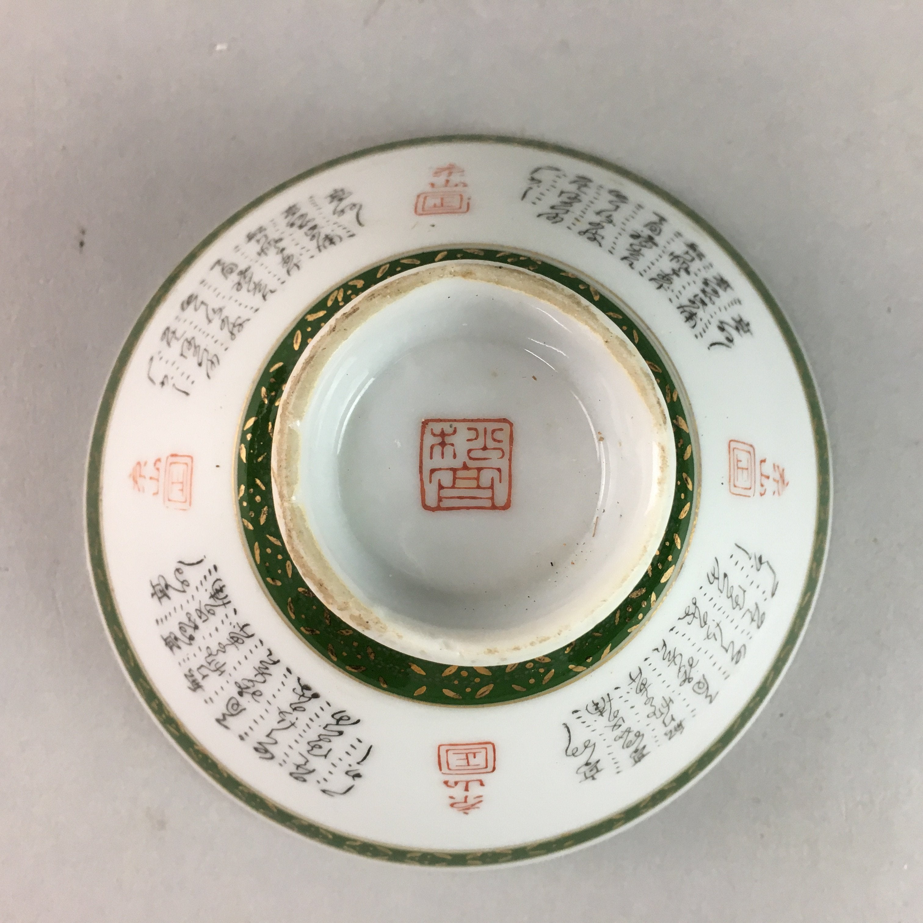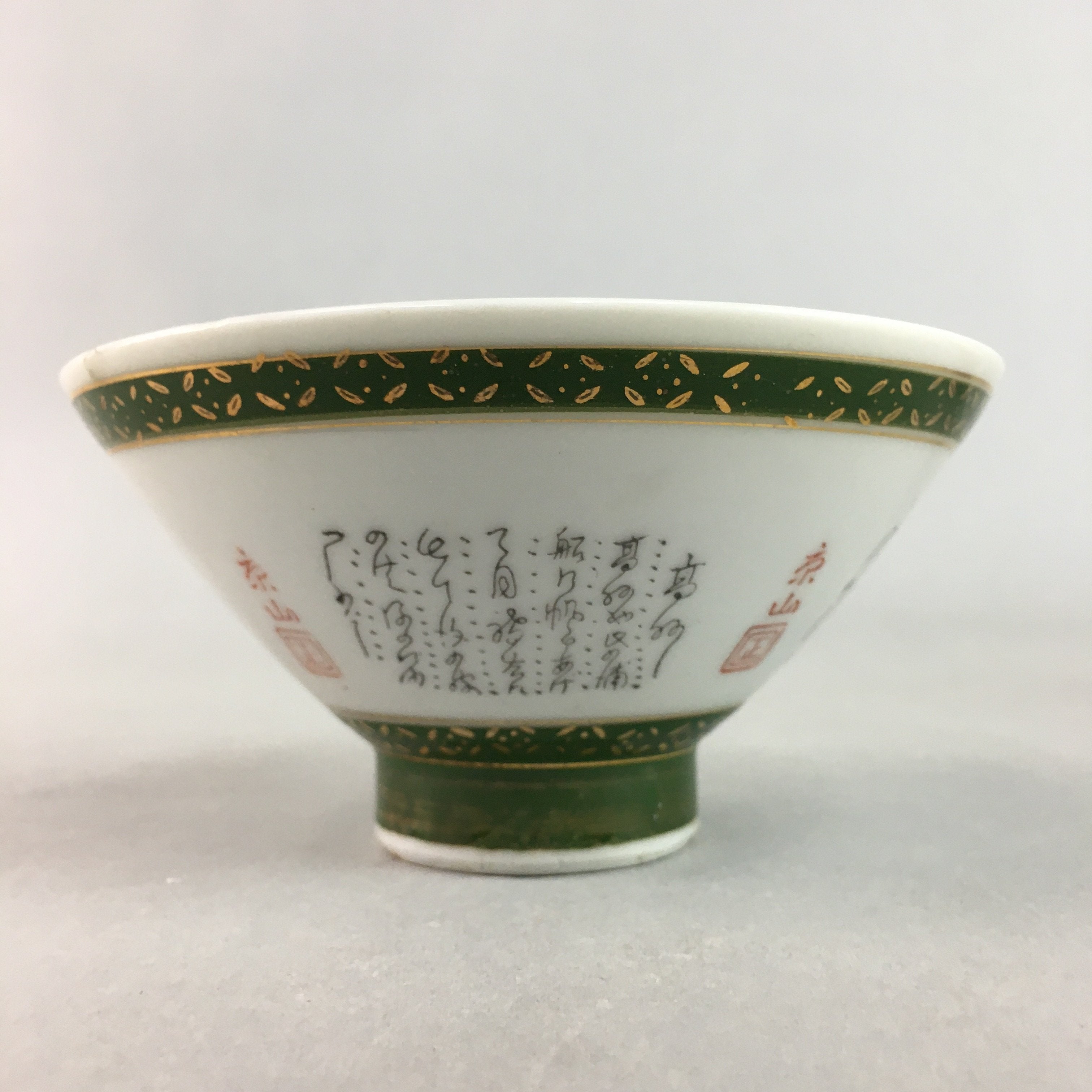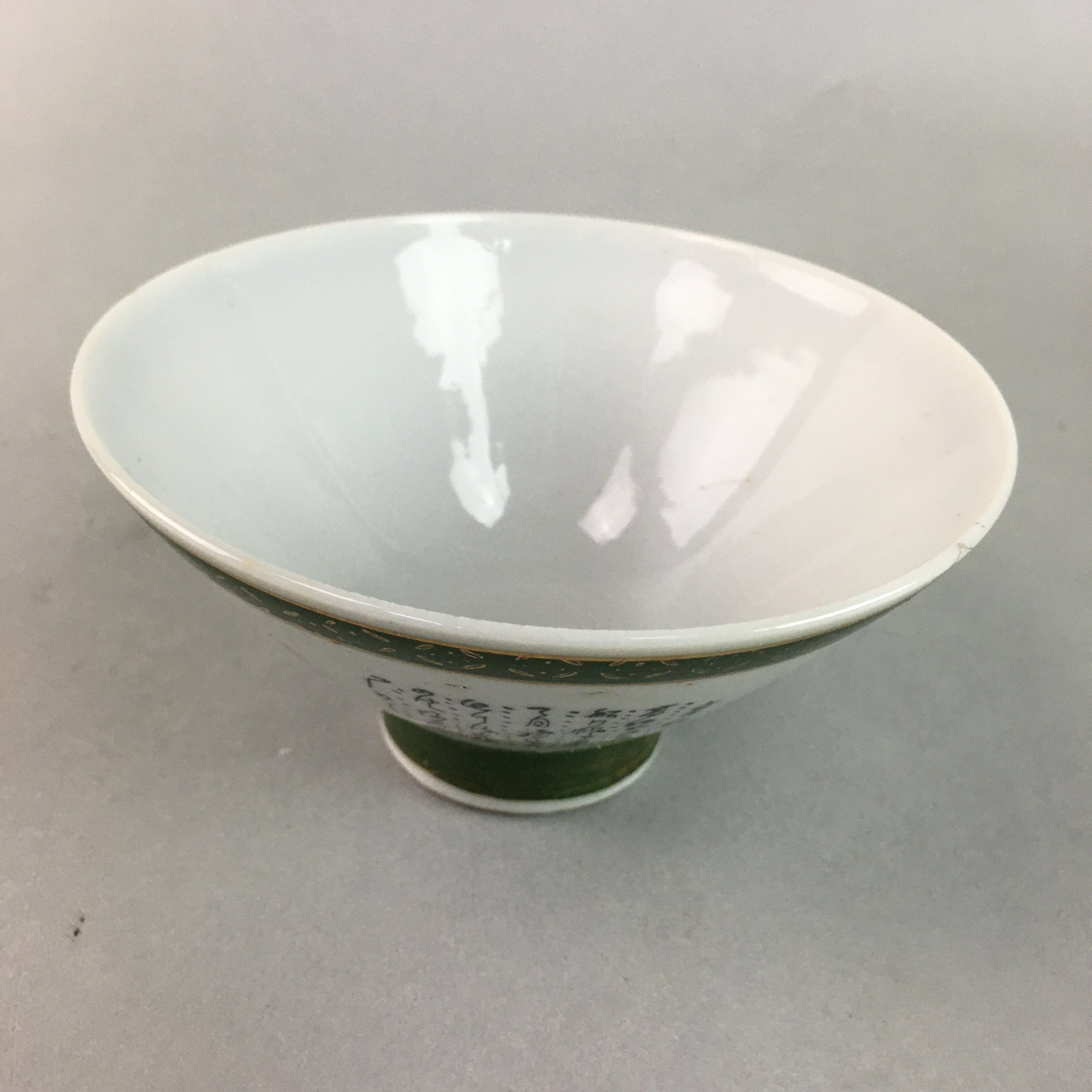 Japanese Porcelain Rice Bowl Vtg Kanji Green Gold Chawan PP156