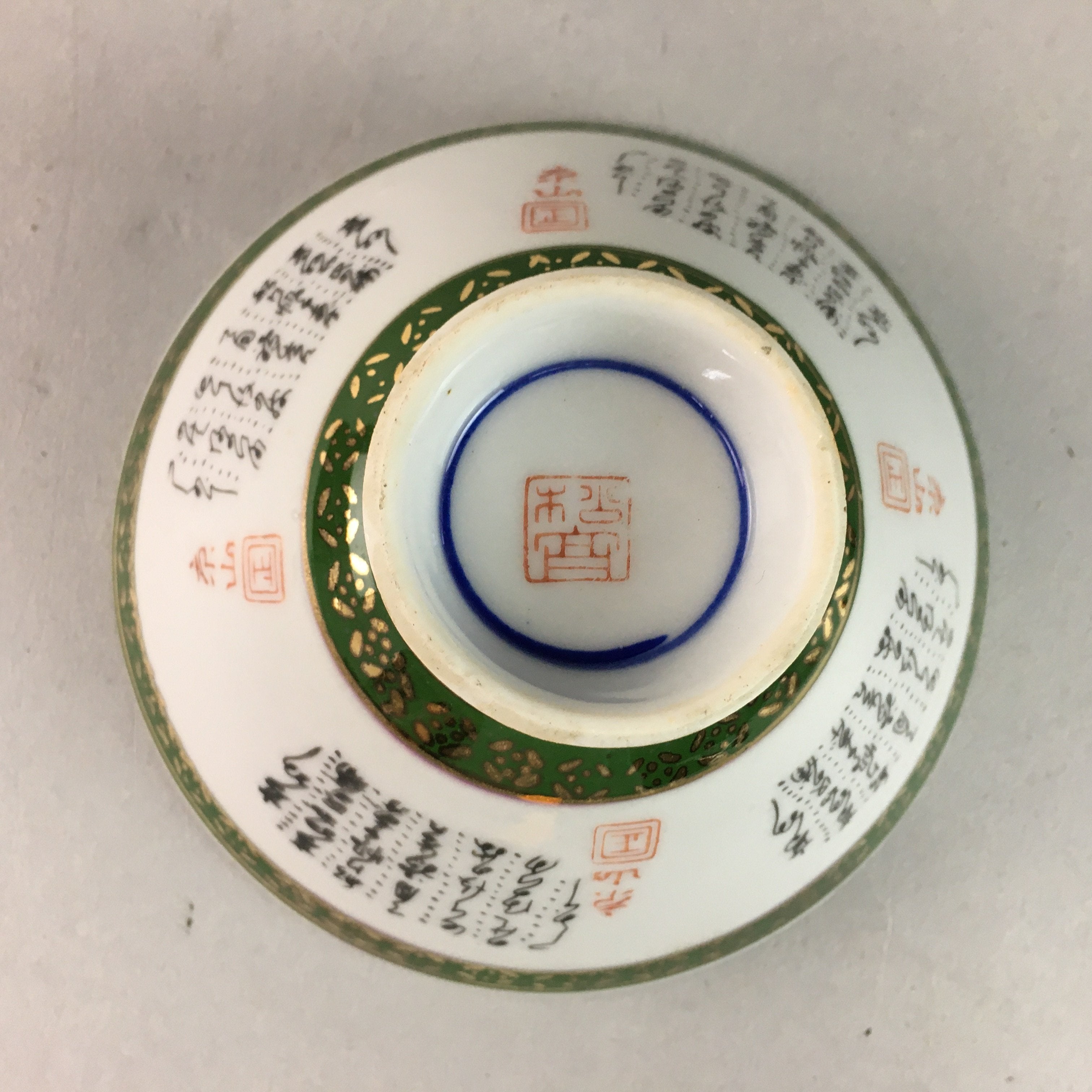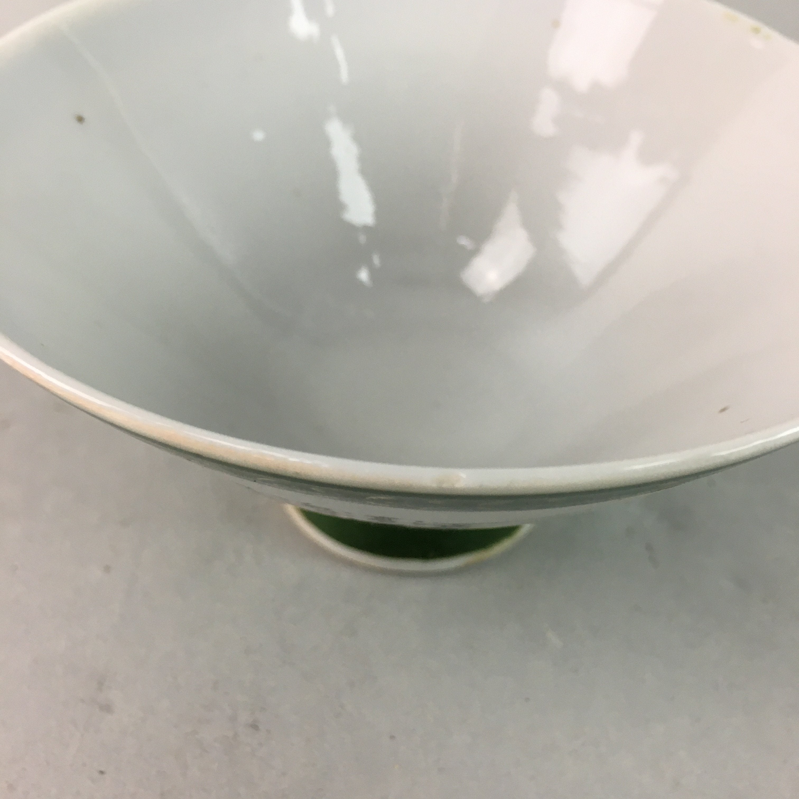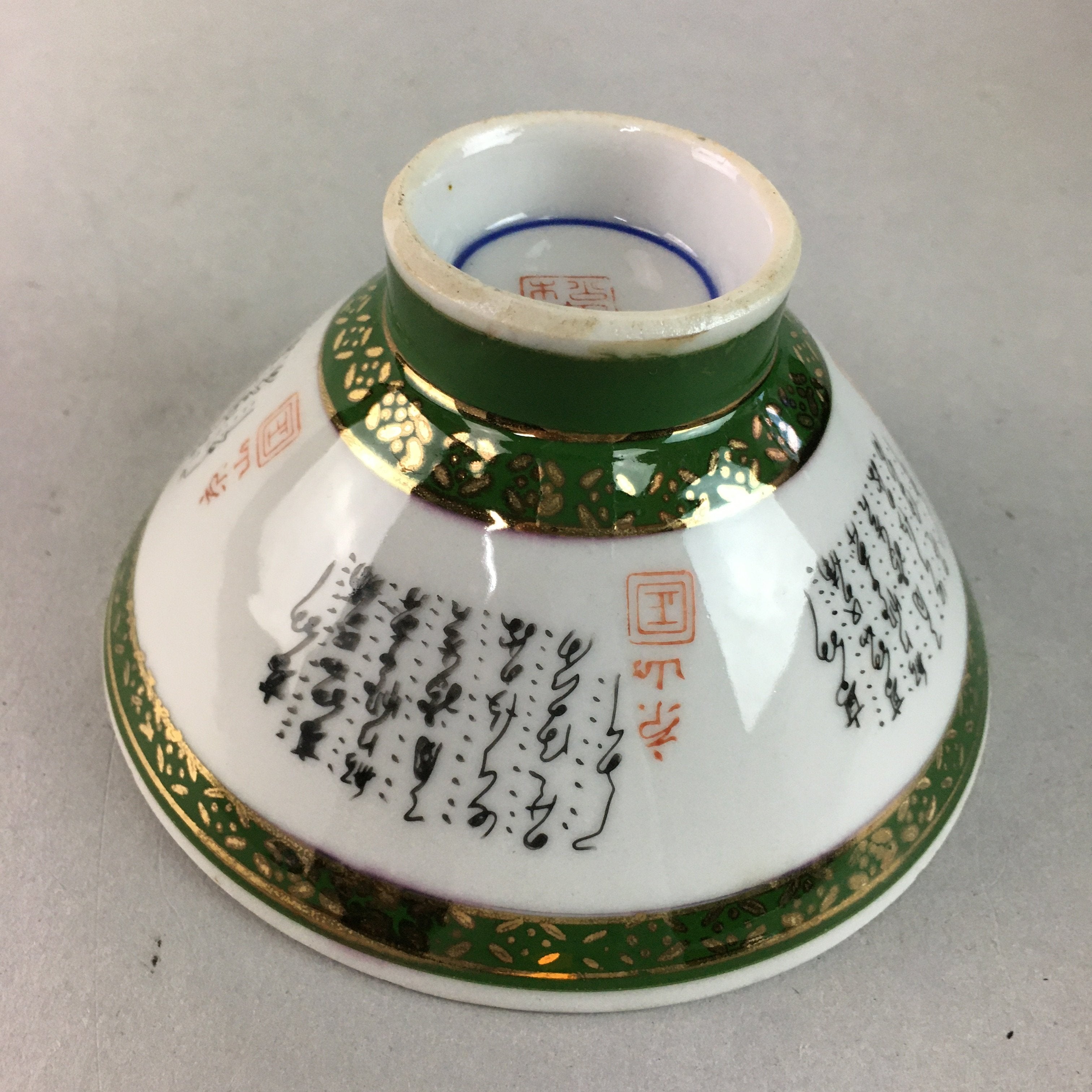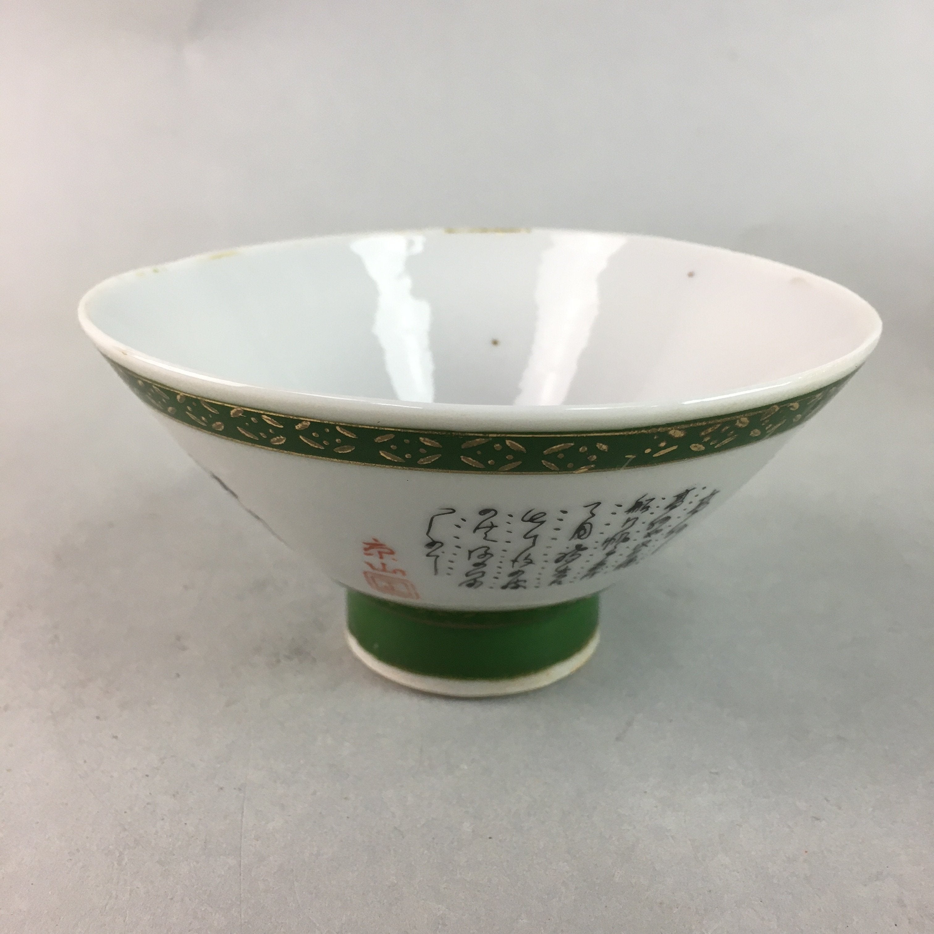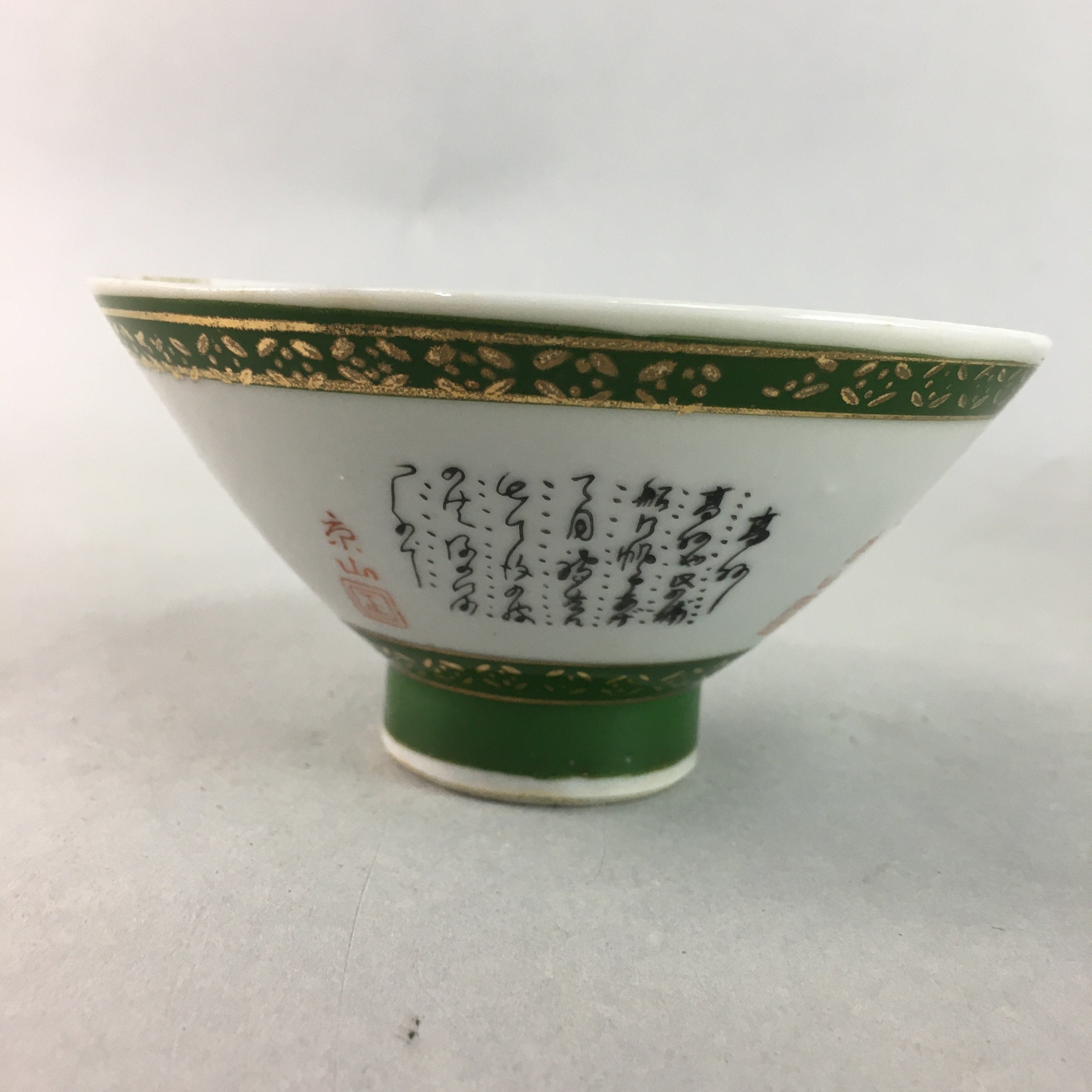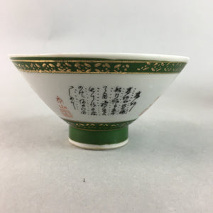 Japanese Porcelain Rice Bowl Vtg Kanji Green Gold Chawan PP159
