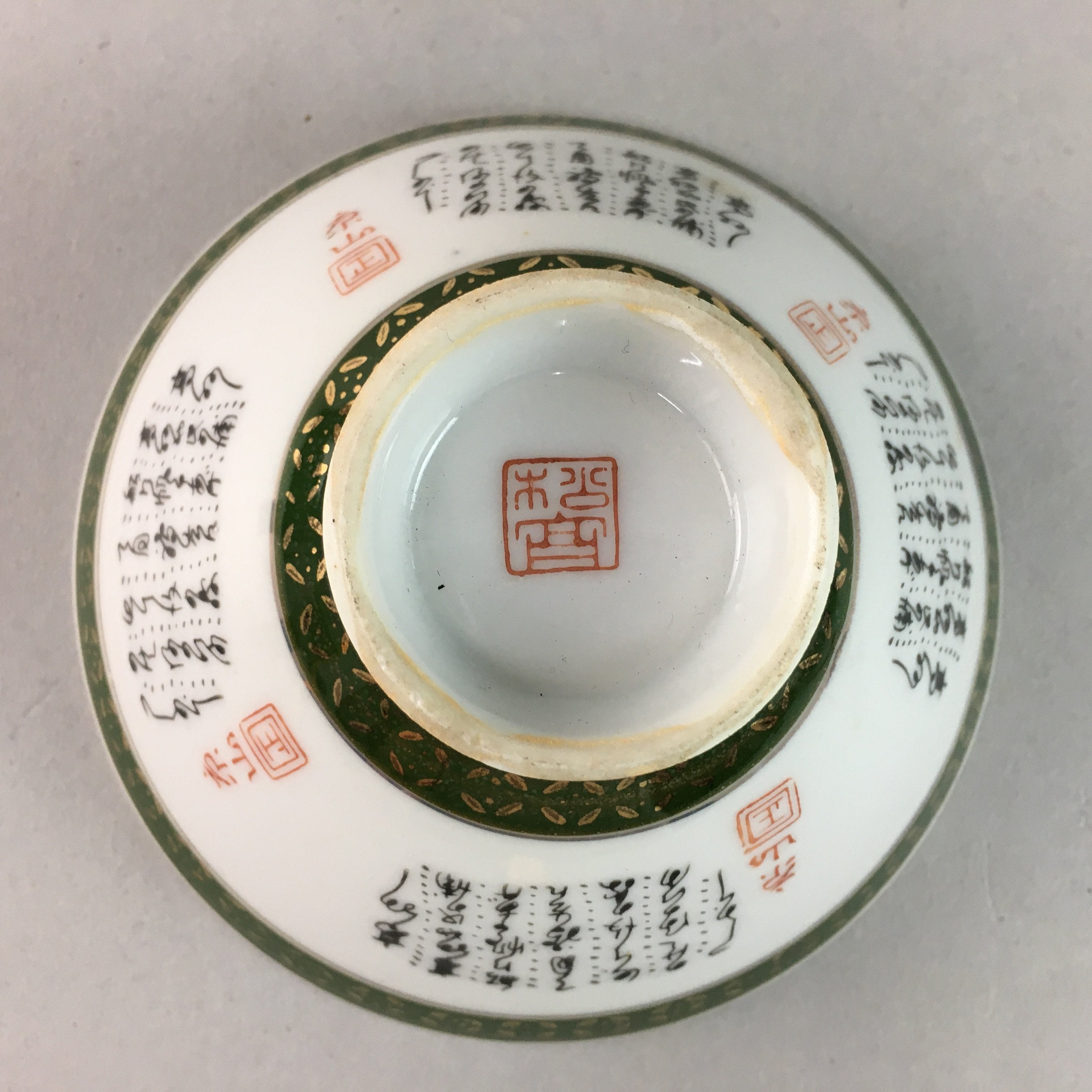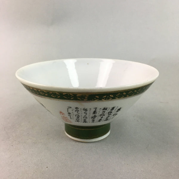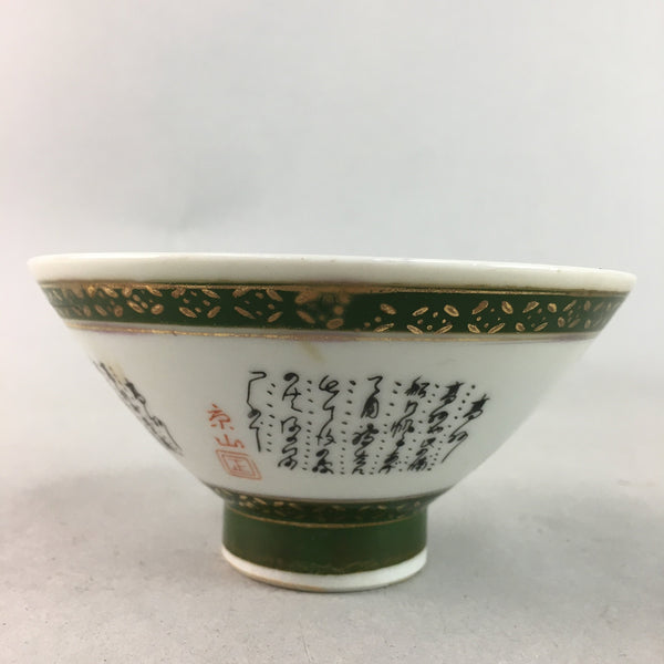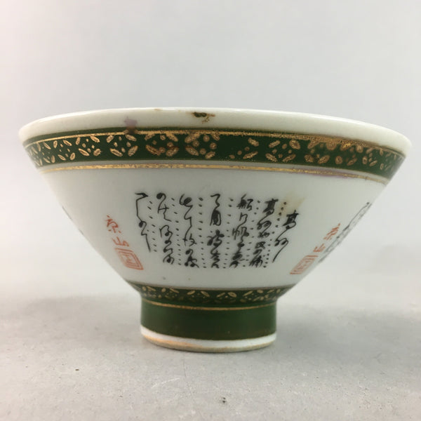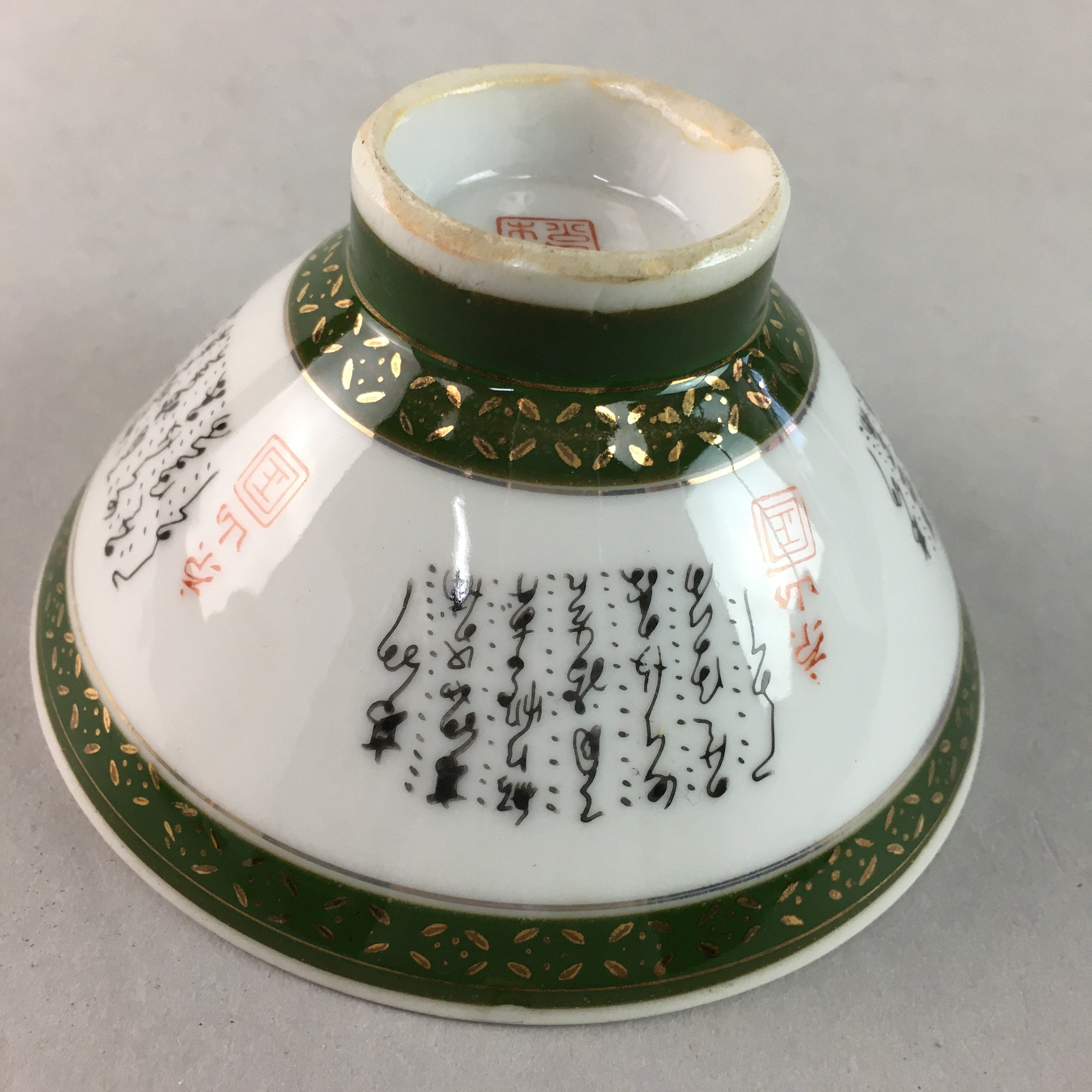 Japanese Porcelain Rice Bowl Vtg Kanji Green Gold Chawan PP164
