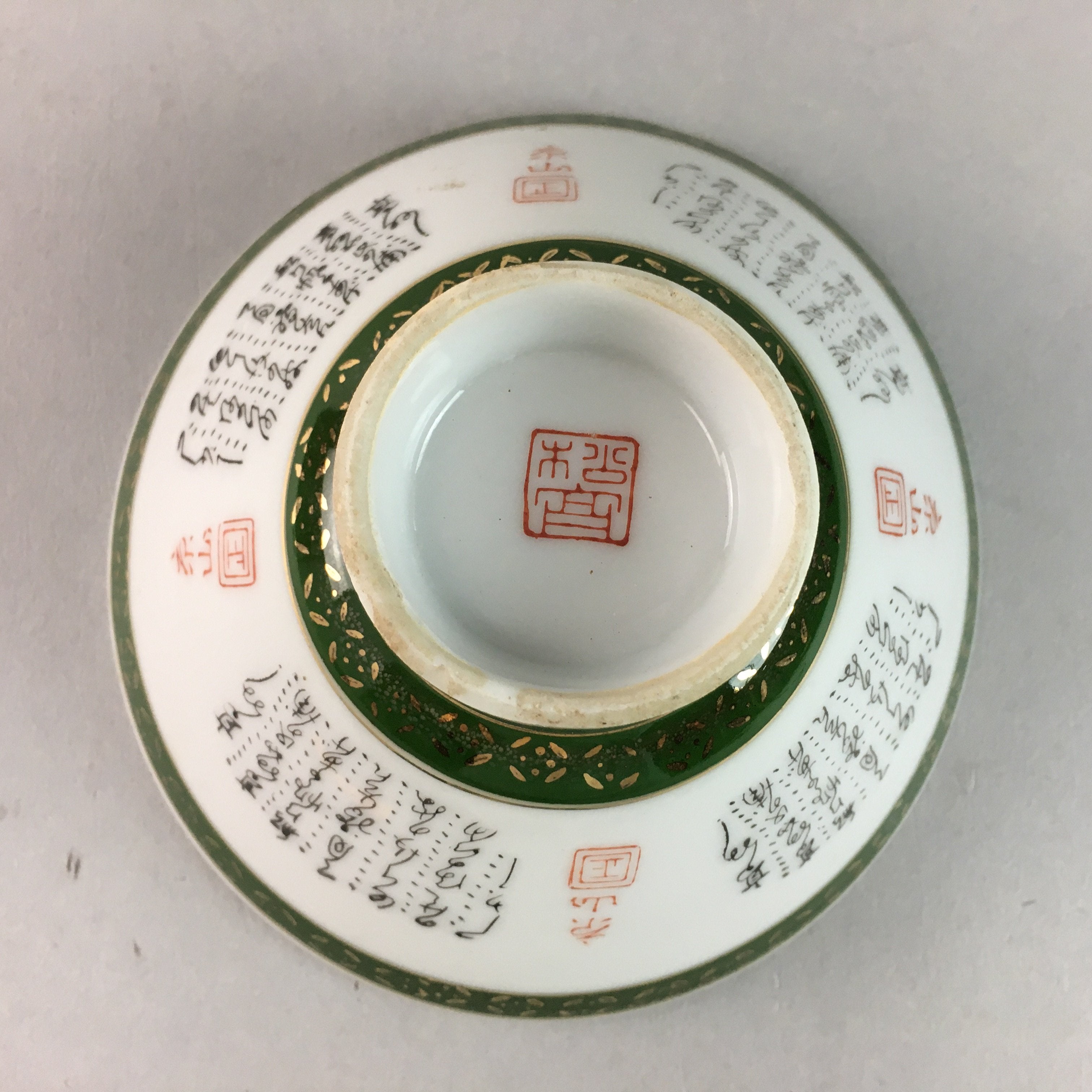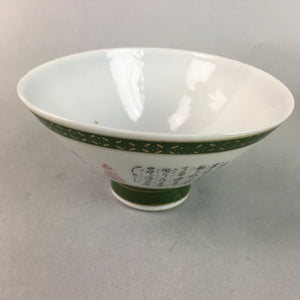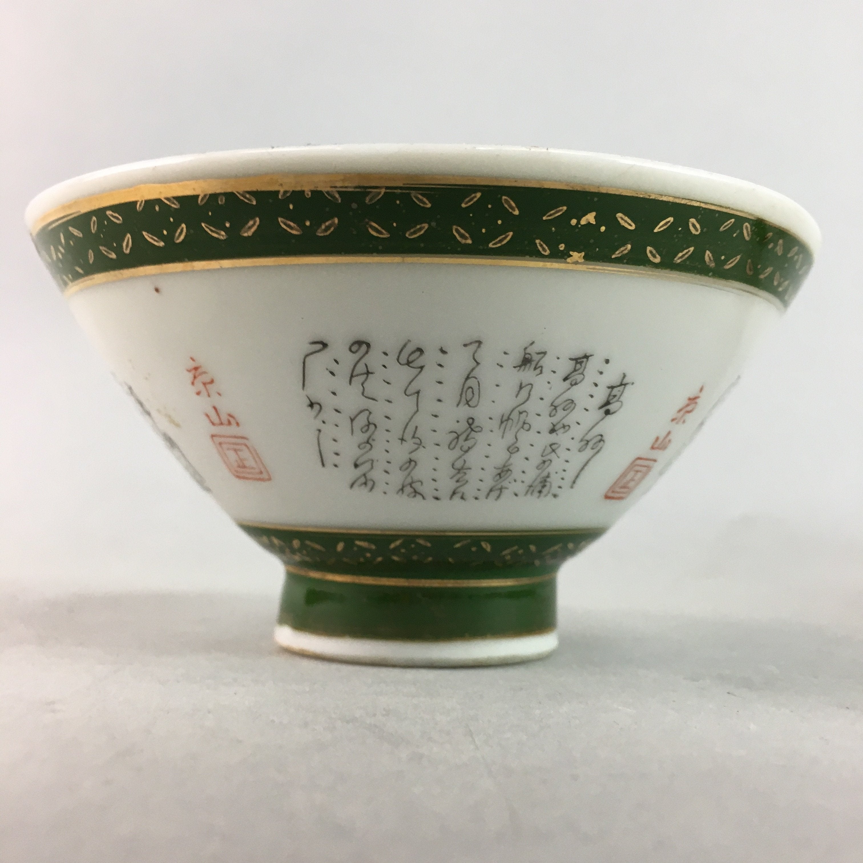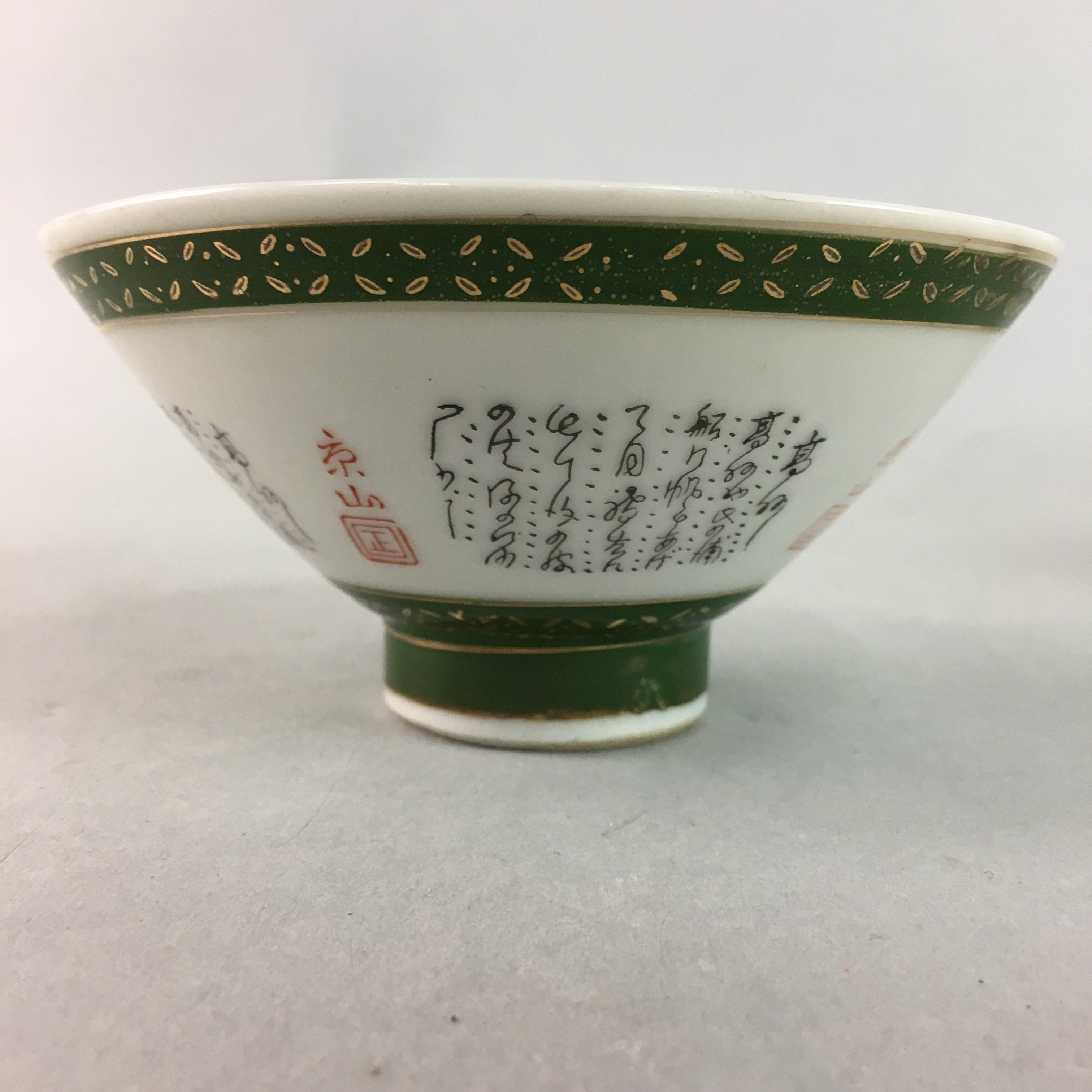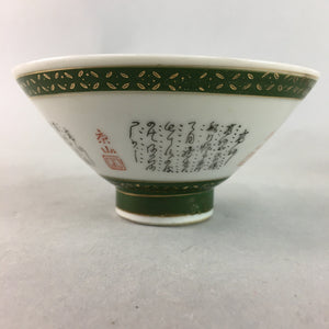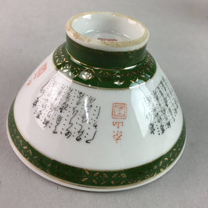 Japanese Porcelain Rice Bowl Vtg Kanji Green Gold Chawan PP171