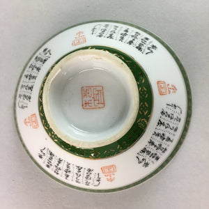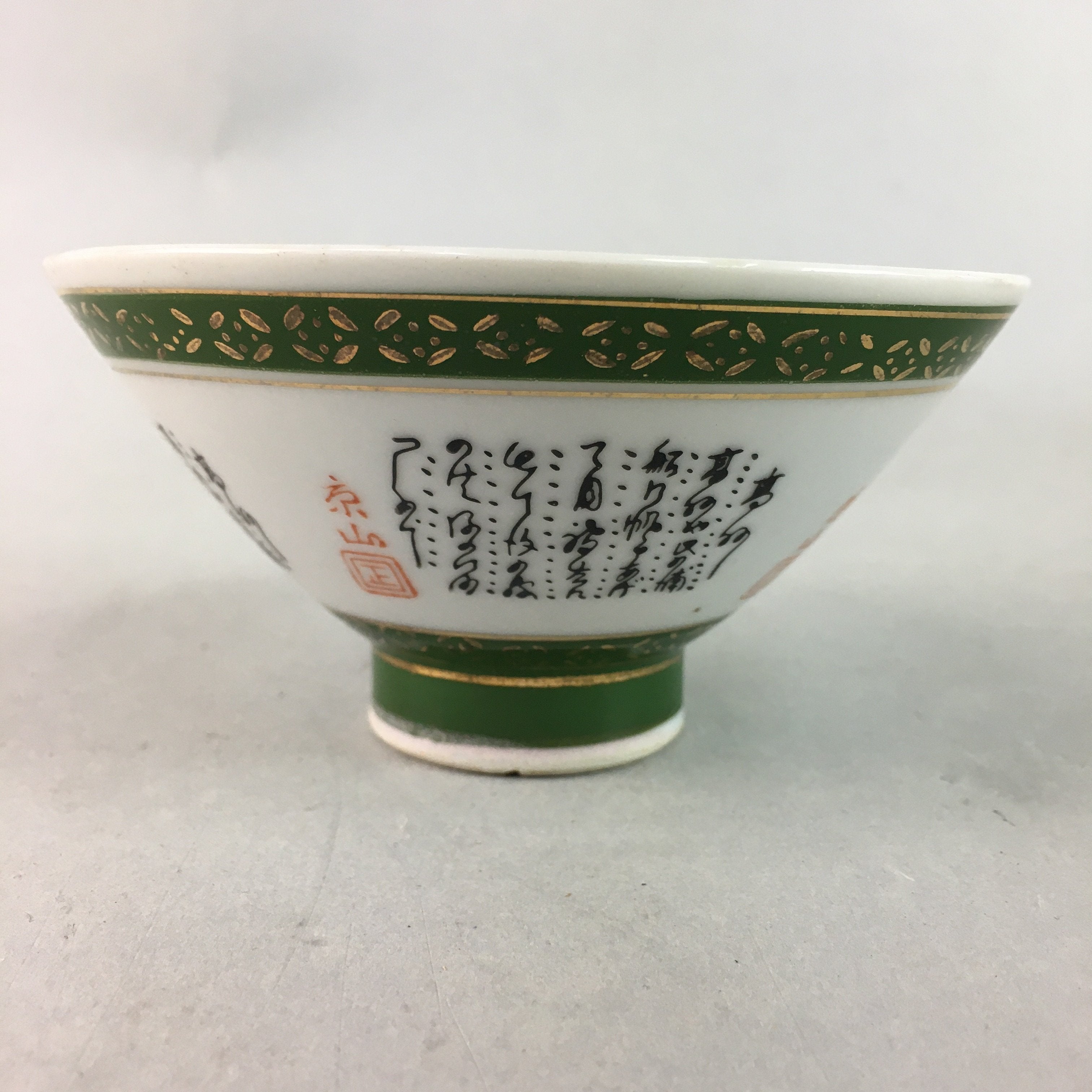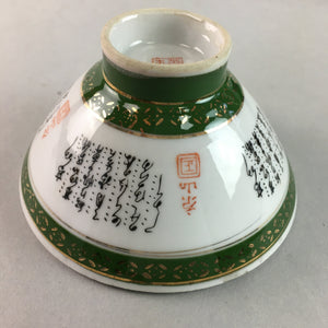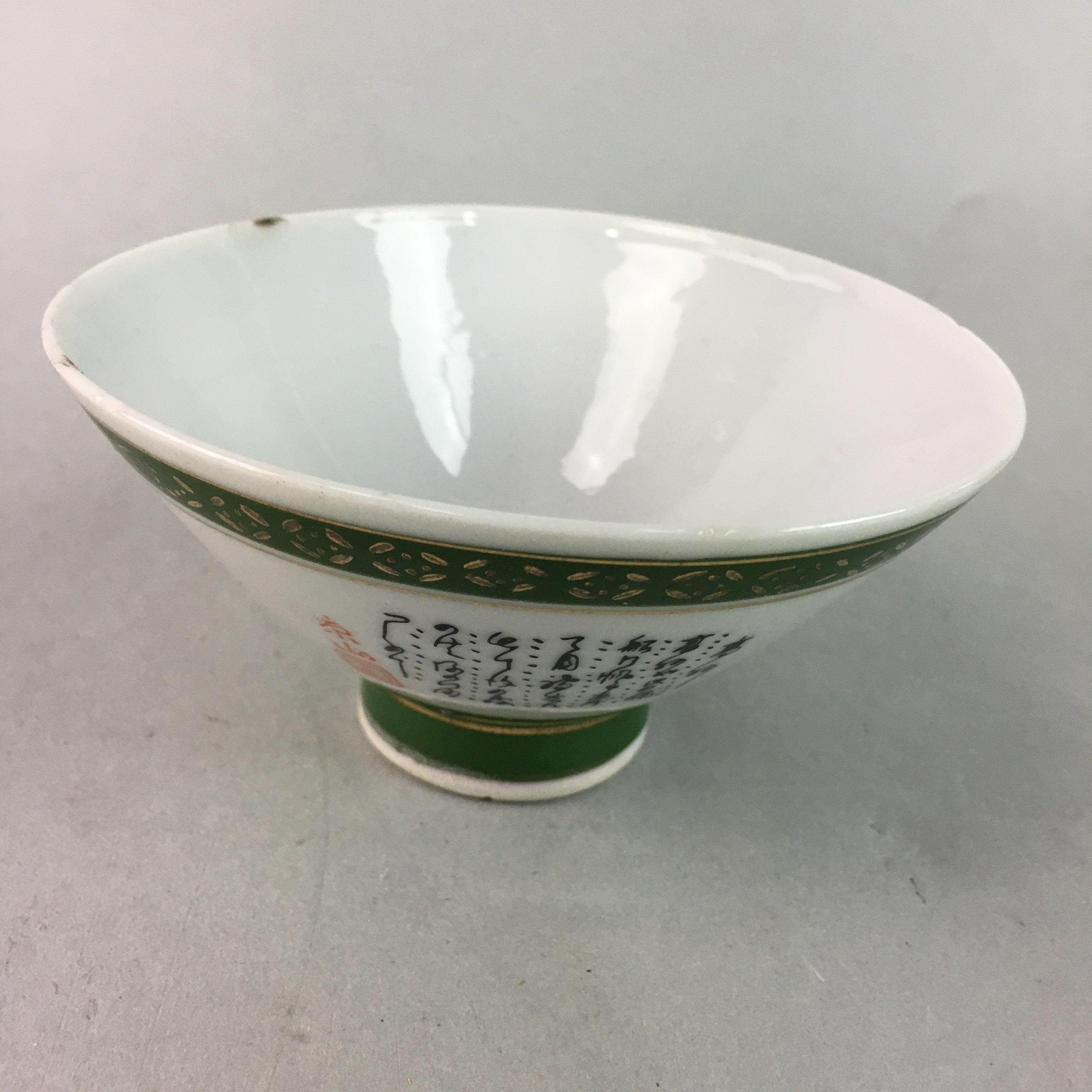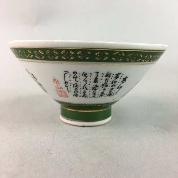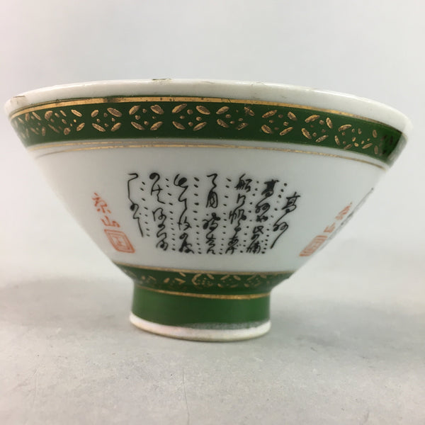 Japanese Porcelain Rice Bowl Vtg Kanji Green Gold Chawan PP173