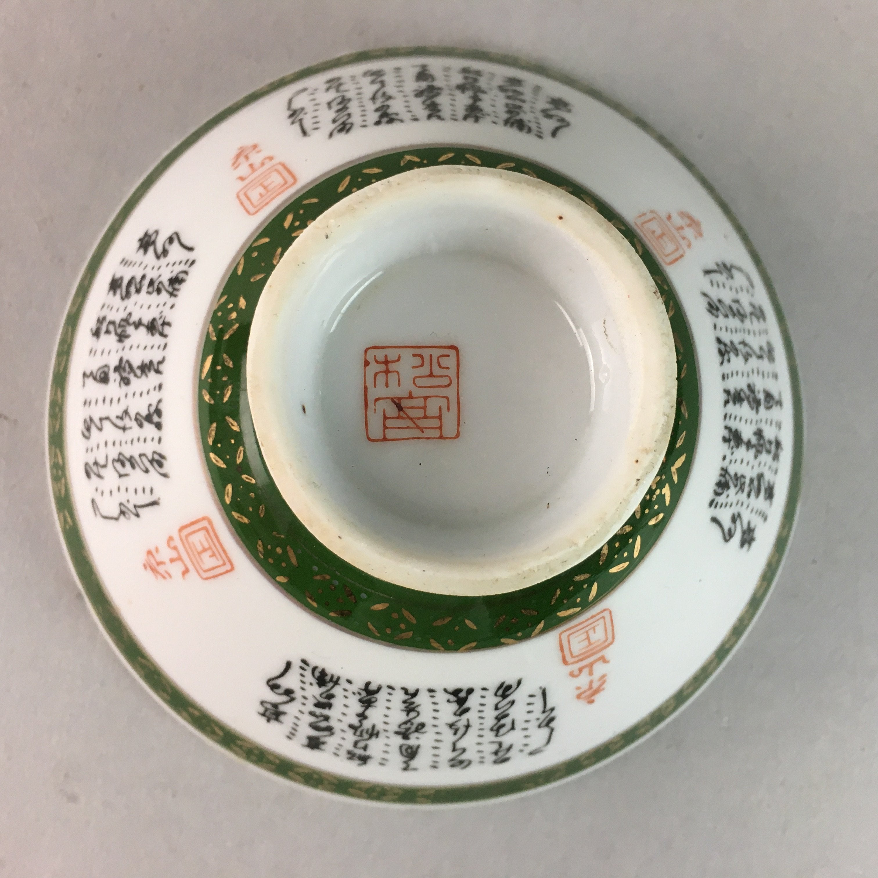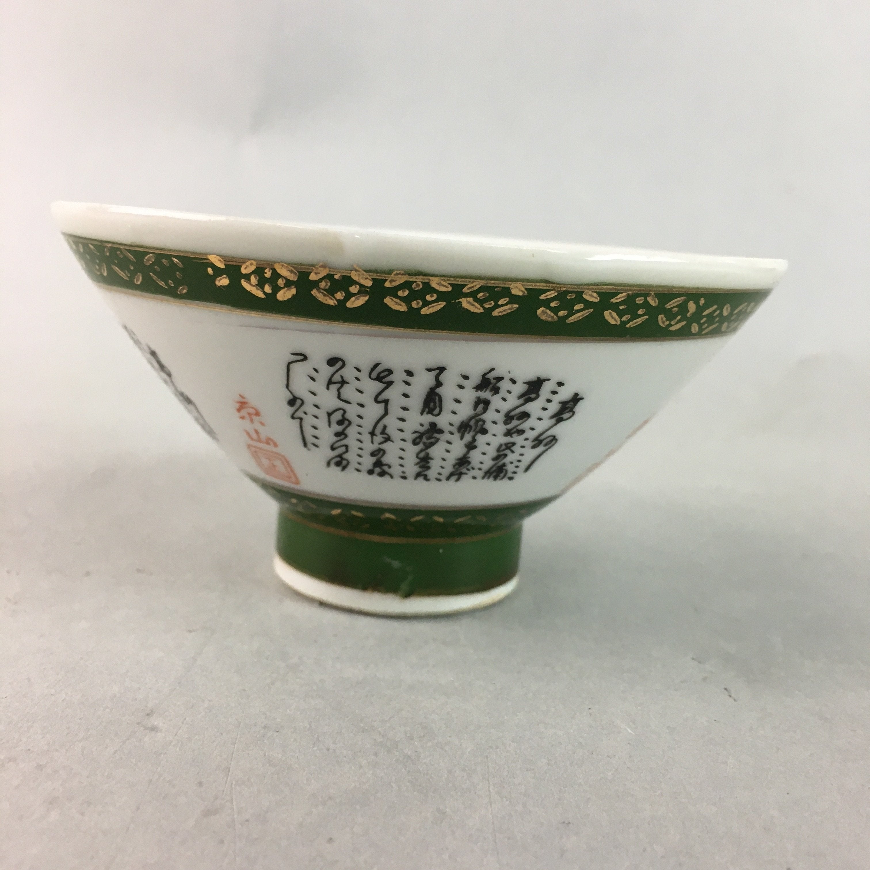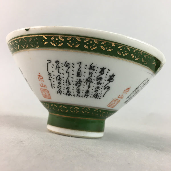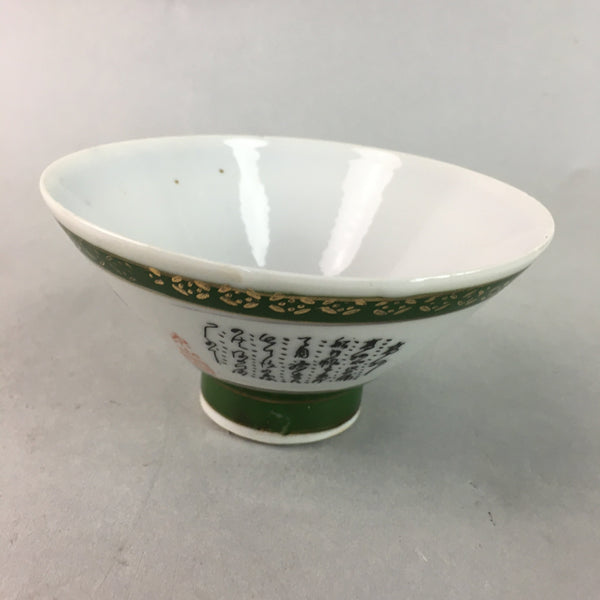 Japanese Porcelain Rice Bowl Vtg Kanji Green Gold Chawan PP182