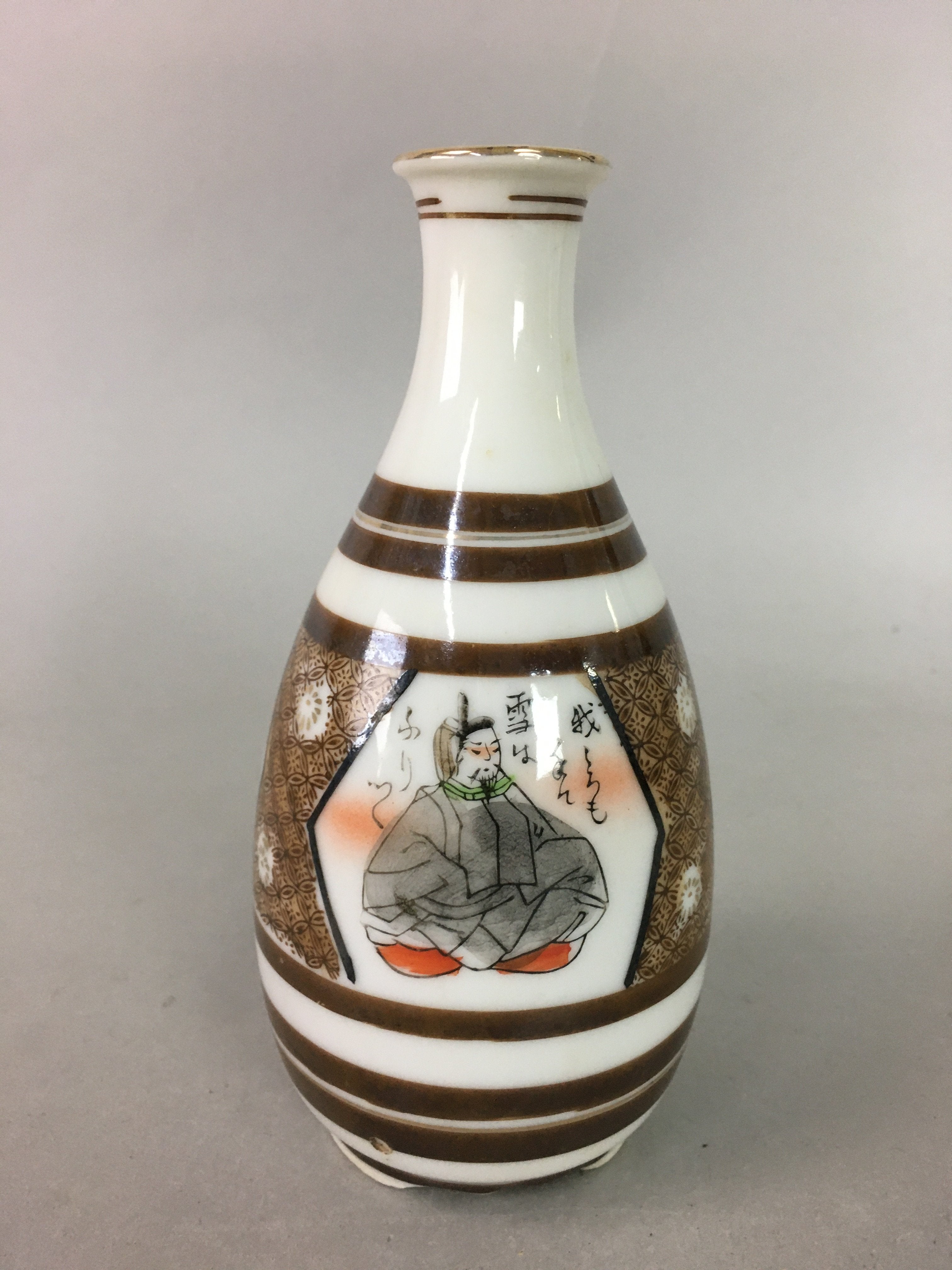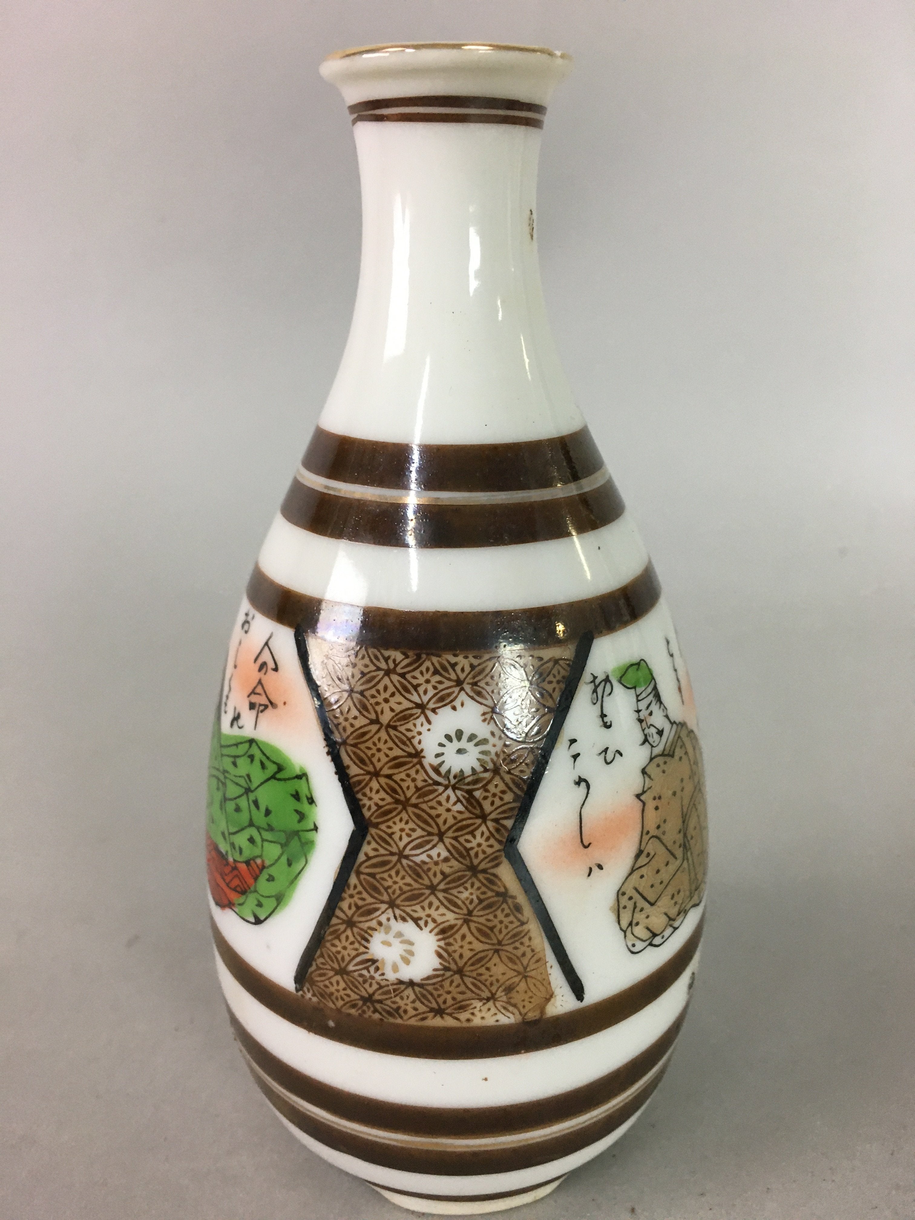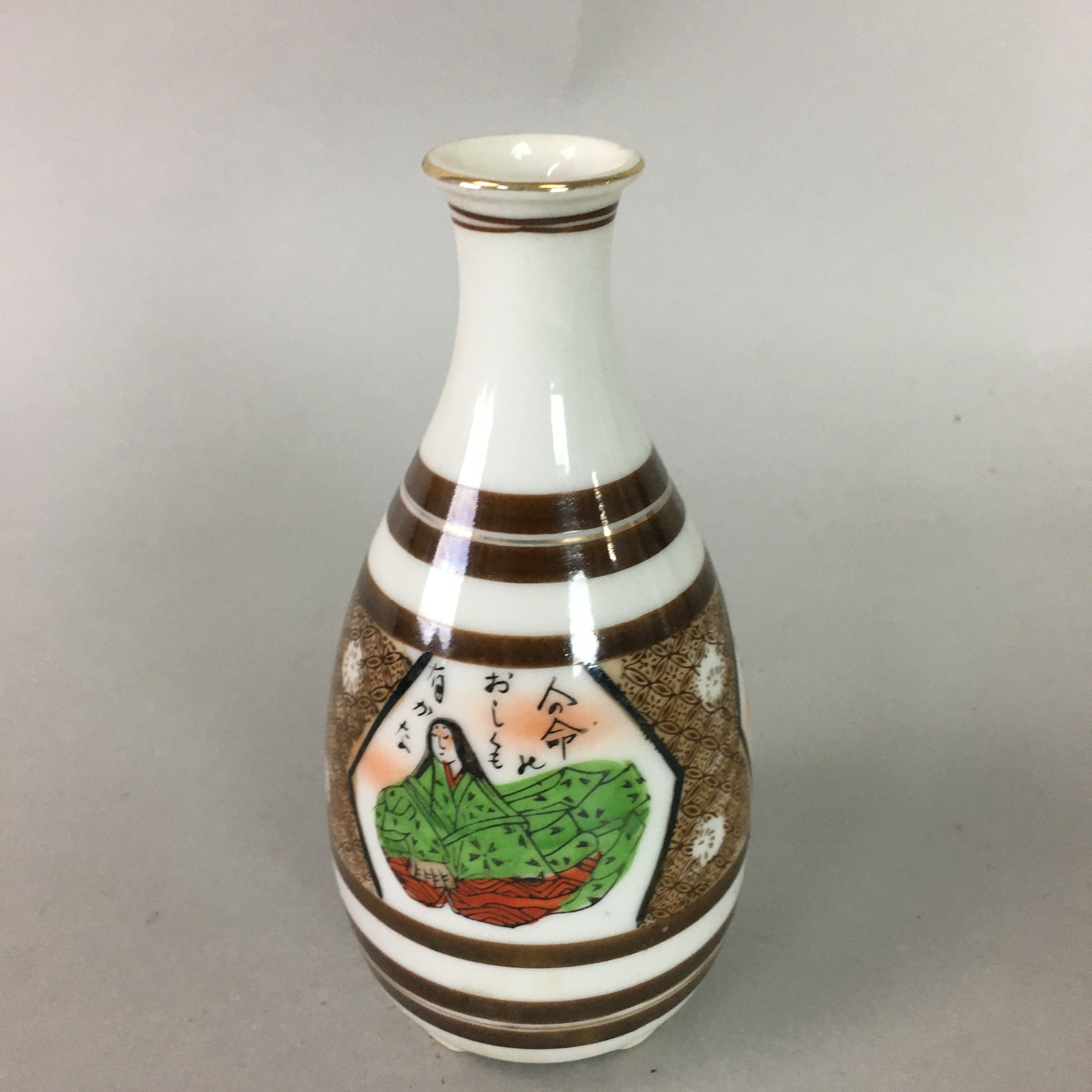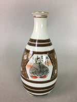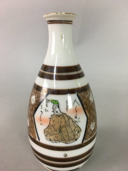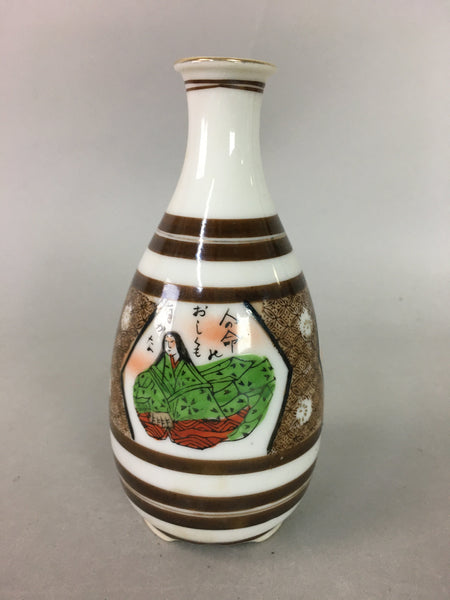 Japanese Porcelain Sake Bottle Kutani ware Vtg Tokkuri Poem Kimono TS218