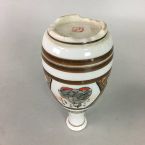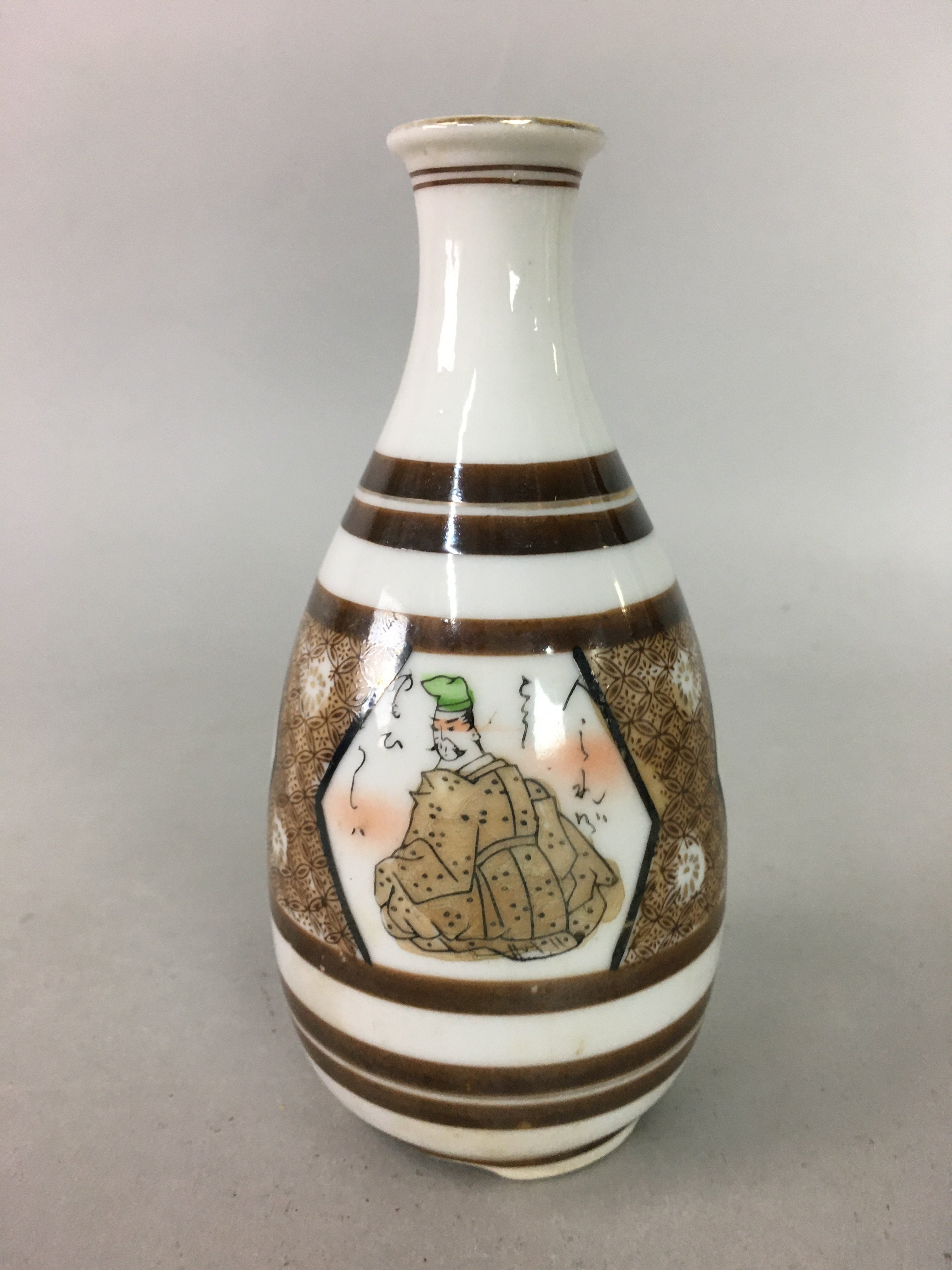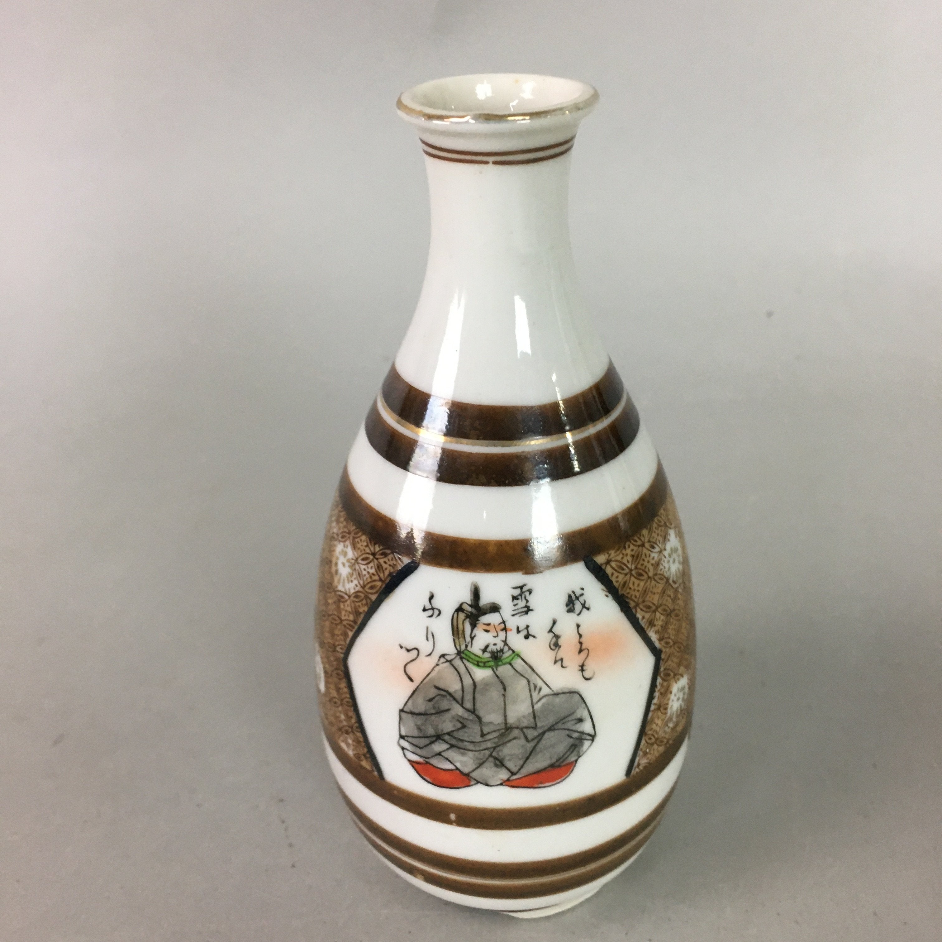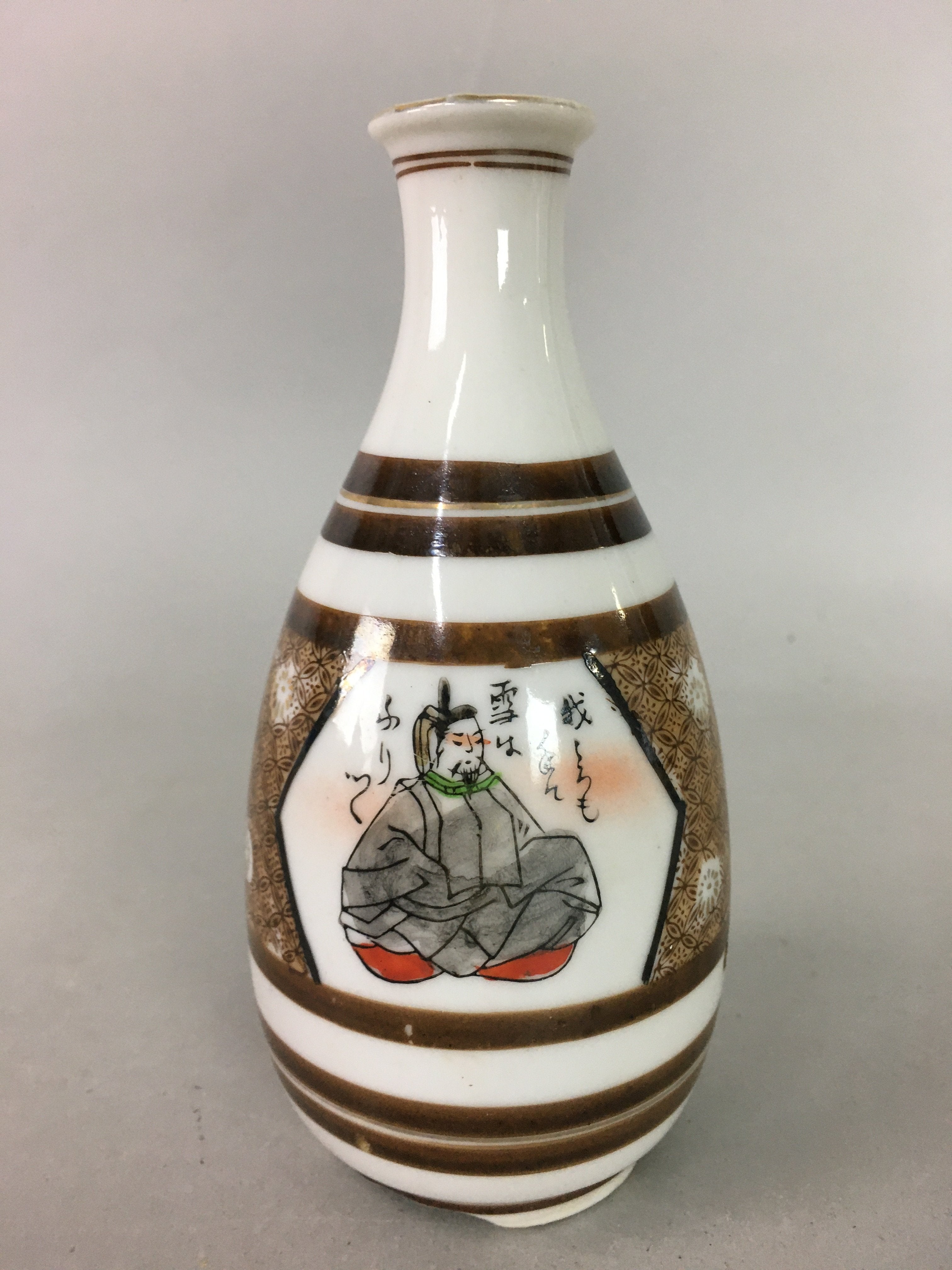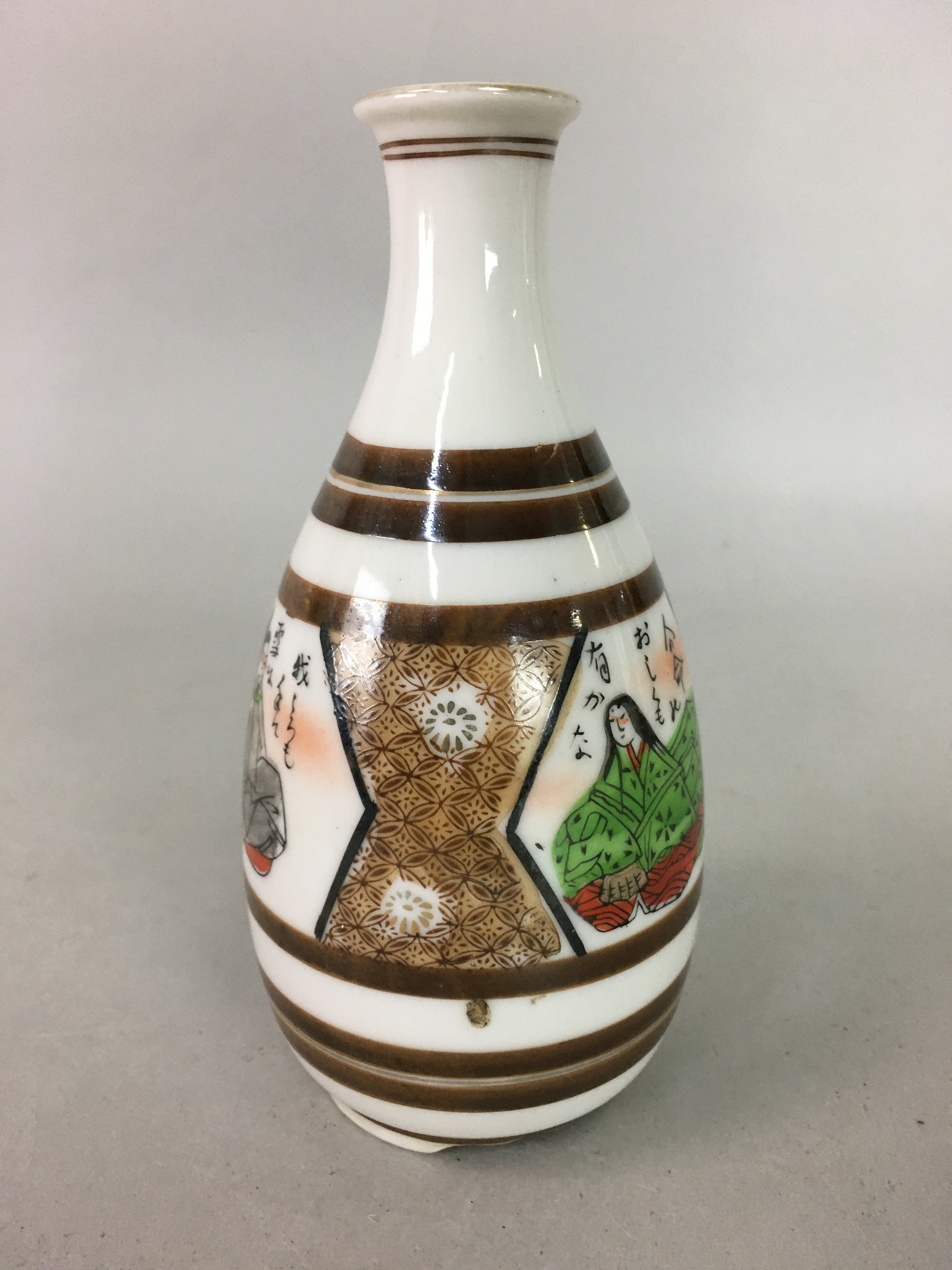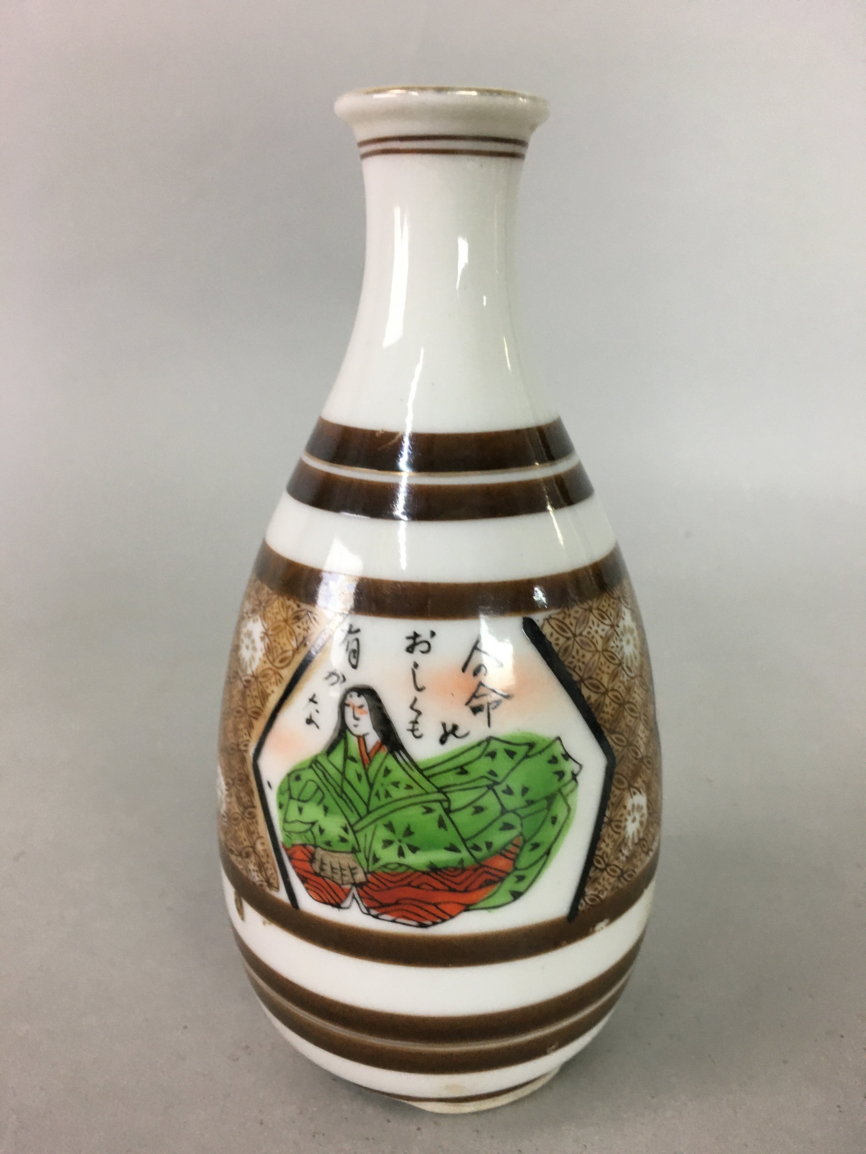 Japanese Porcelain Sake Bottle Kutani ware Vtg Tokkuri Poem Kimono TS222