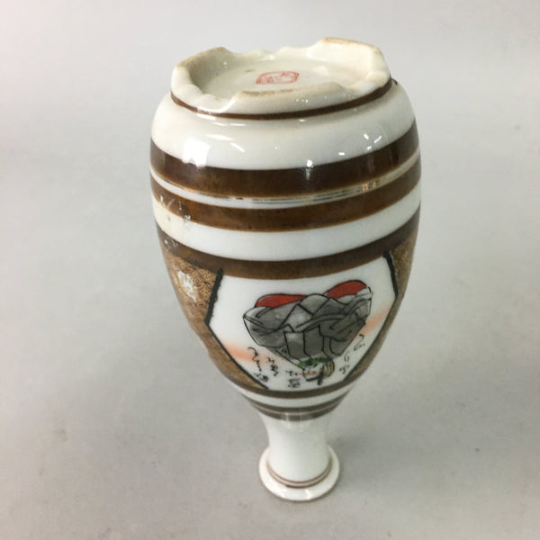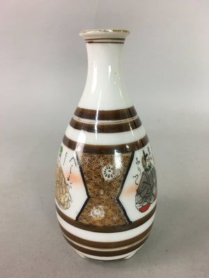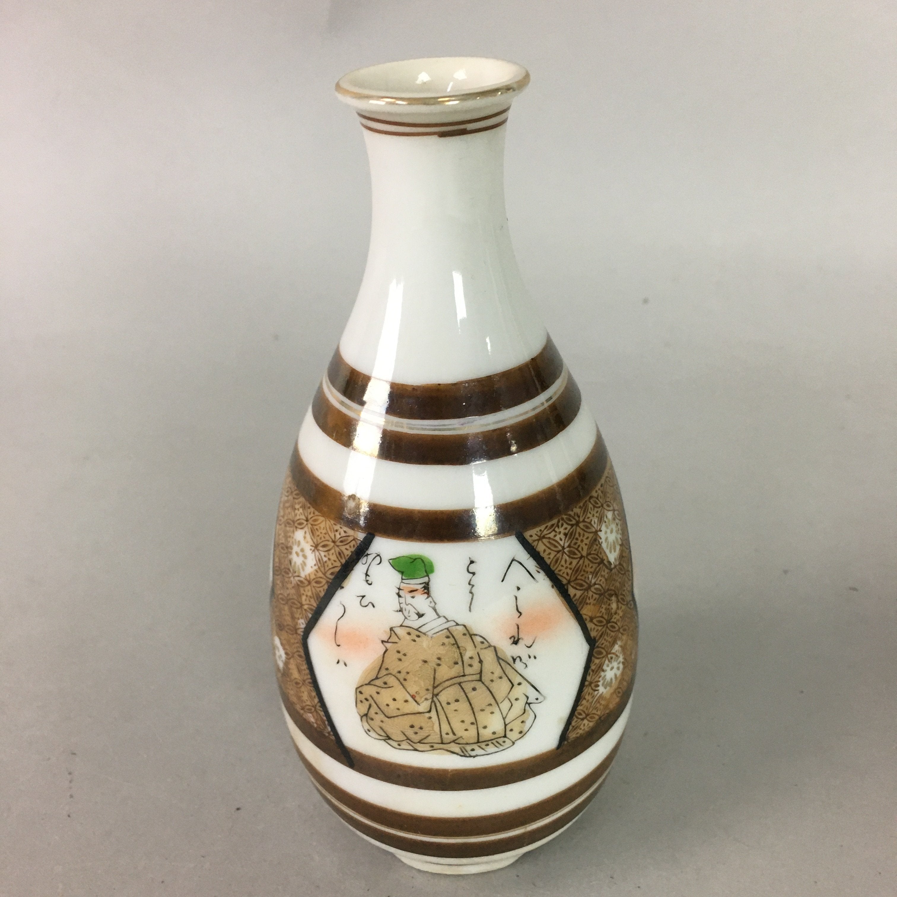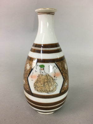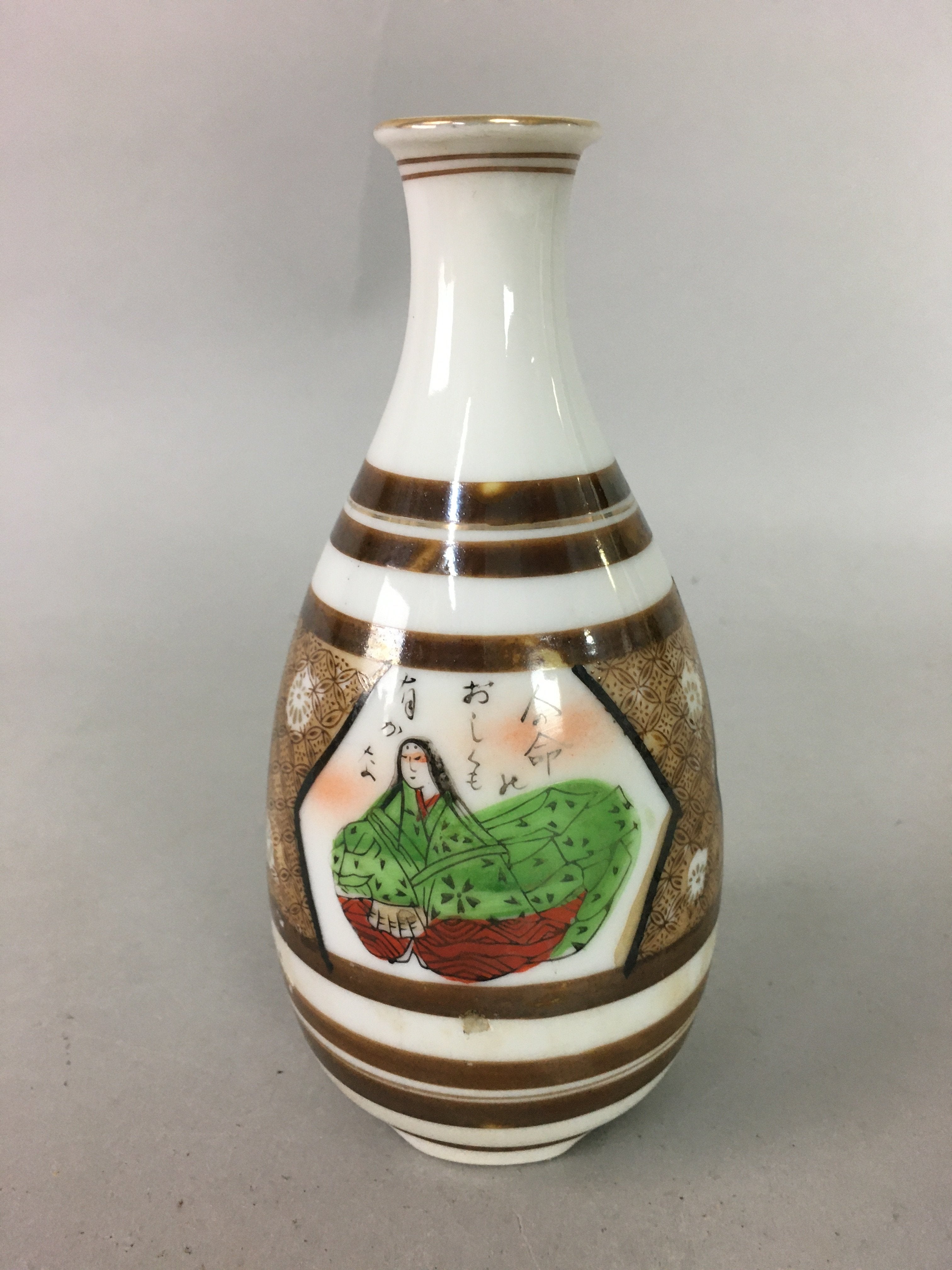 Japanese Porcelain Sake Bottle Kutani ware Vtg Tokkuri Poem Kimono TS223