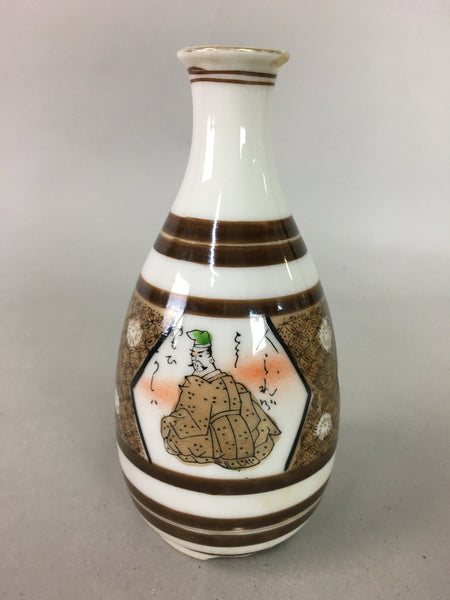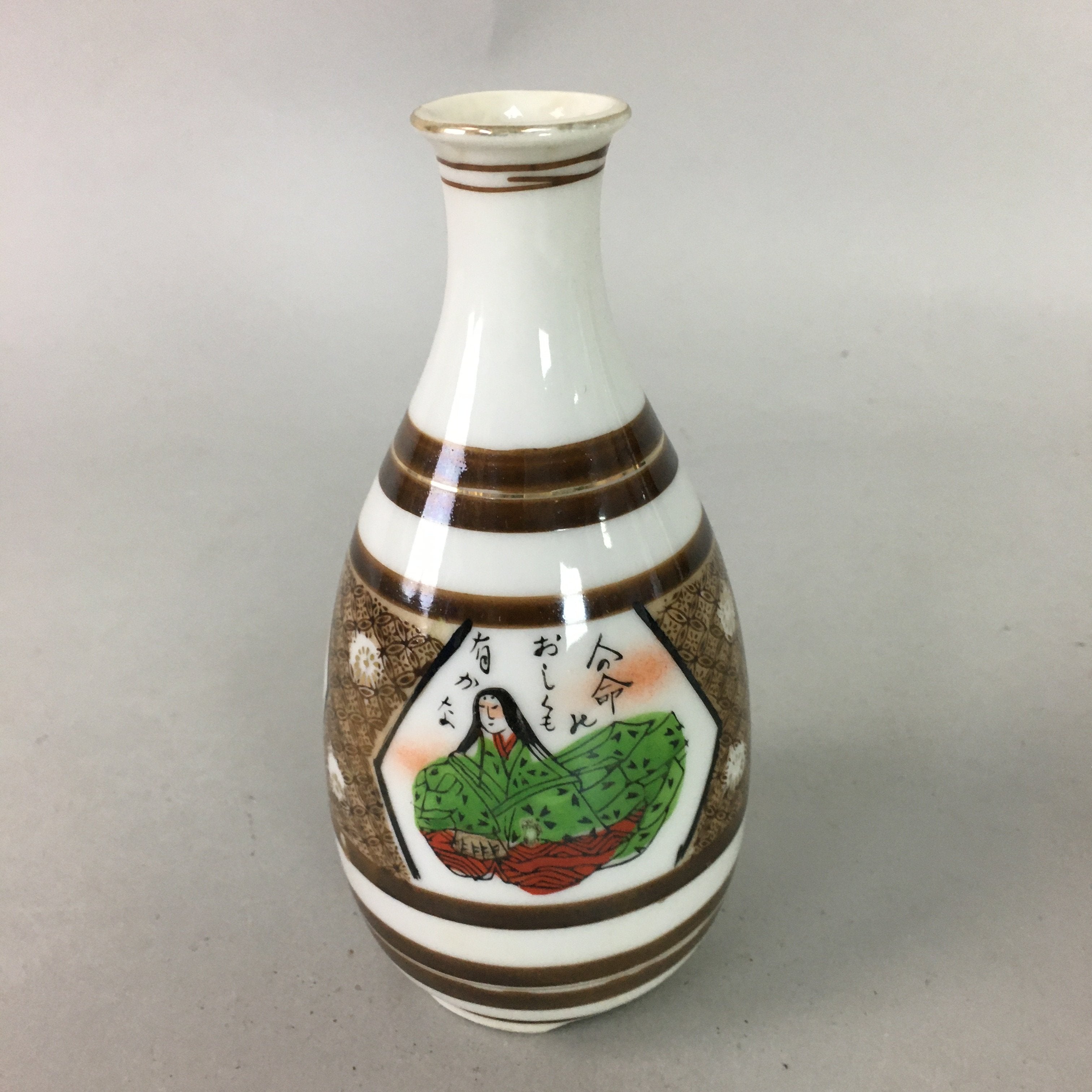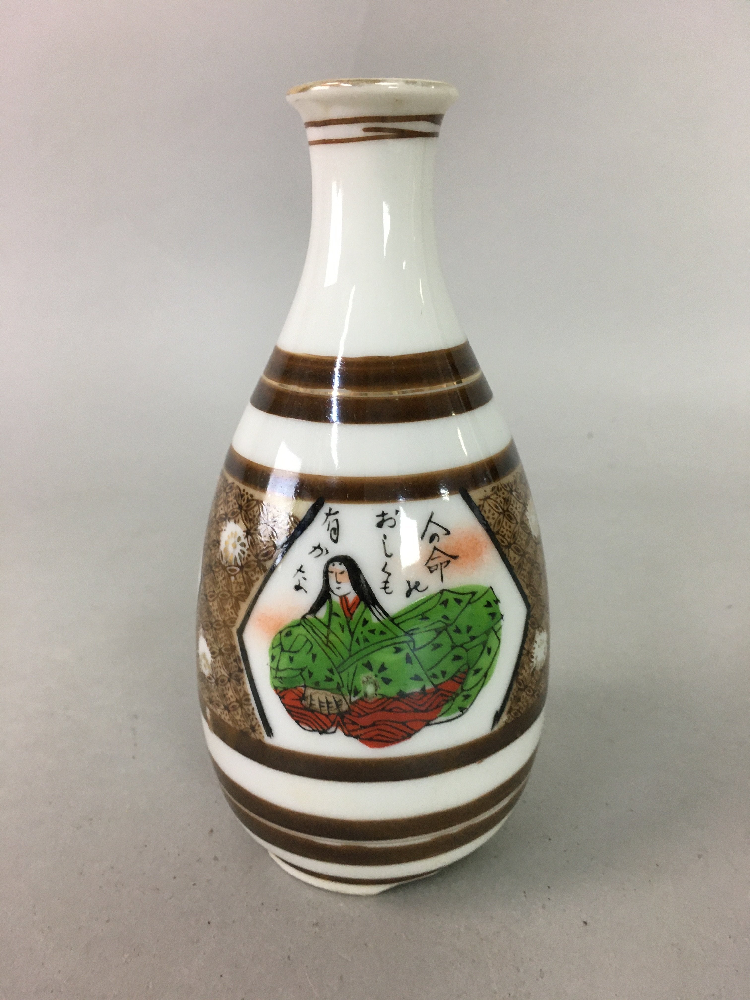 Japanese Porcelain Sake Bottle Kutani ware Vtg Tokkuri Poem Kimono TS226