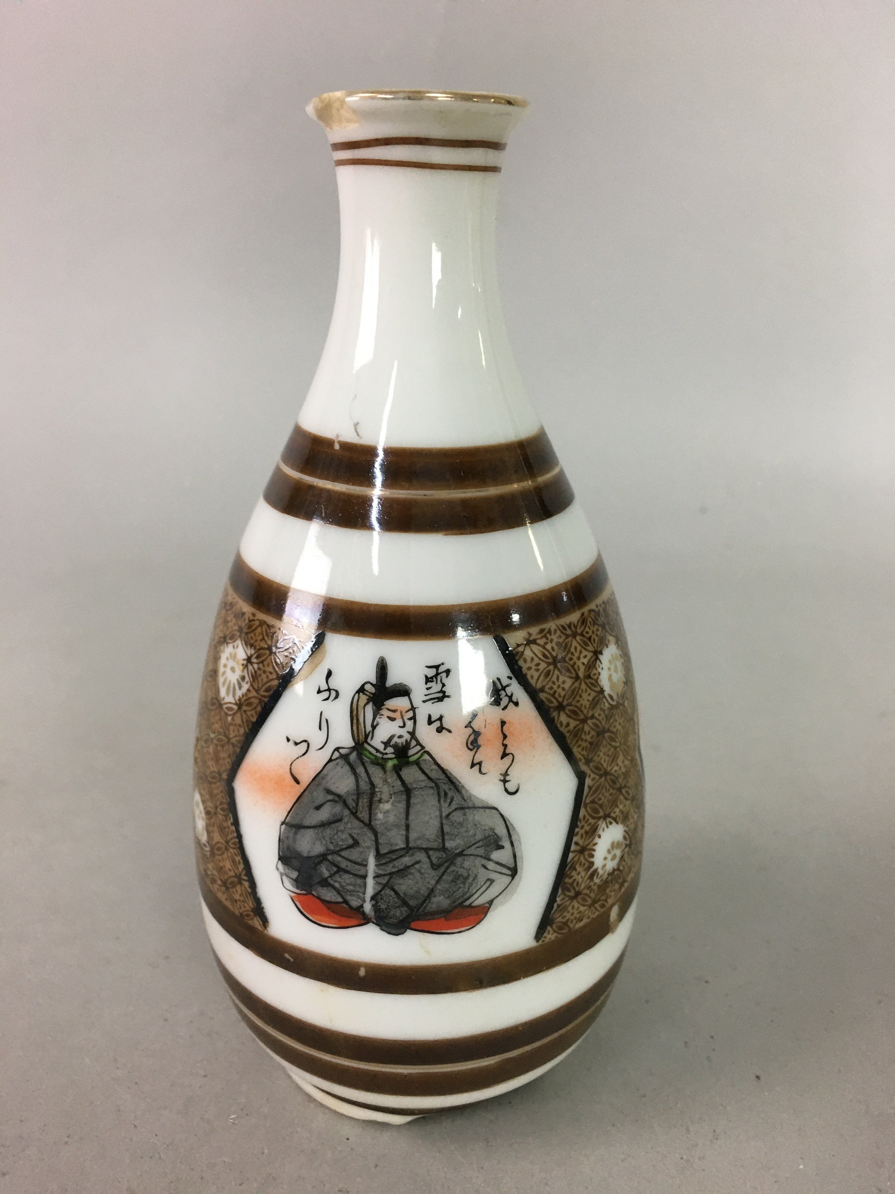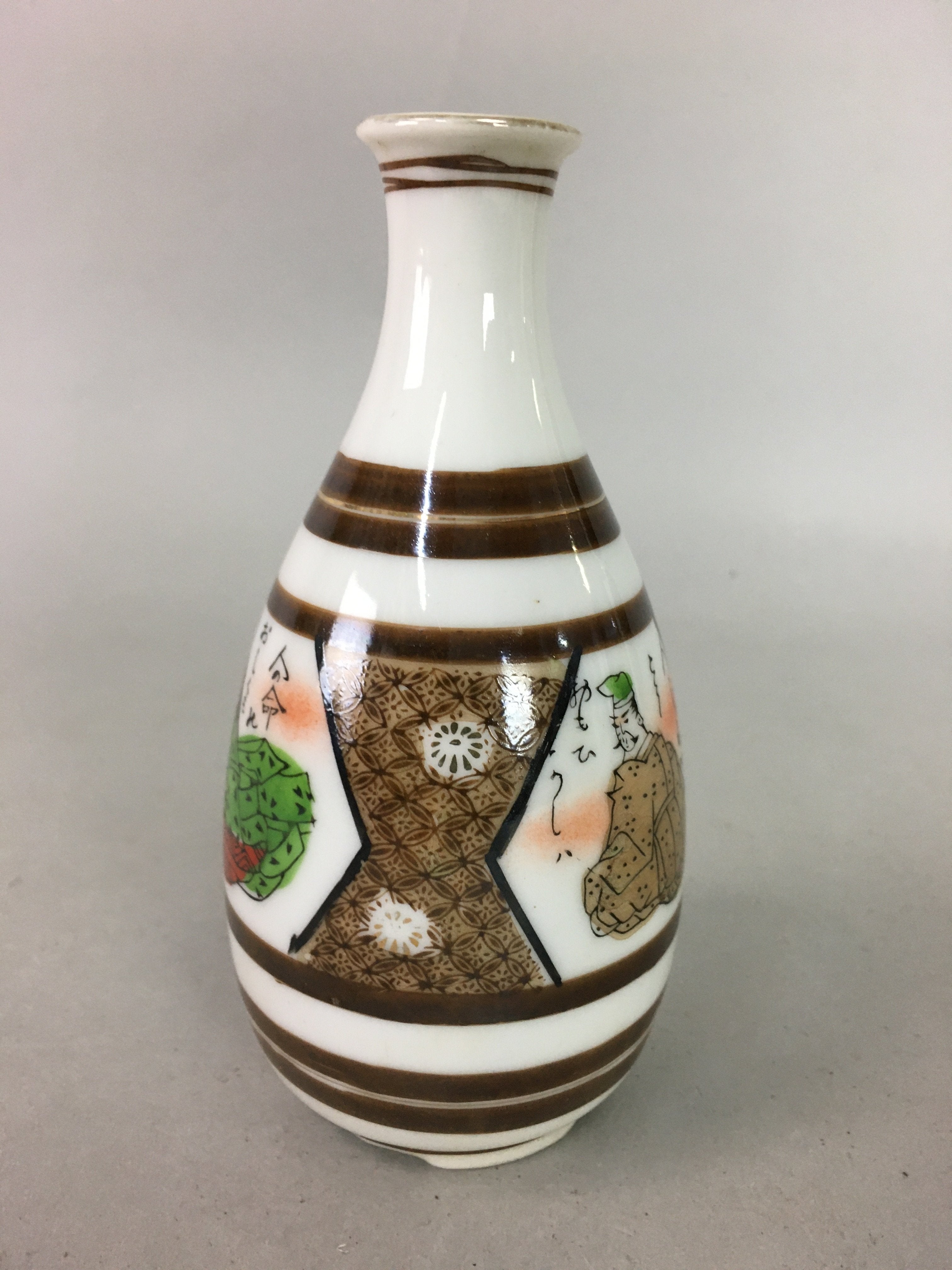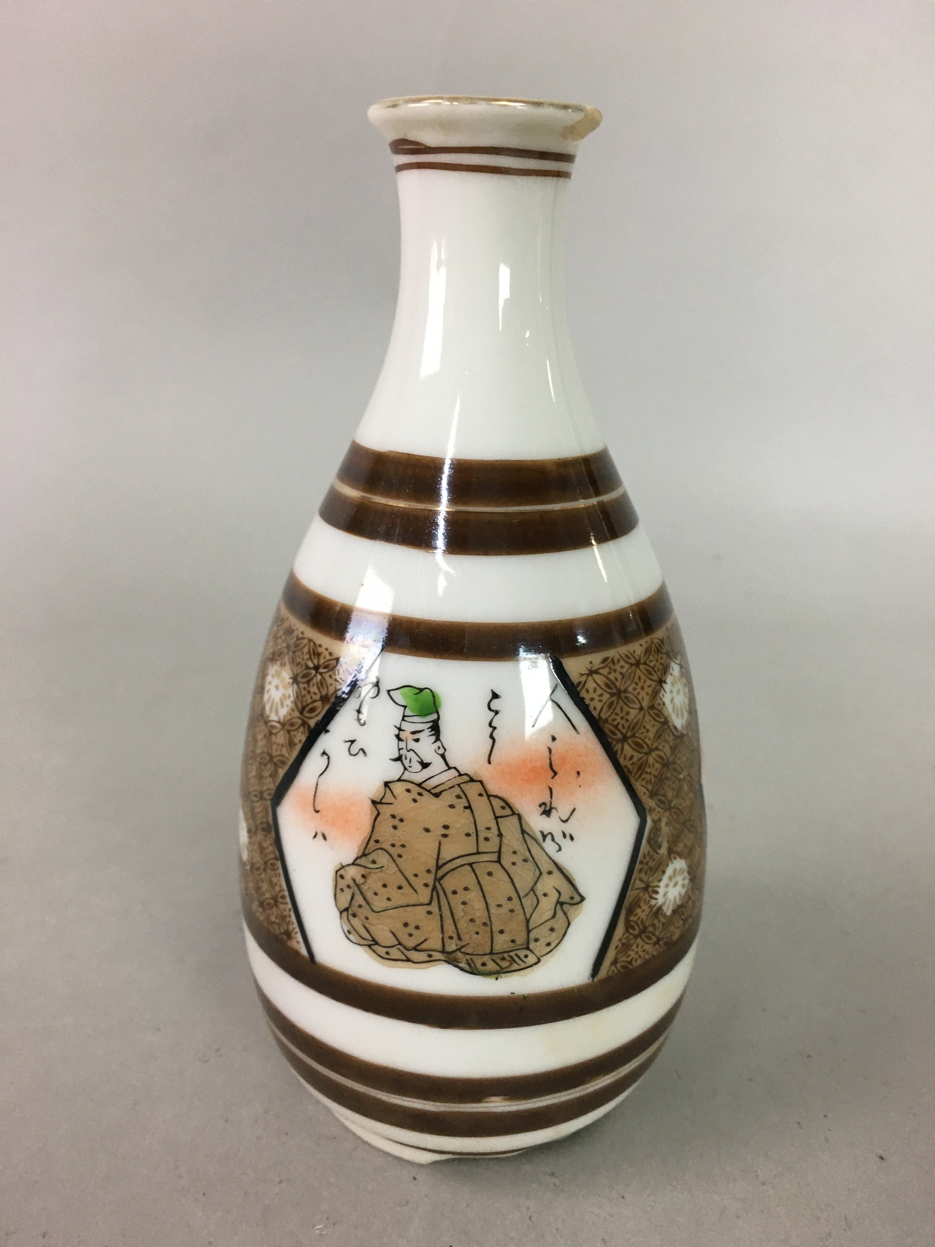 Japanese Porcelain Sake Bottle Kutani ware Vtg Tokkuri Poem Kimono TS226