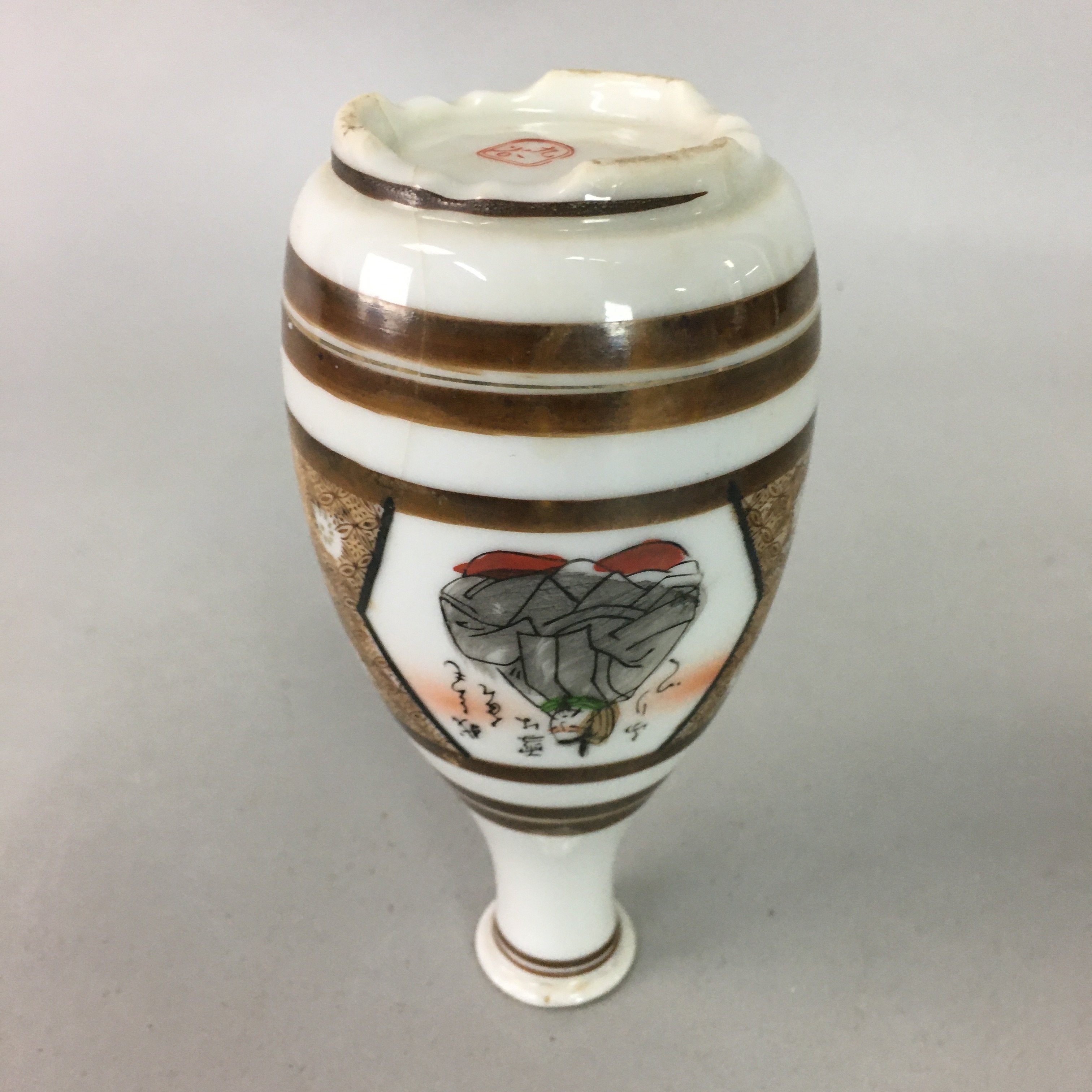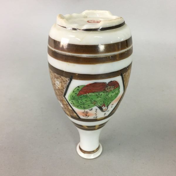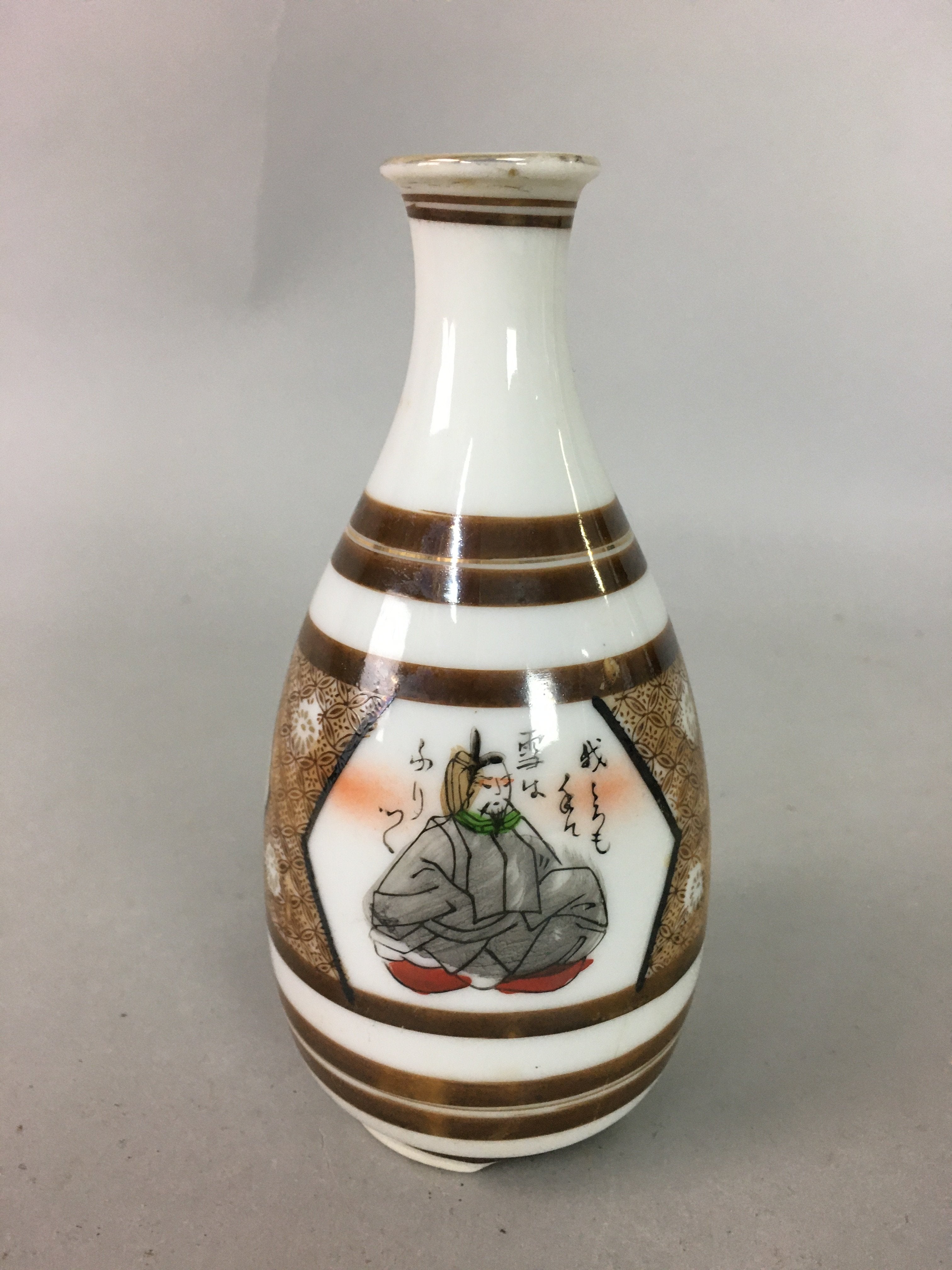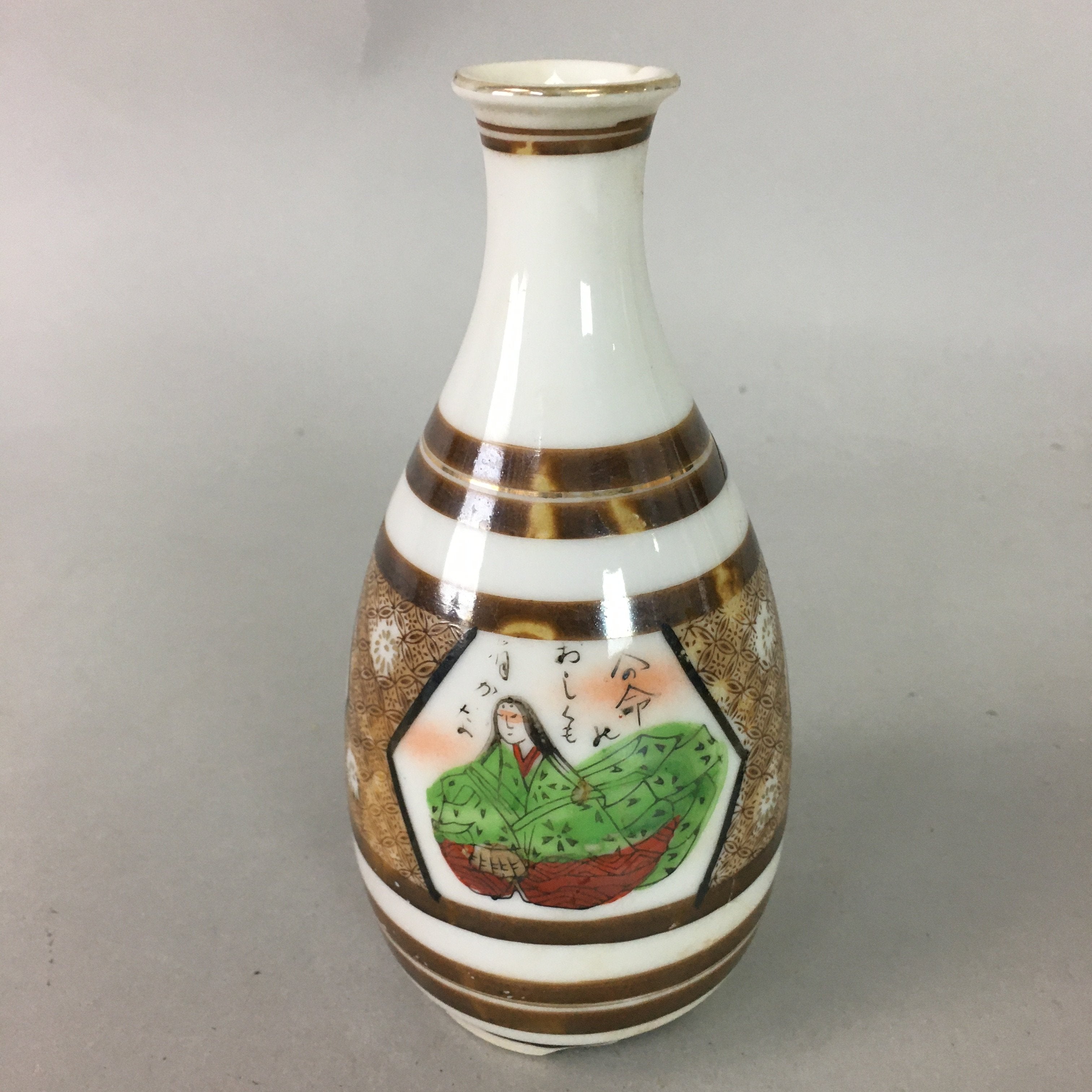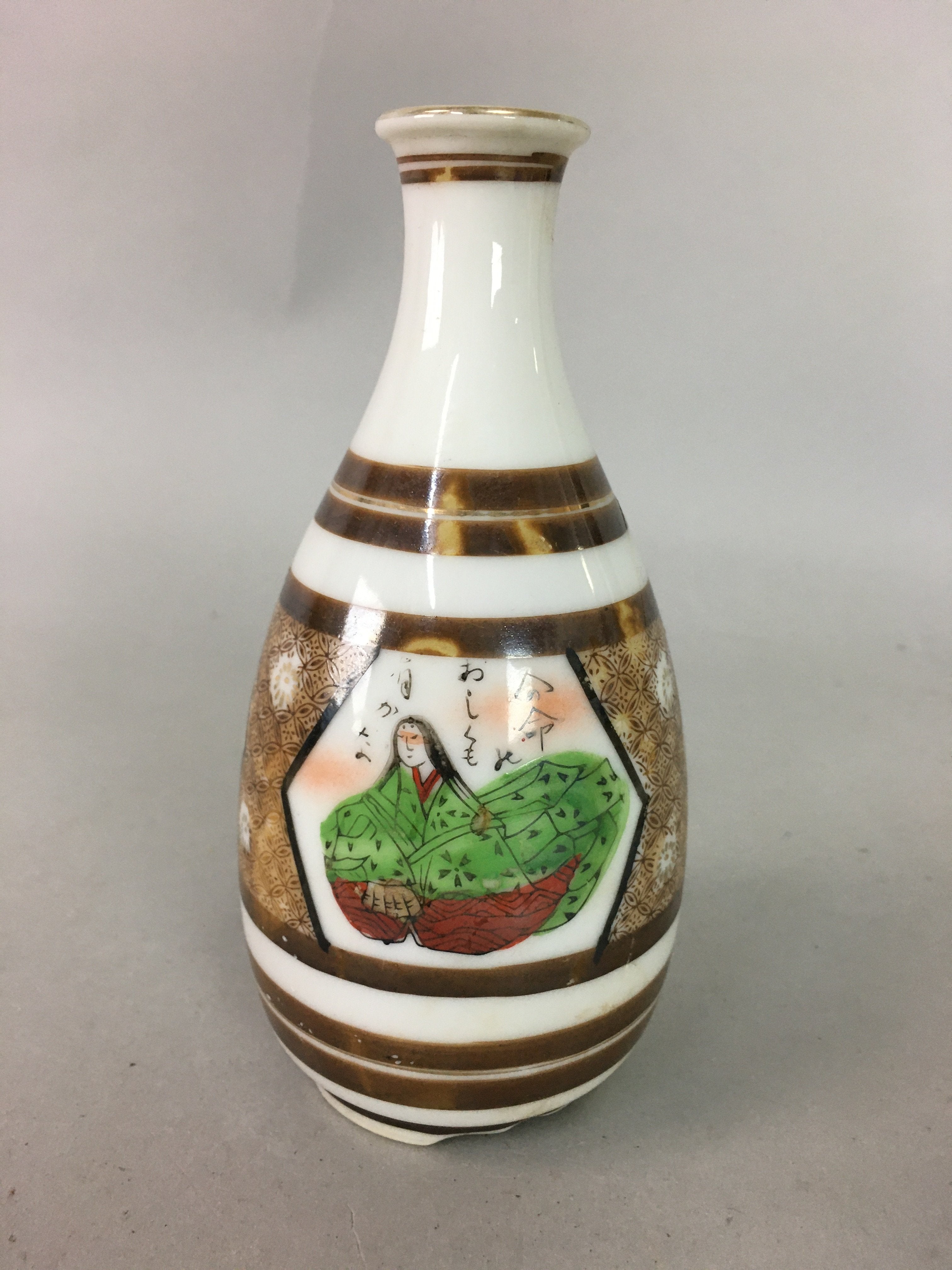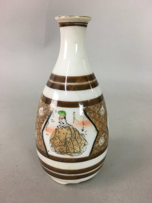 Japanese Porcelain Sake Bottle Kutani ware Vtg Tokkuri Poem Kimono TS229