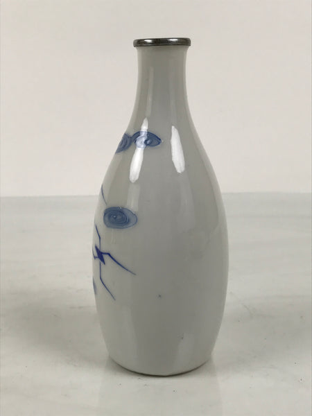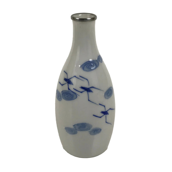 Japanese Porcelain Sake Bottle Tokkuri White Blue Water Strider Whirlp | chidorivintage.com
