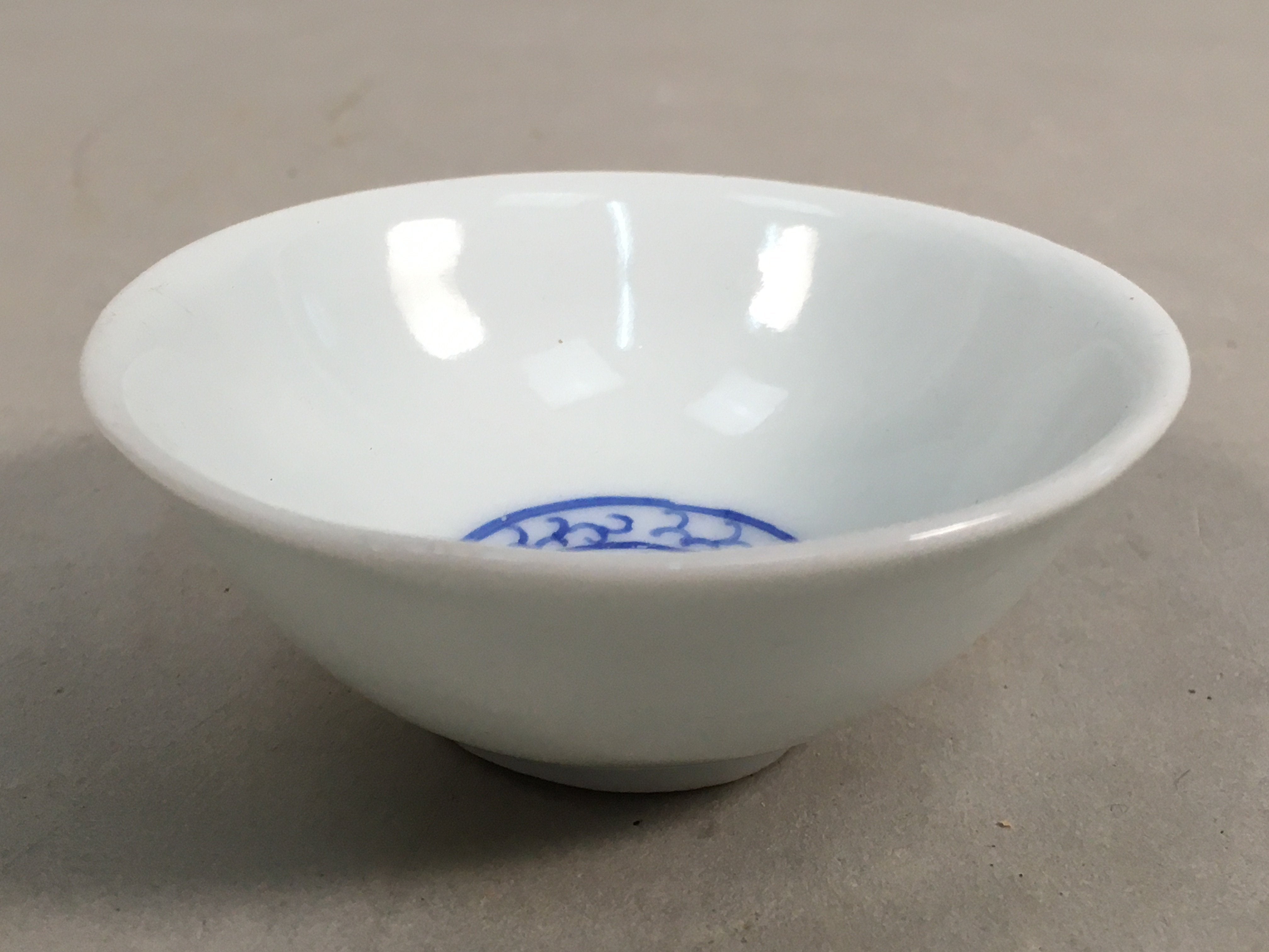 Japanese Porcelain Sake Cup Guinomi Sakazuki Vtg Blue White GU795