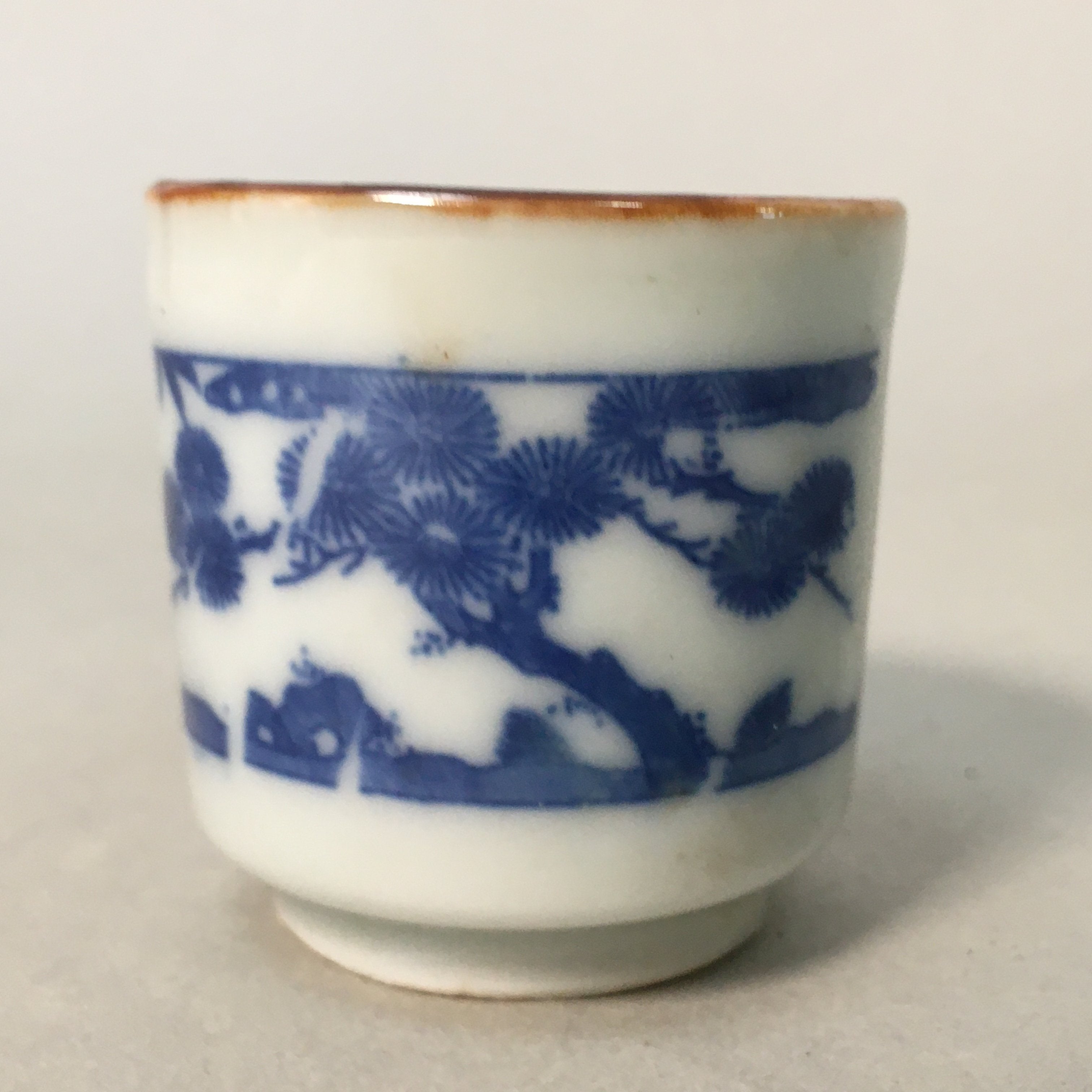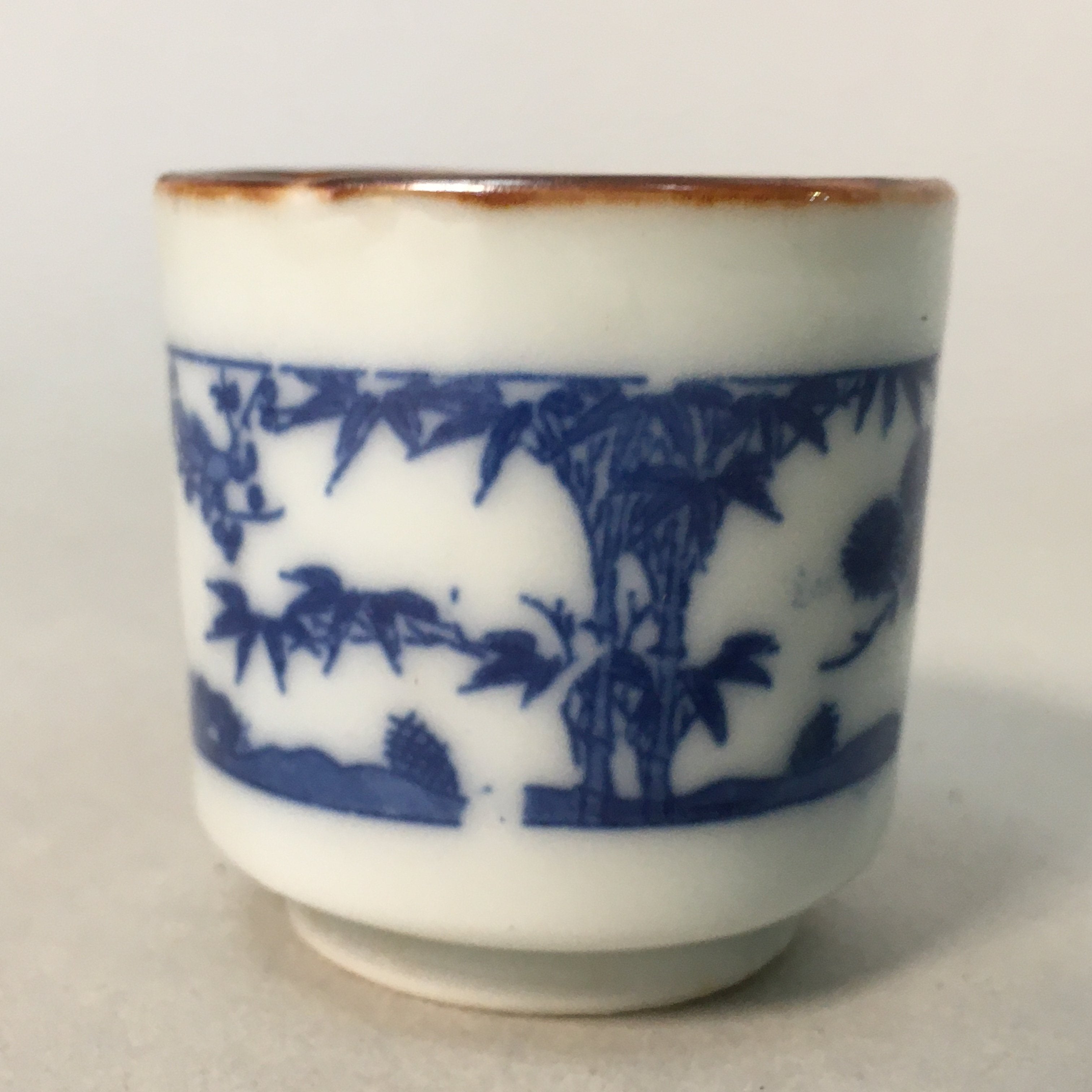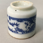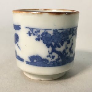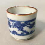Japanese Porcelain Sake Cup Guinomi Sakazuki Vtg Blue White Lucky Plants GU763